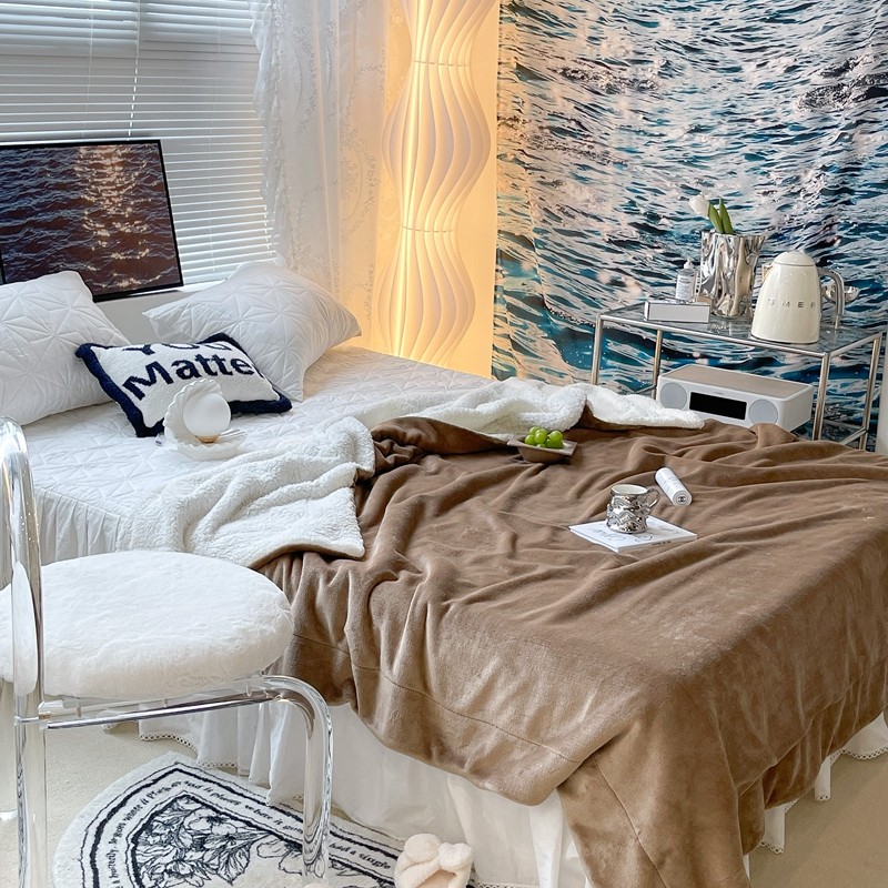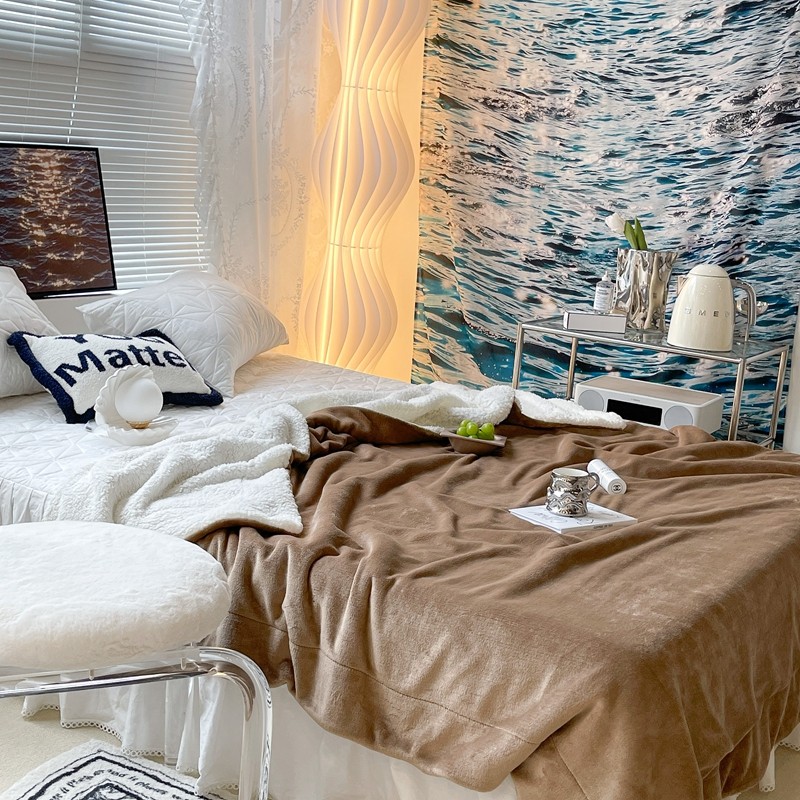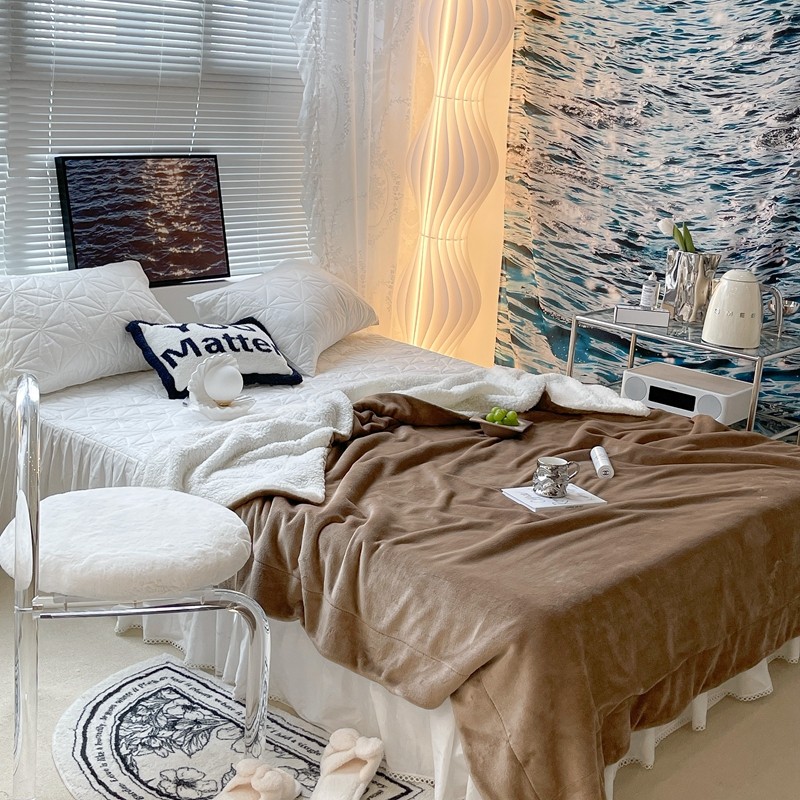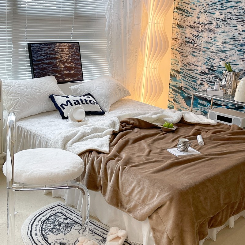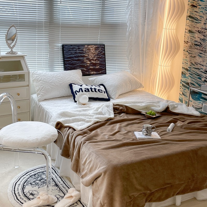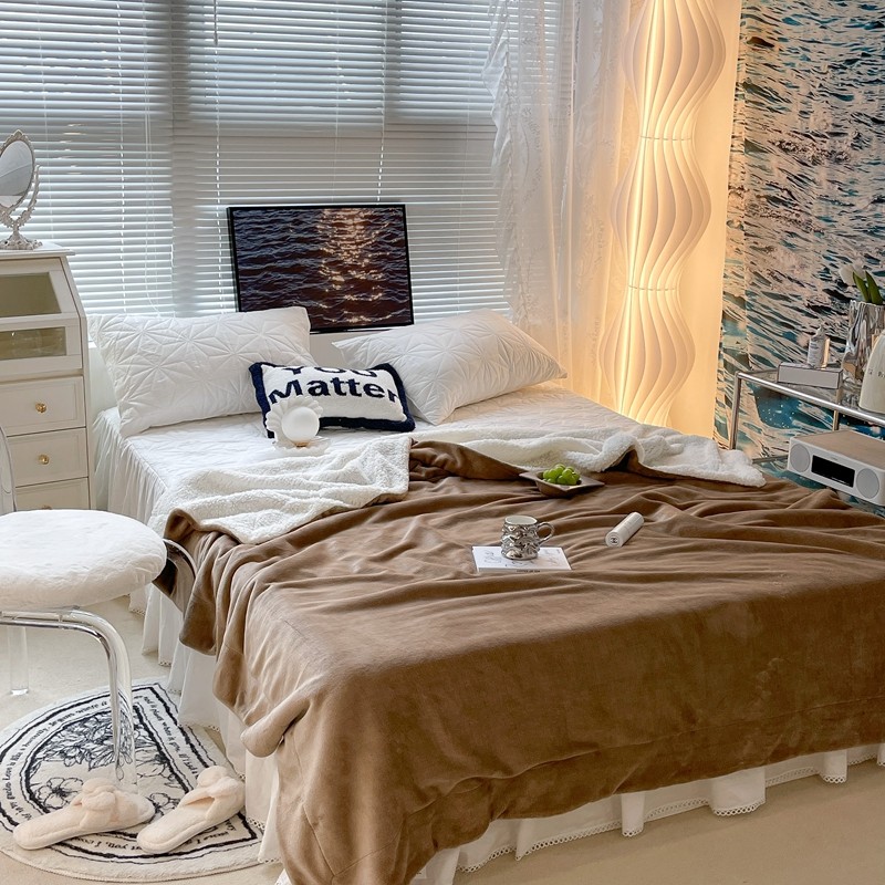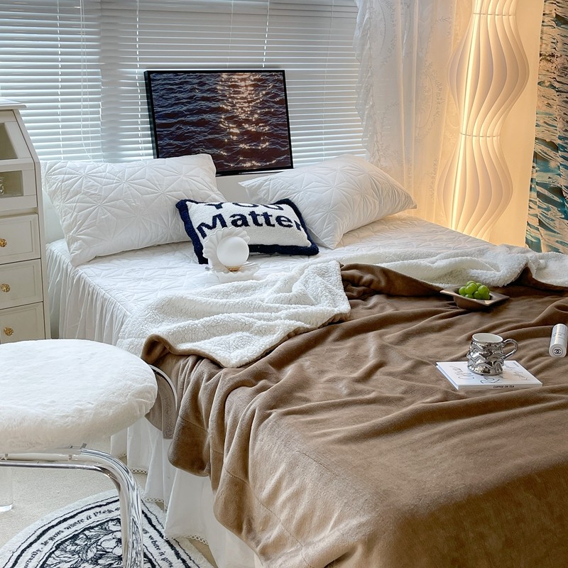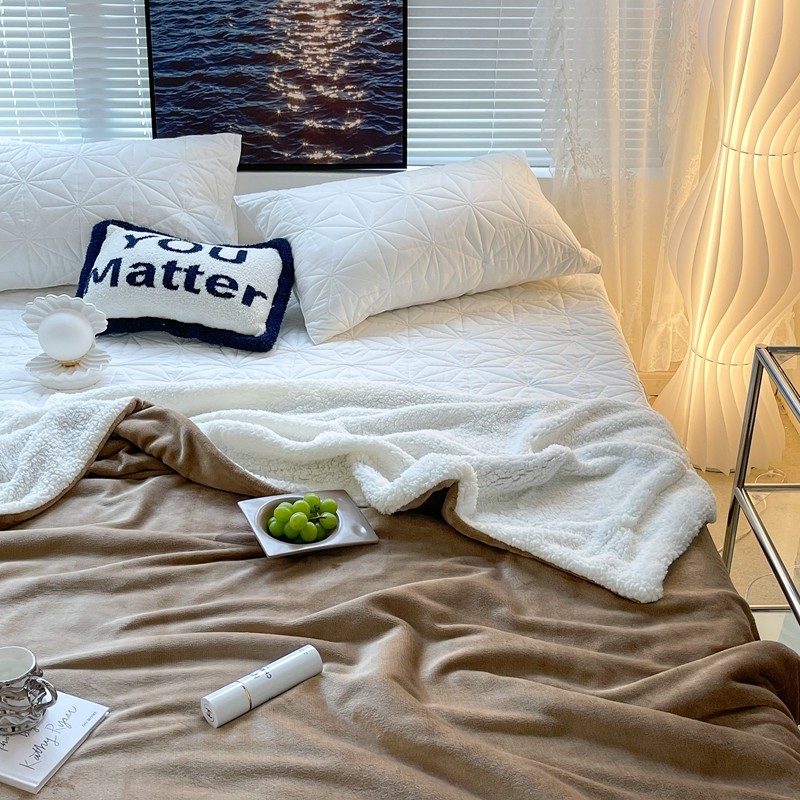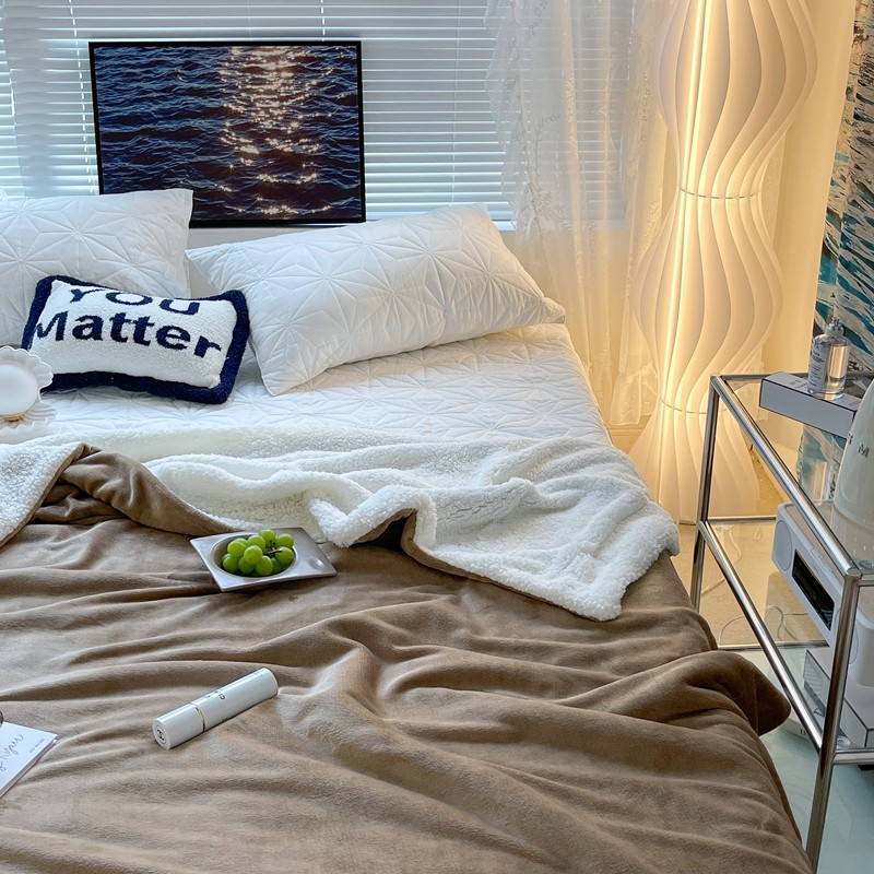 昔可家纺 2021新款素色牛奶绒羊羔绒毛毯 复古棕