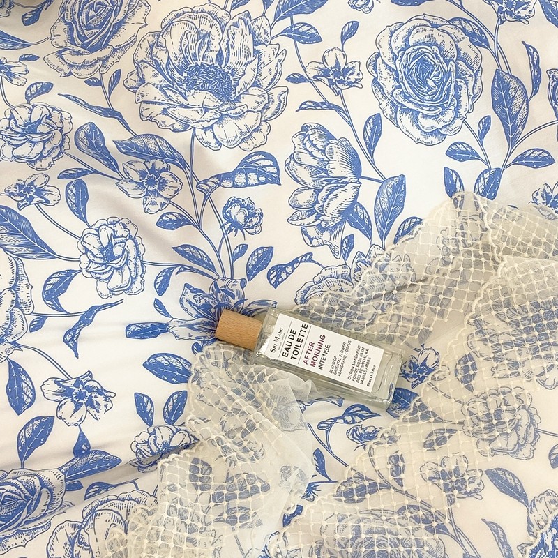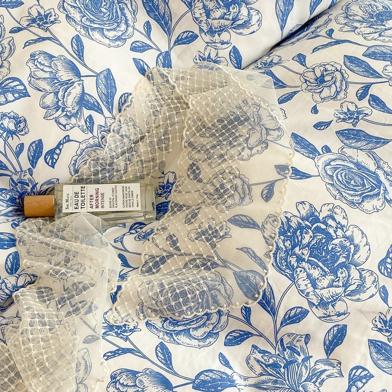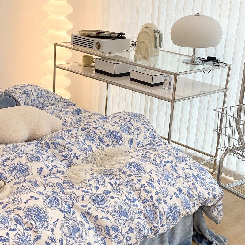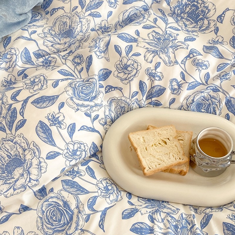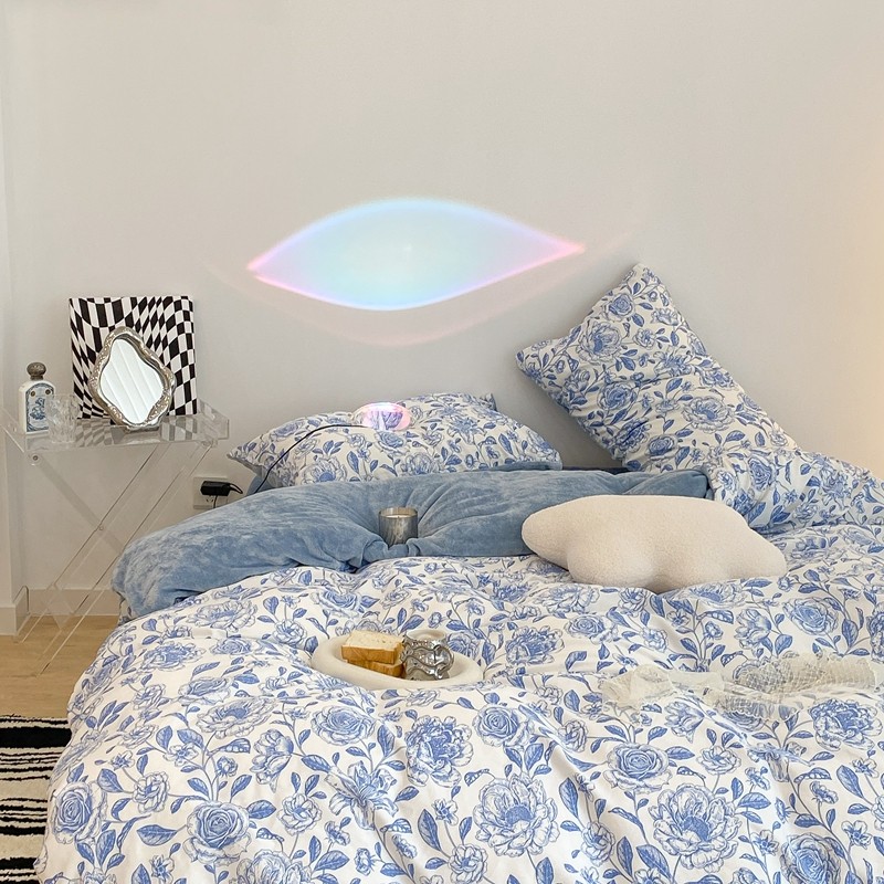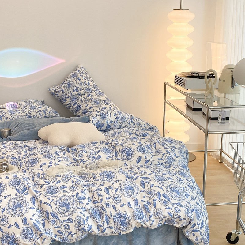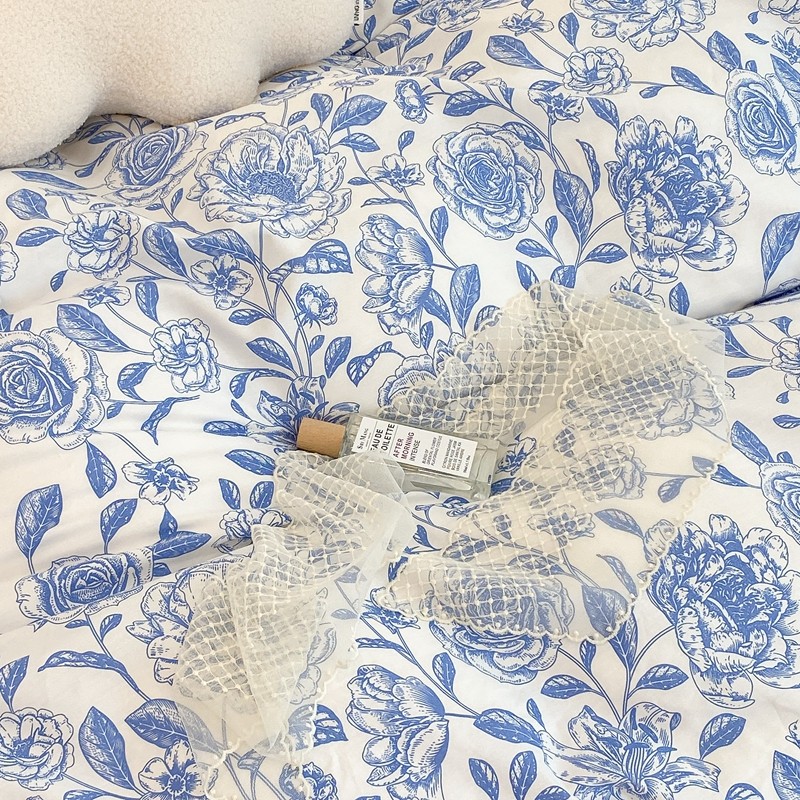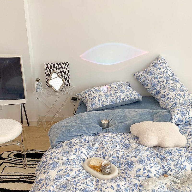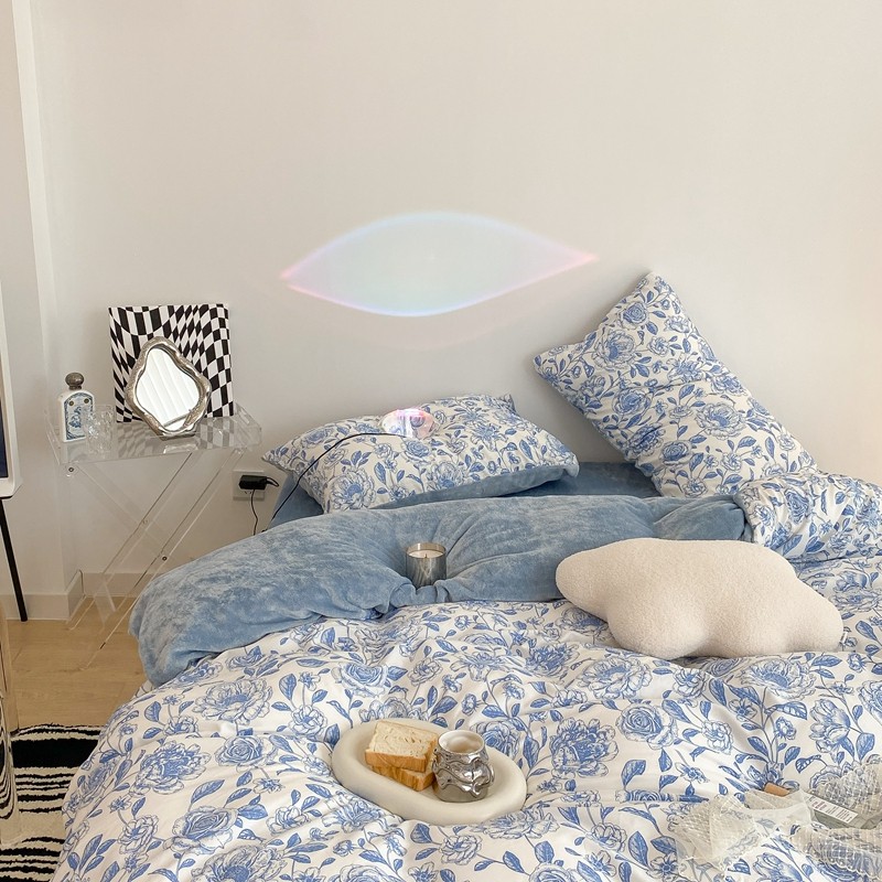 商品名称:昔可家纺 2021新款棉加牛奶绒四件套 手绘山茶蓝