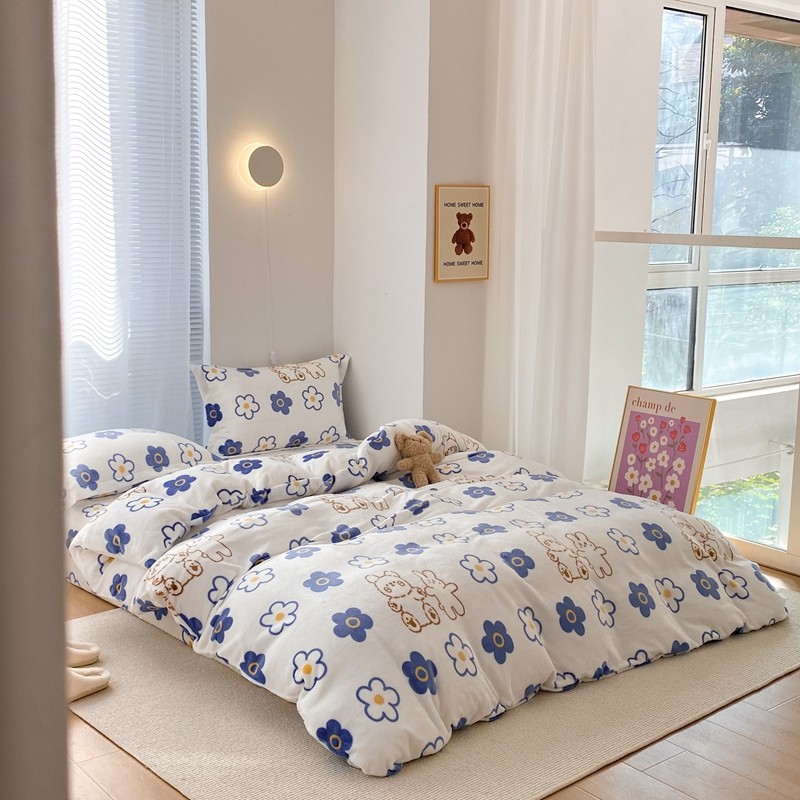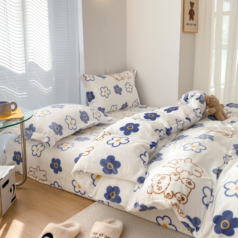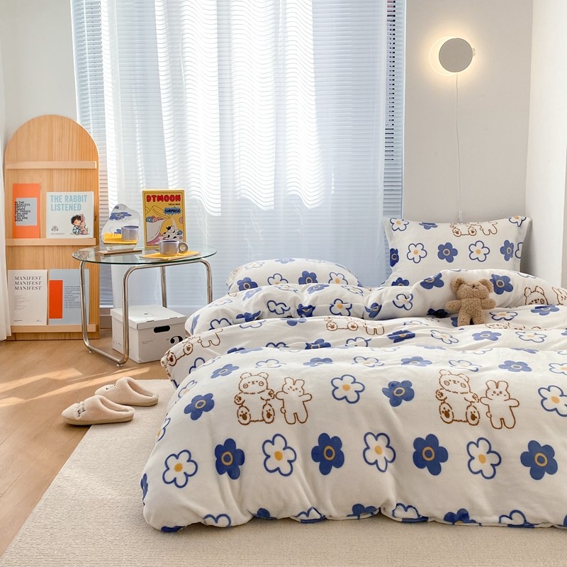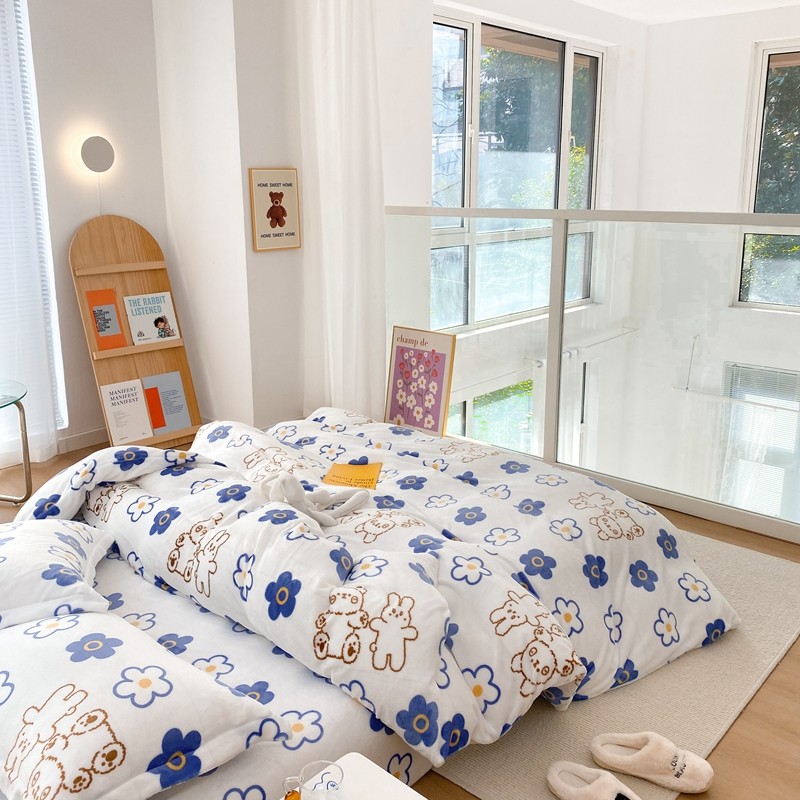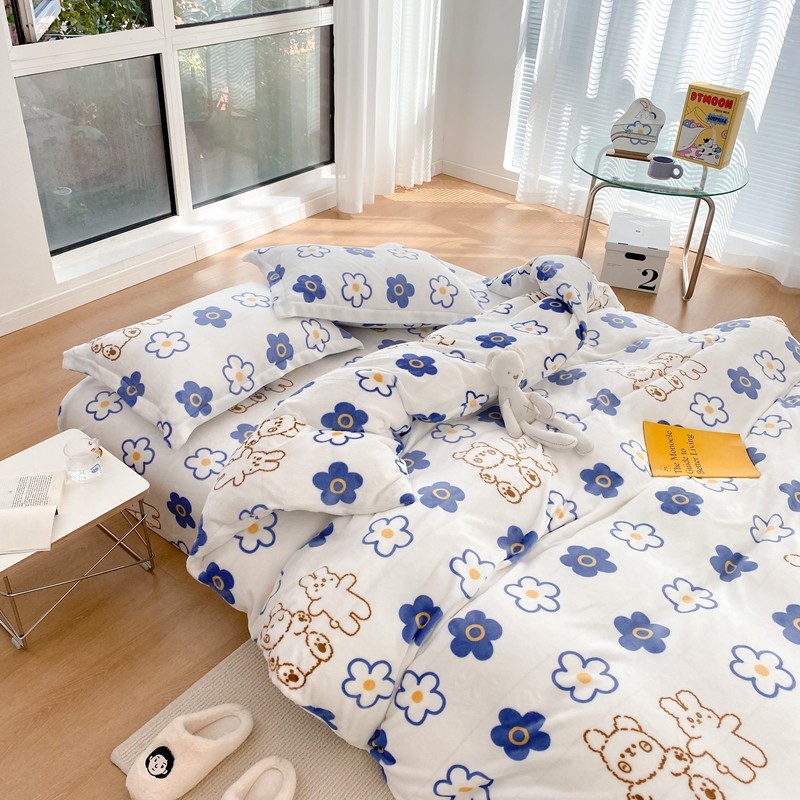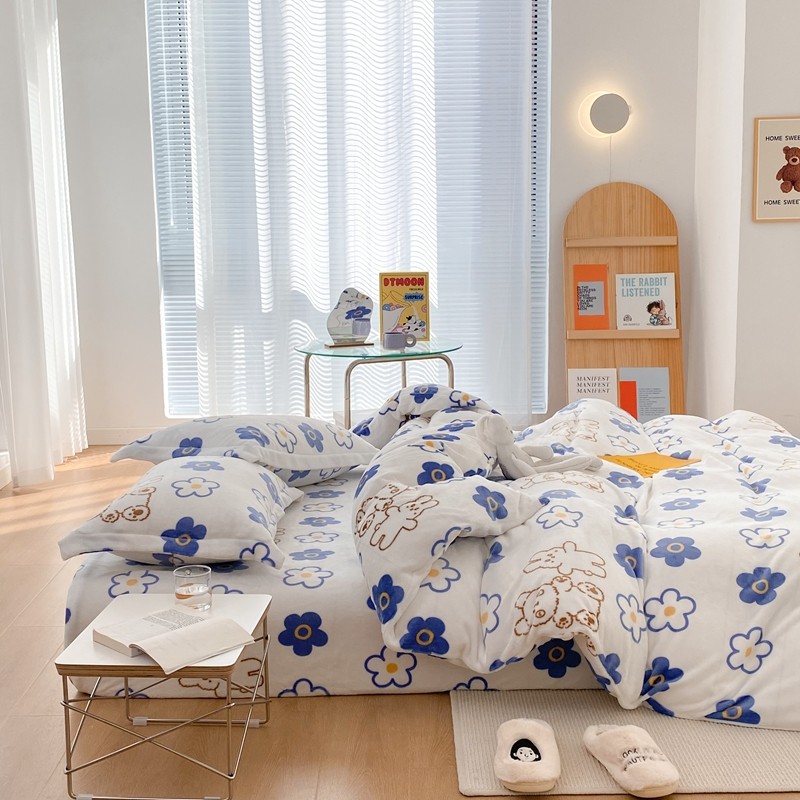 商品名称:昔可家纺 2021新款牛奶绒四件套第二组图 蓝花小熊兔