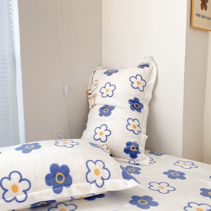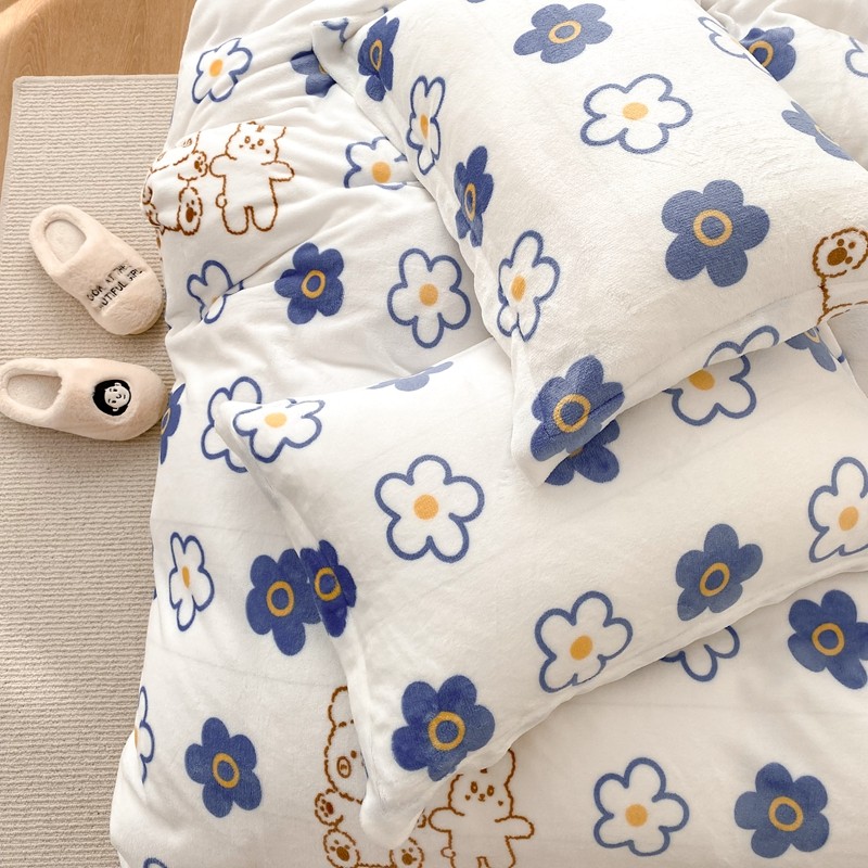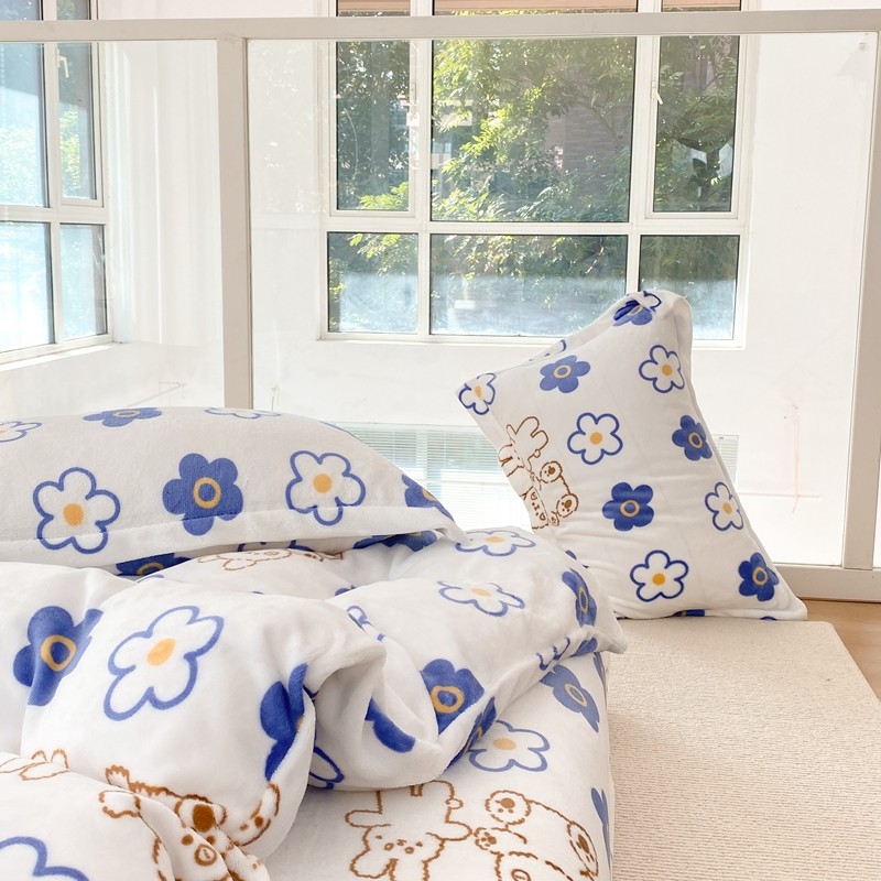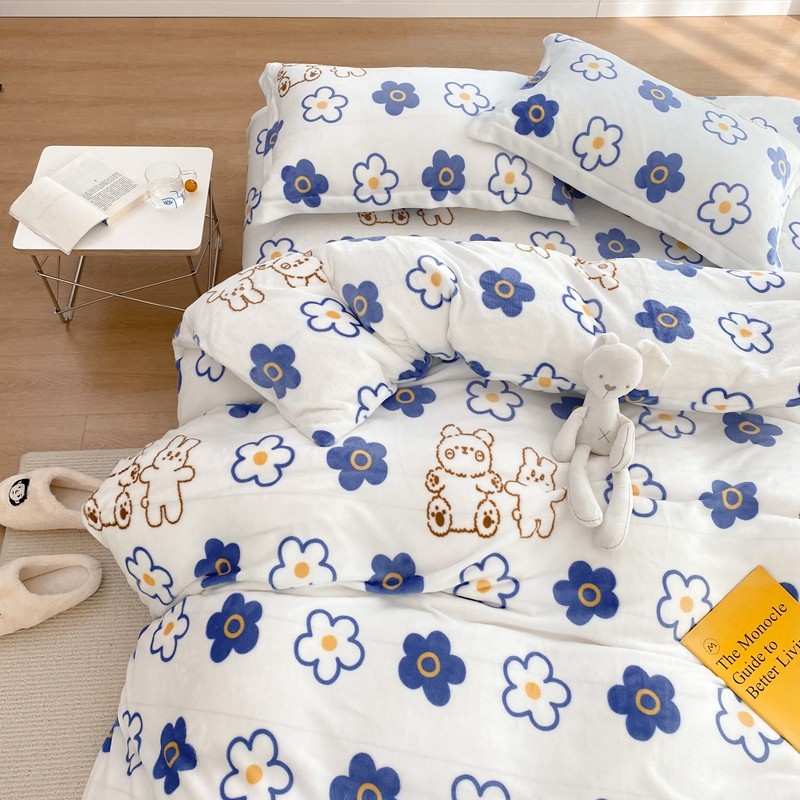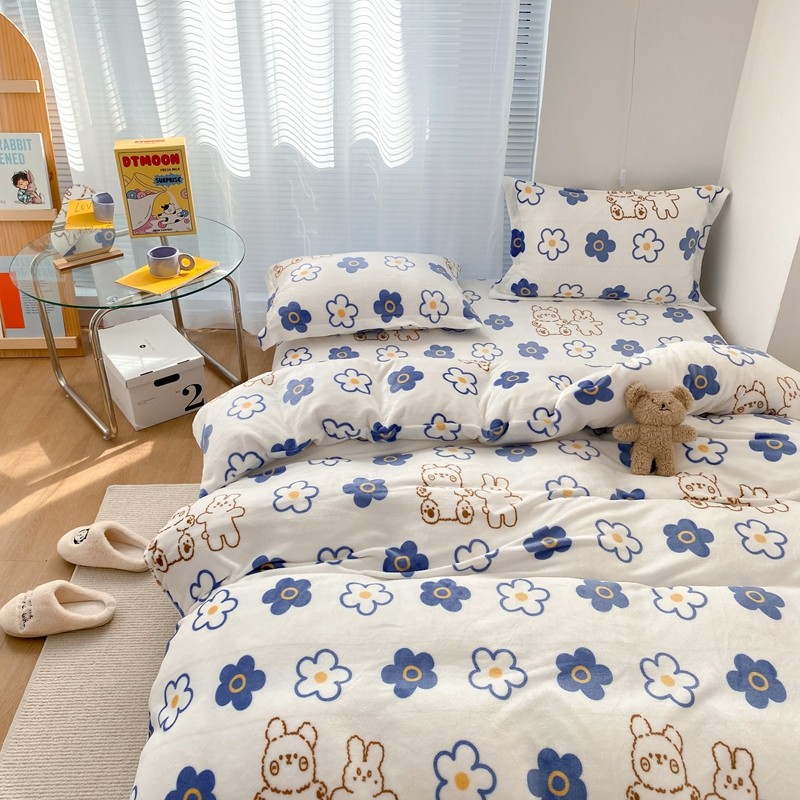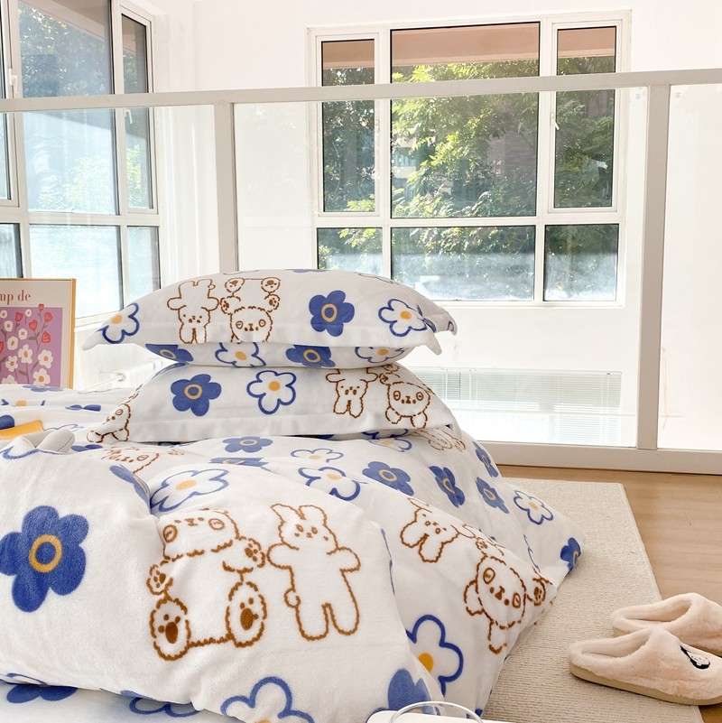 昔可家纺 2021新款牛奶绒四件套第二组图 蓝花小熊兔