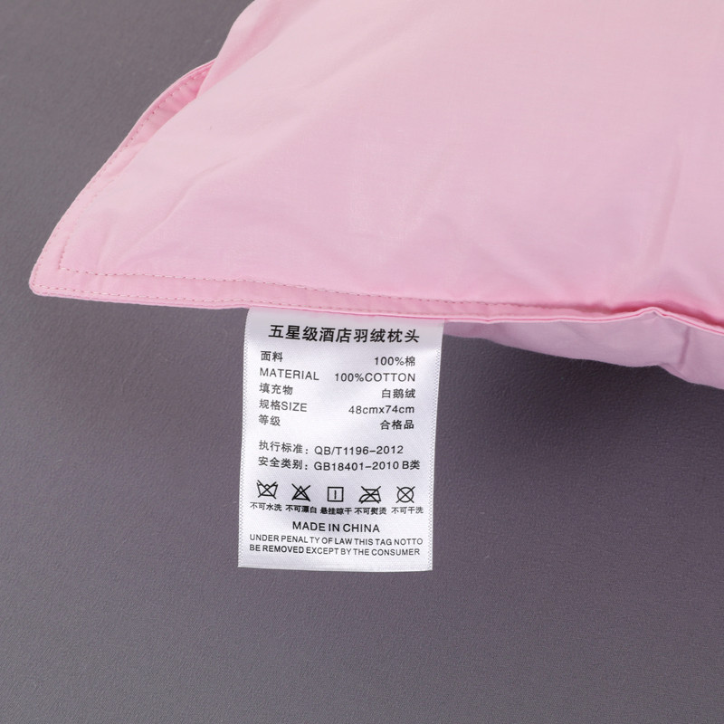 羽仙子2023新品爆款 全棉双针工艺羽绒枕 鹅绒枕头枕芯粉色