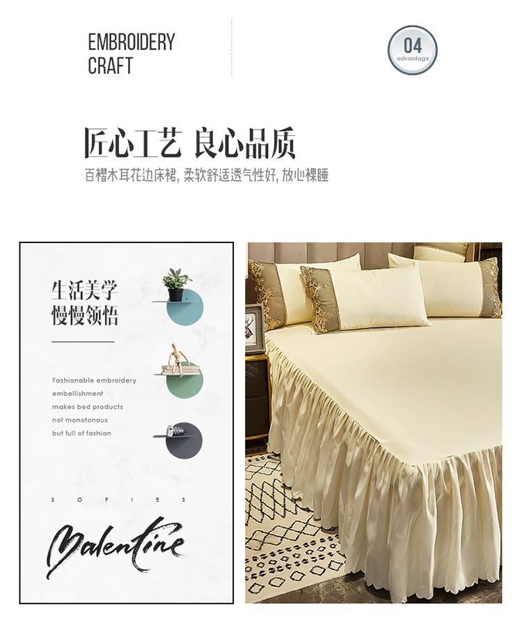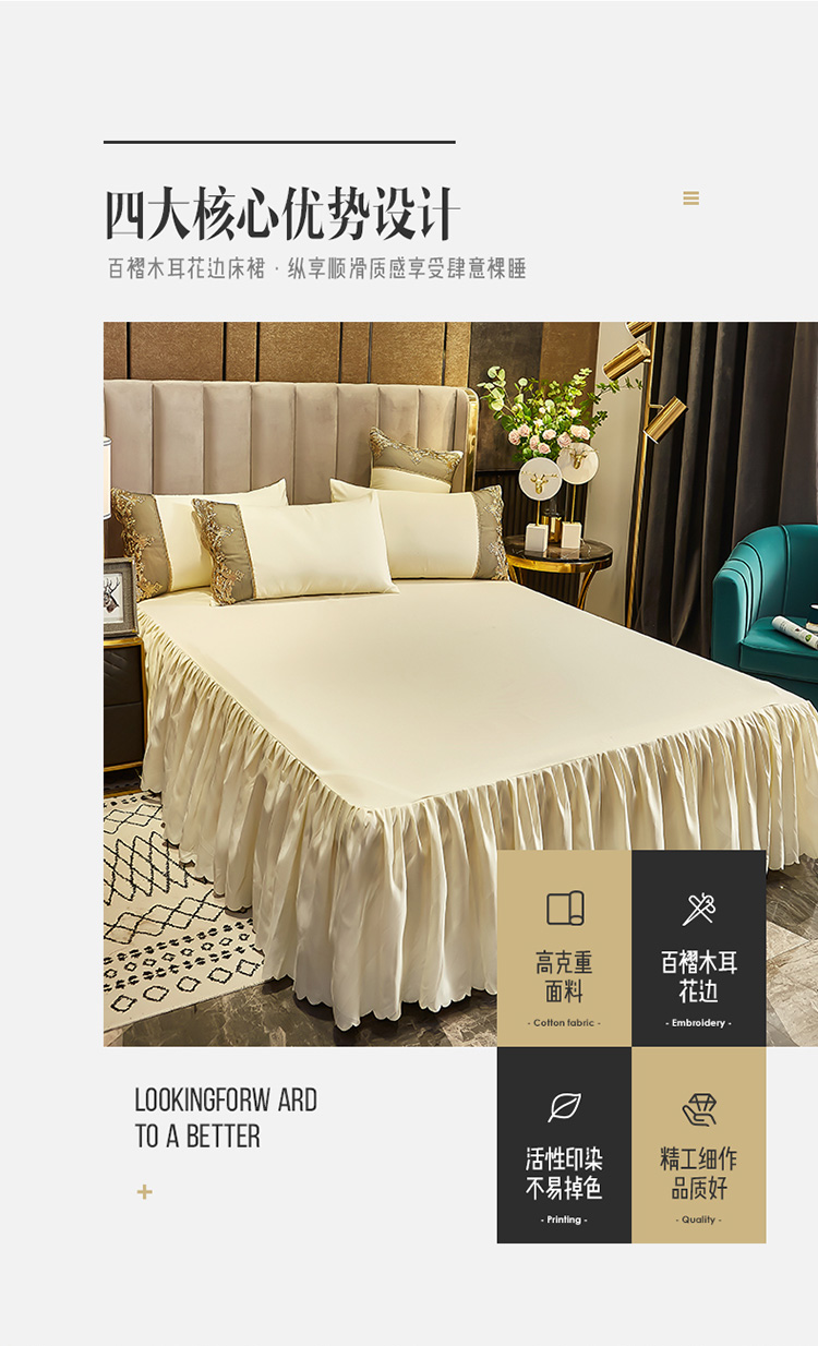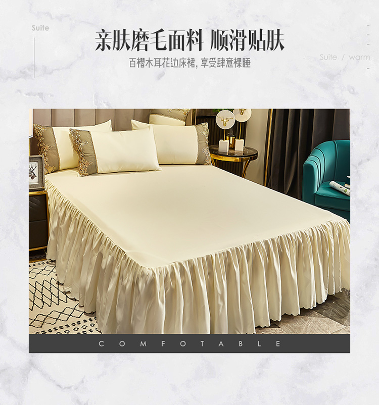 莉莉安家纺 2025新款莫娜百褶木耳花边单床裙 莫娜-象牙白