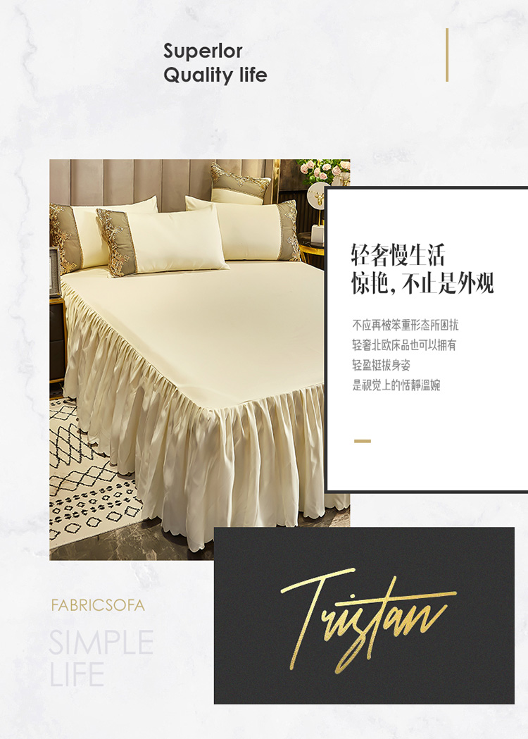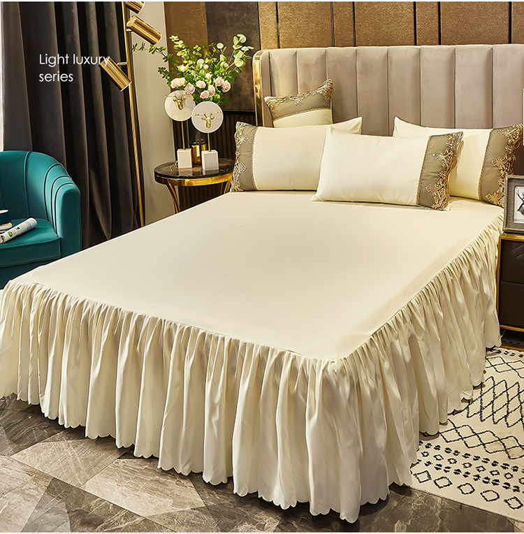 商品名称:莉莉安家纺 2025新款莫娜百褶木耳花边单床裙 莫娜-象牙白