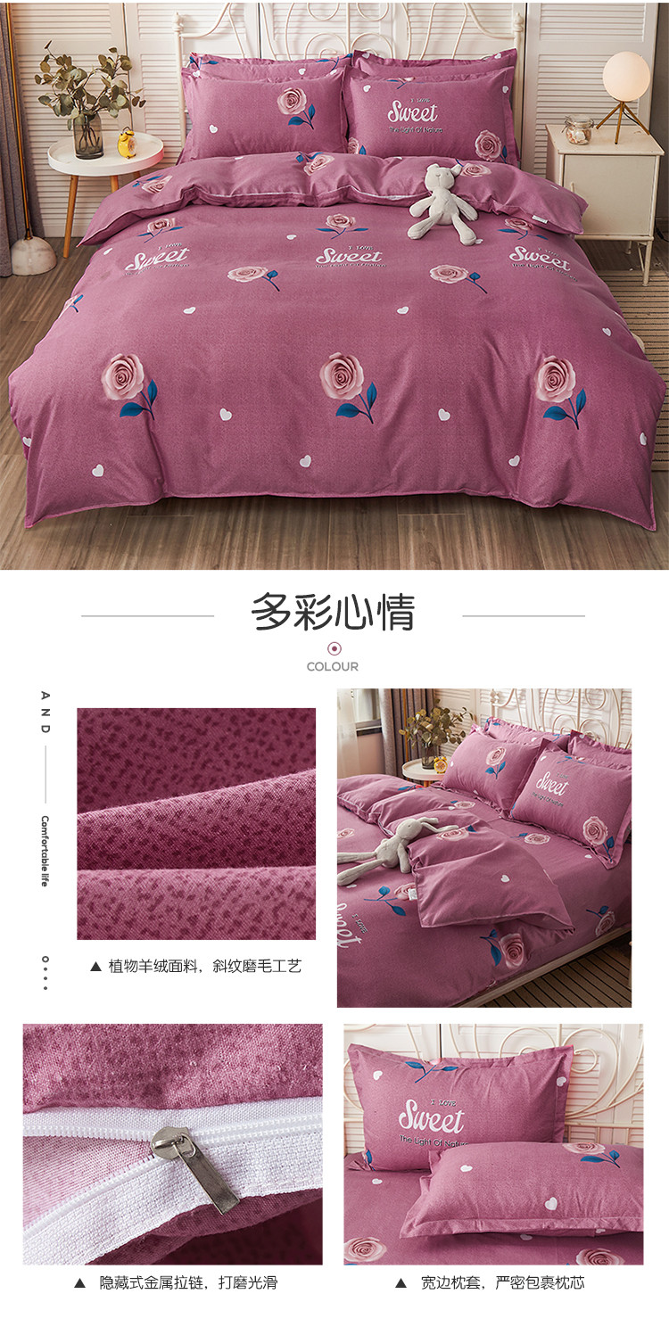 当前位置: 91家纺网 > 商品网购 > 床品套件 > 四件套 > 化纤普通四件套 > 优家居 2023新款植物羊绒四件套 多彩心情
