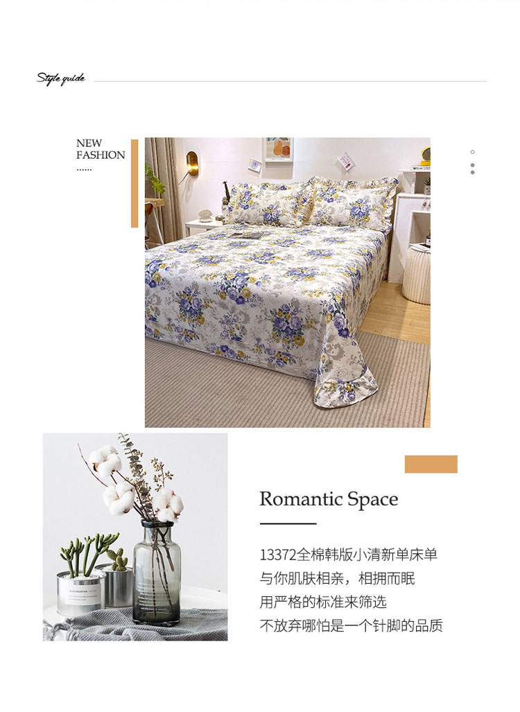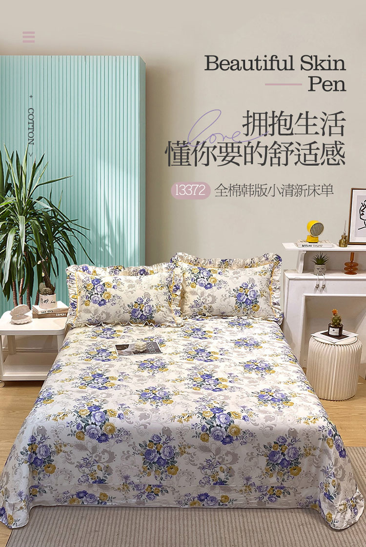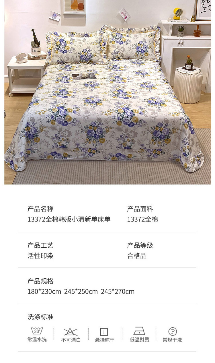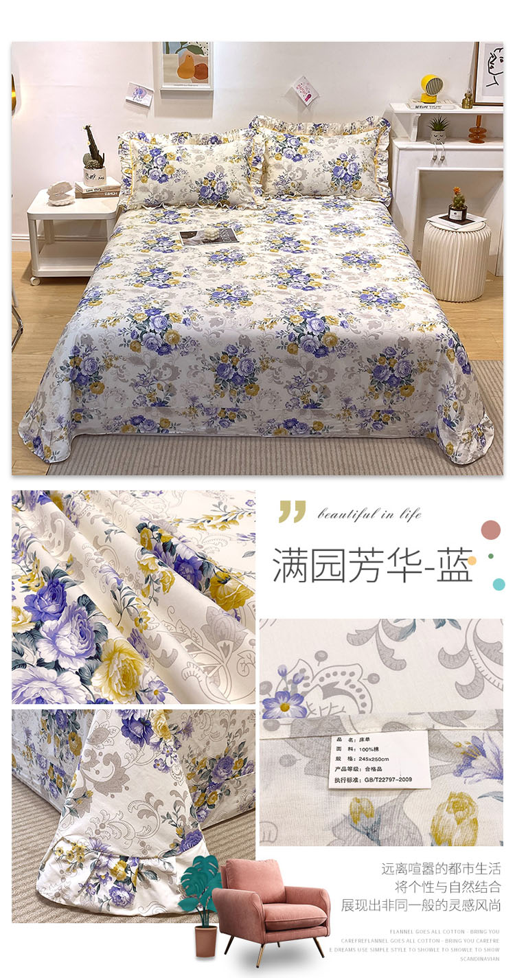 商品名称:宝齐莱 2022新款13372韩版全棉印花单床单 满园芳华-蓝-1