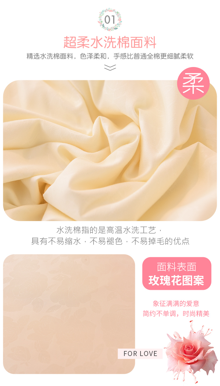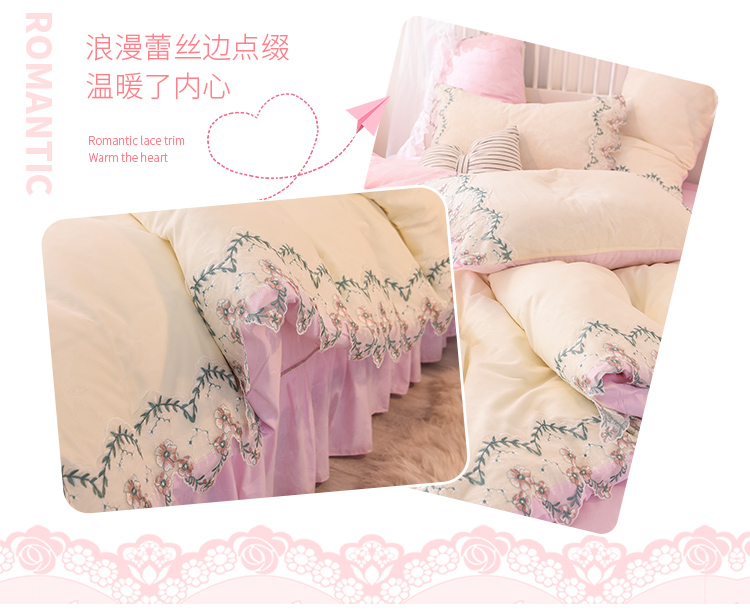 当前位置: 91家纺网 > 商品网购 > 床品套件 > 四件套 > 水洗棉四件套 > 绒世界 2022新款韩版水洗棉蕾丝玫瑰秘密系列四件套 玫瑰秘密-粉白