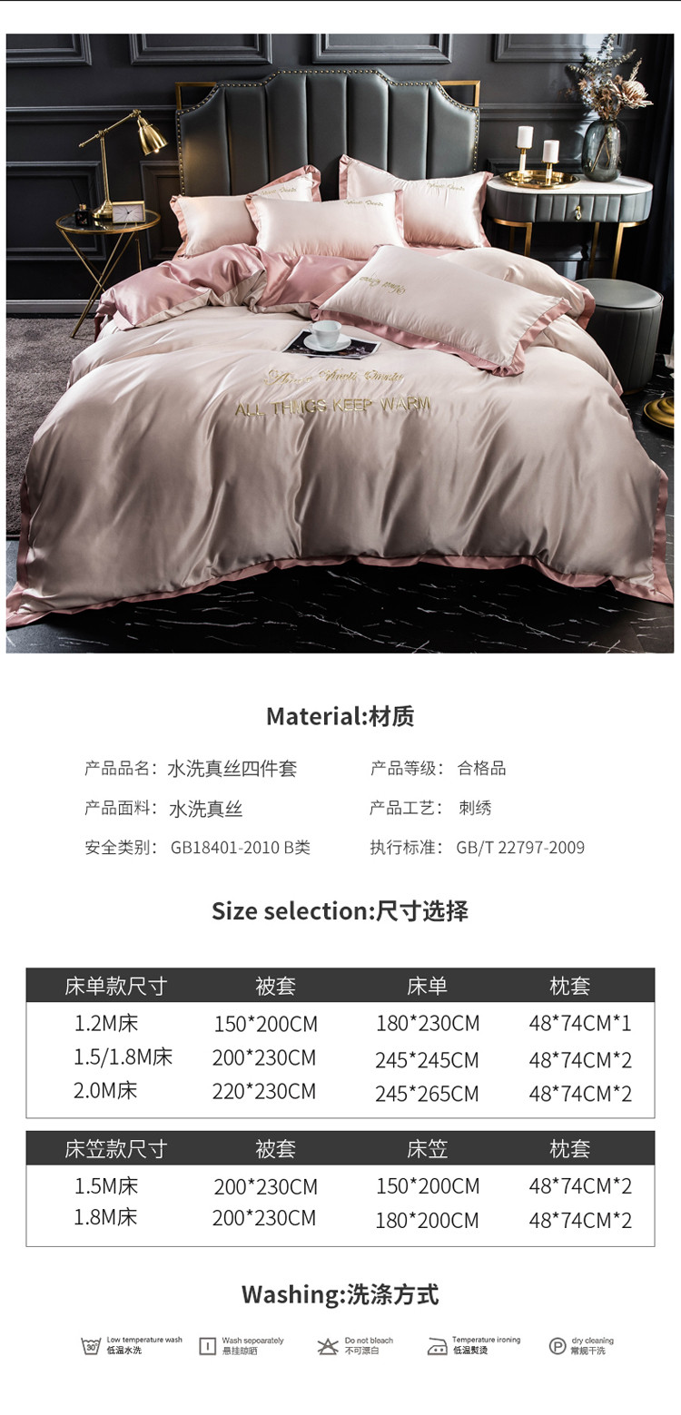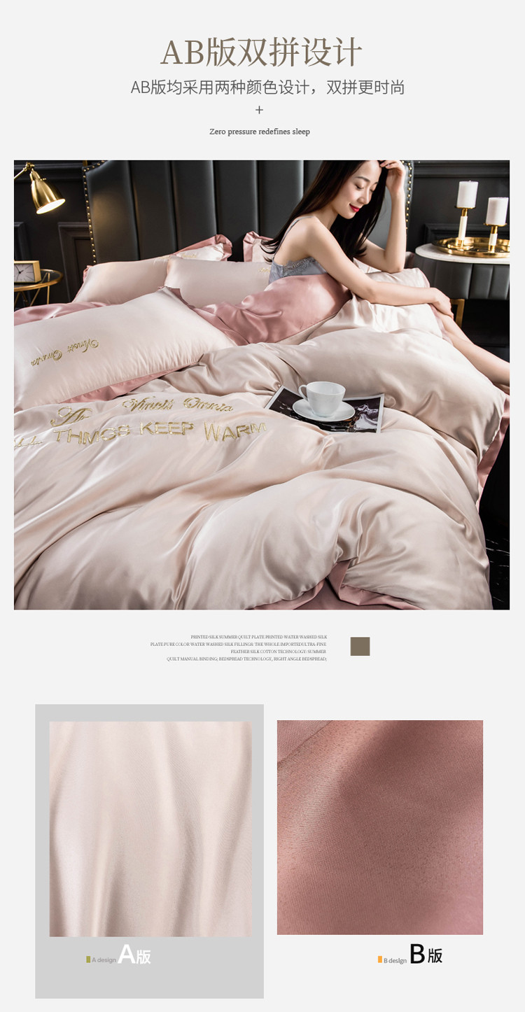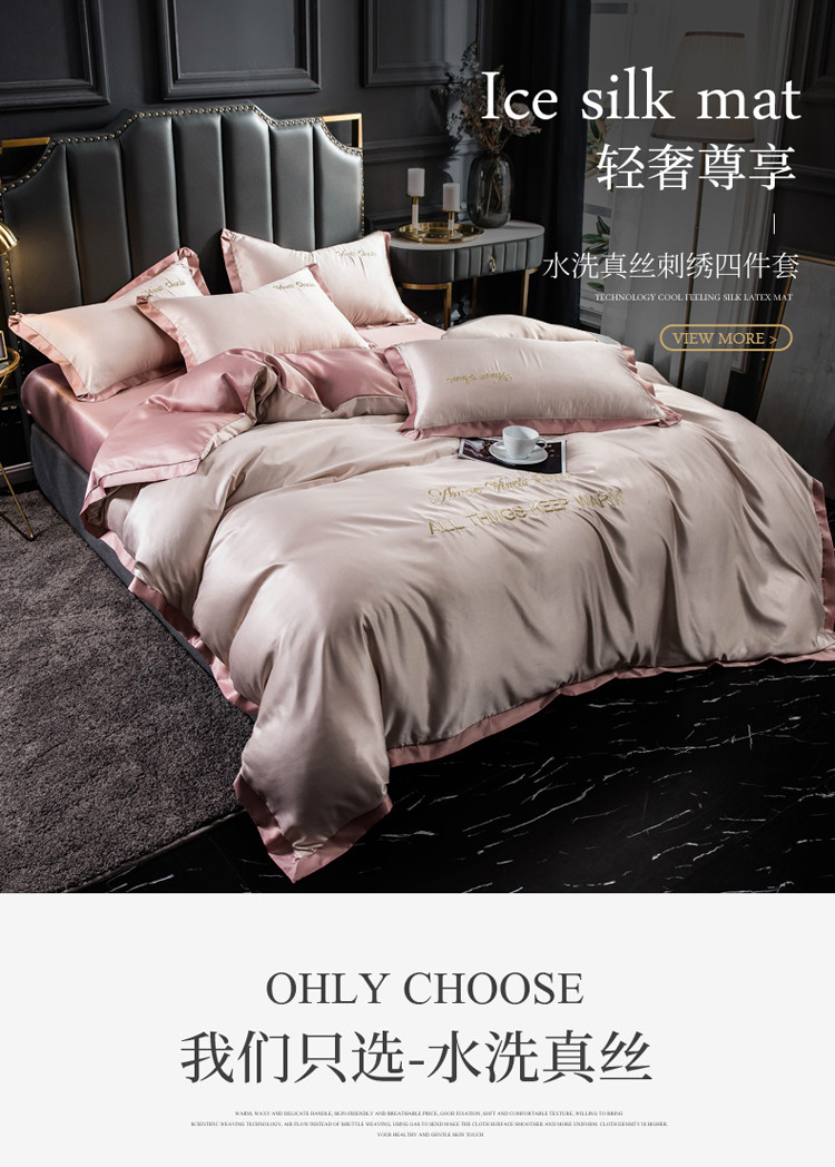 商品名称:欧冠 2022新款水洗真丝盛夏系列四件套 粉玉香槟