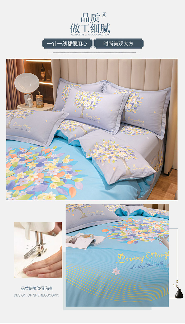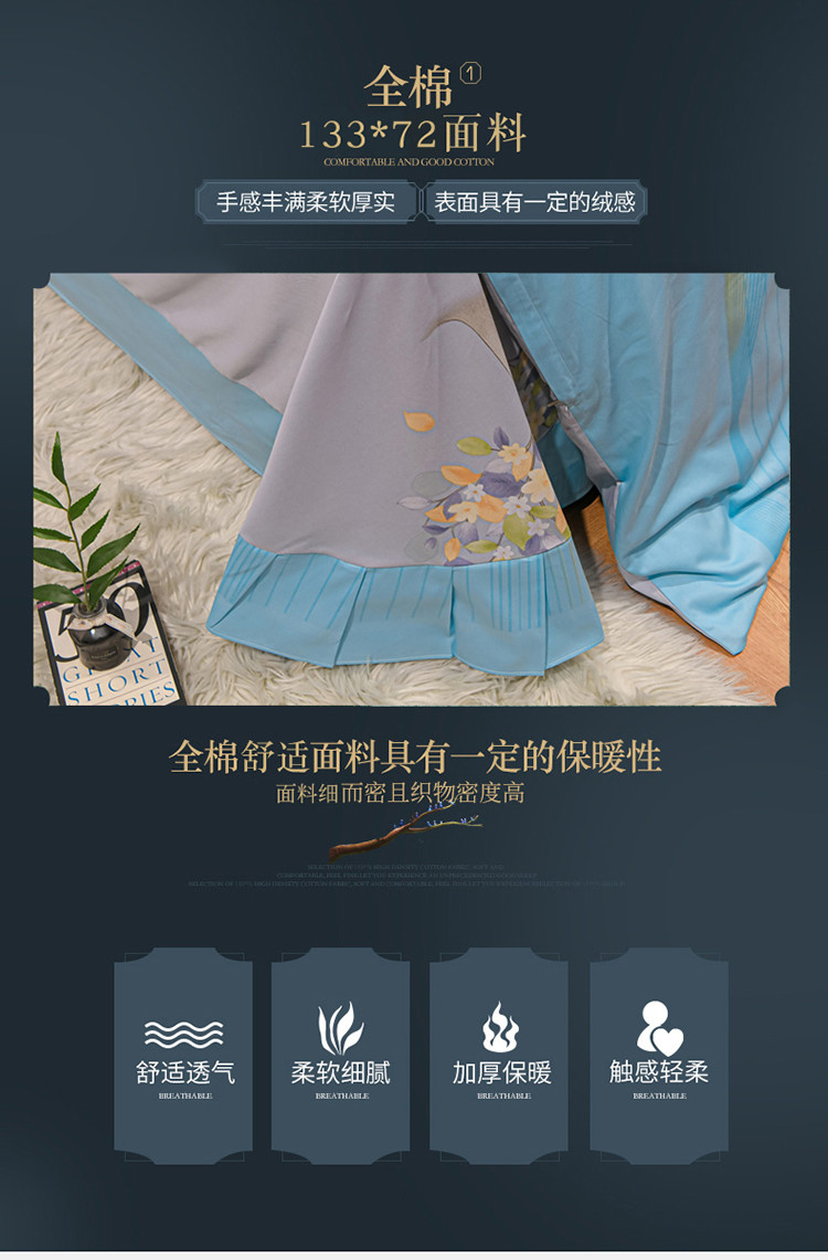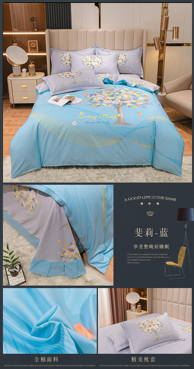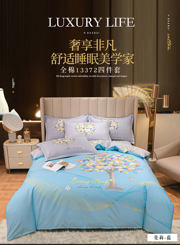 商品名称:金爱家2023新款大版13372全棉花卉系列四件套 斐莉-蓝