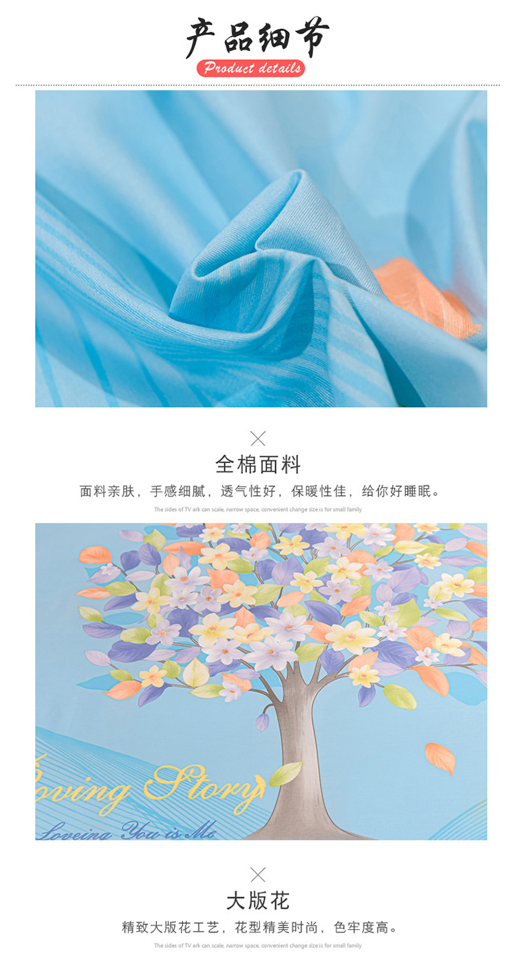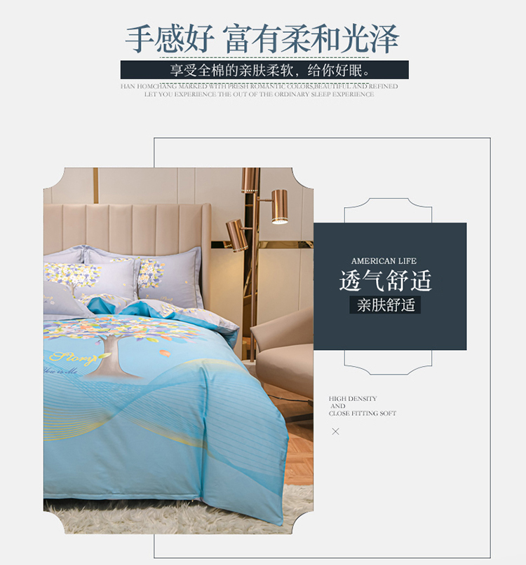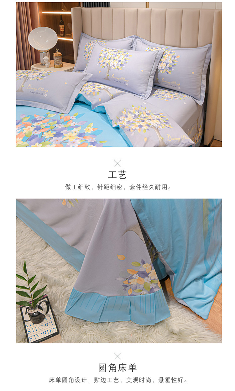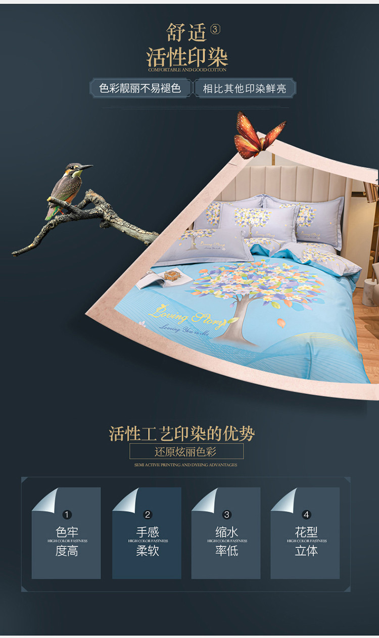 商品名称:金爱家2023新款大版13372全棉花卉系列四件套 斐莉-蓝