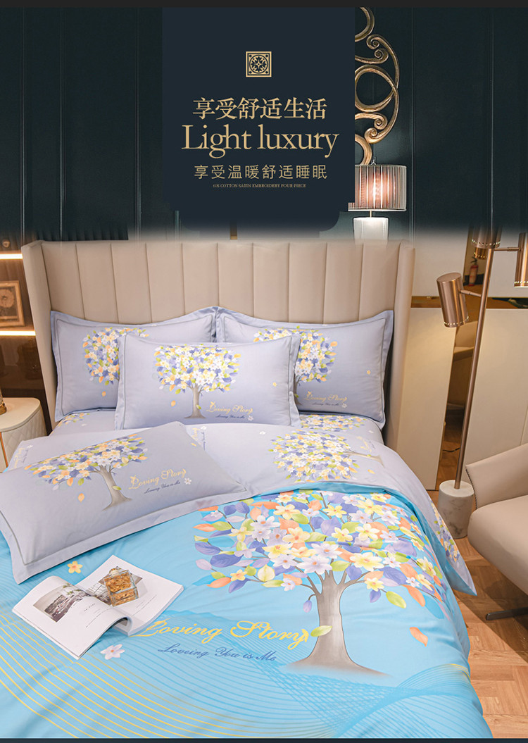 金爱家2023新款大版13372全棉花卉系列四件套 斐莉-蓝