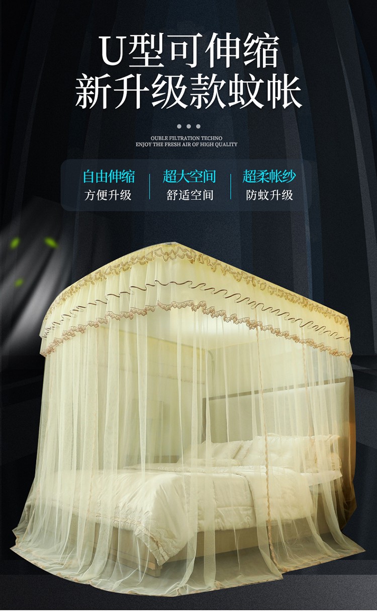 (总)夏彩 2025新款蕾丝U型防摔坐床蚊帐-88630,绿雅灰,藕玉色,香槟色