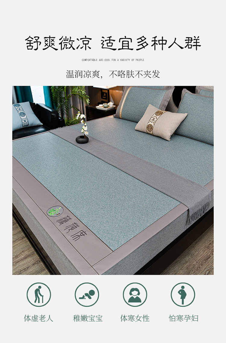 2023新款经典全藤席面艾草养生席-床笠款冰藤席冰丝席竹席空调席凉席,冰蓝,黑咖,红棕,黄藤,灰色,墨绿,浅咖,亚麻