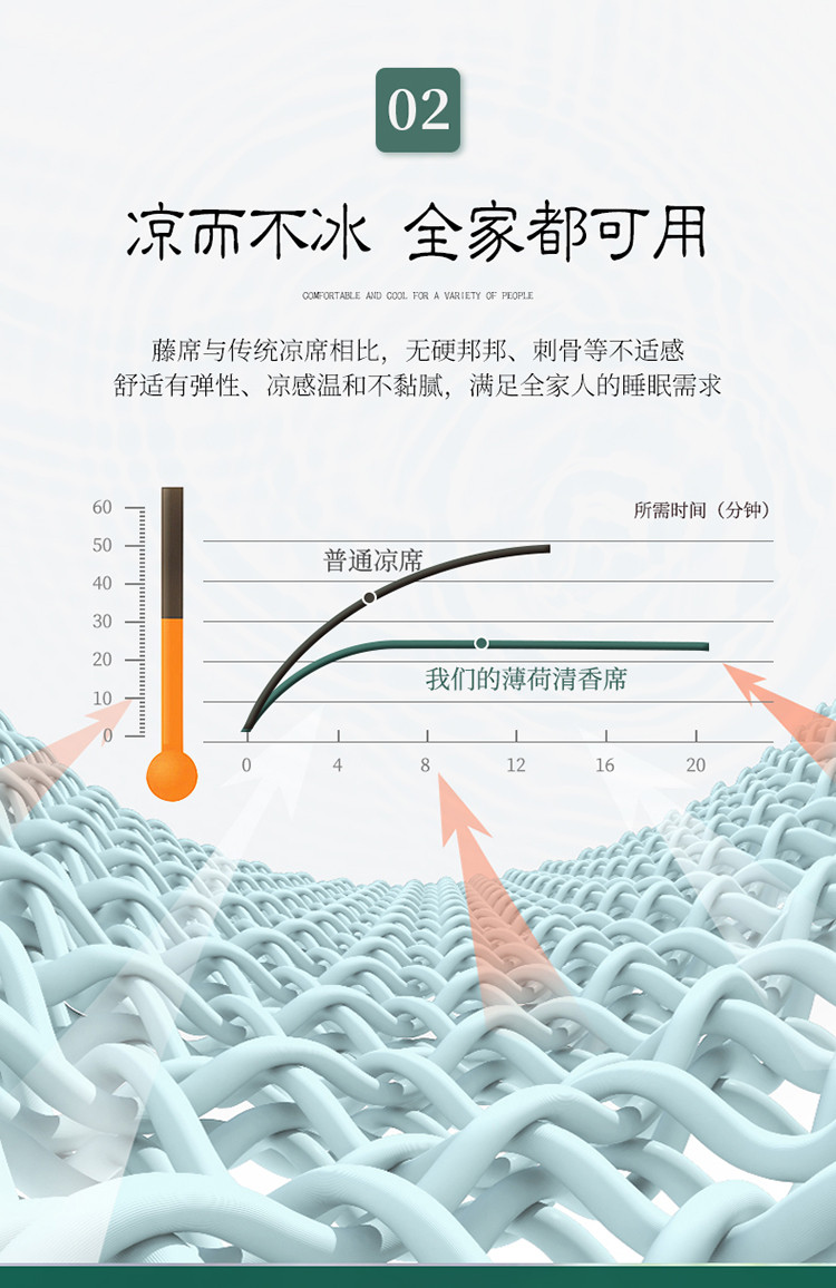 2023新款夏日冰点-冰藤双面席凉席藤席竹席冰丝席乳胶席,咖色,蓝色,绿色,香槟