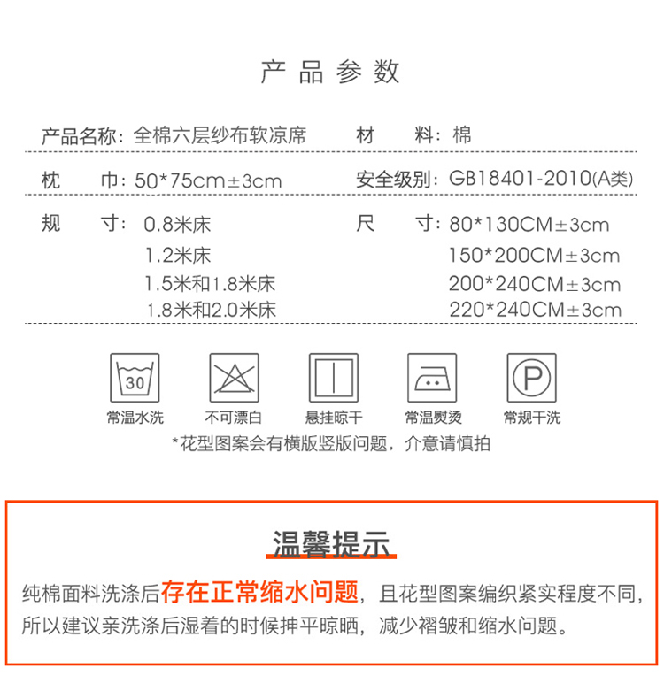 商品名称:(总)朴尔家纺 2022年新款全棉六层纱布凉席床单床盖