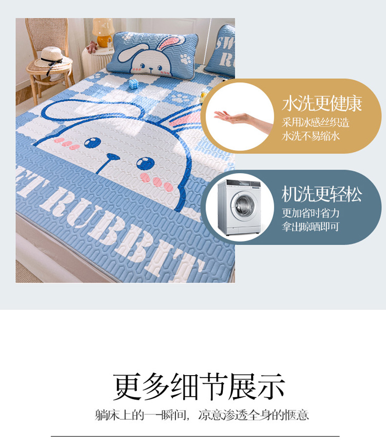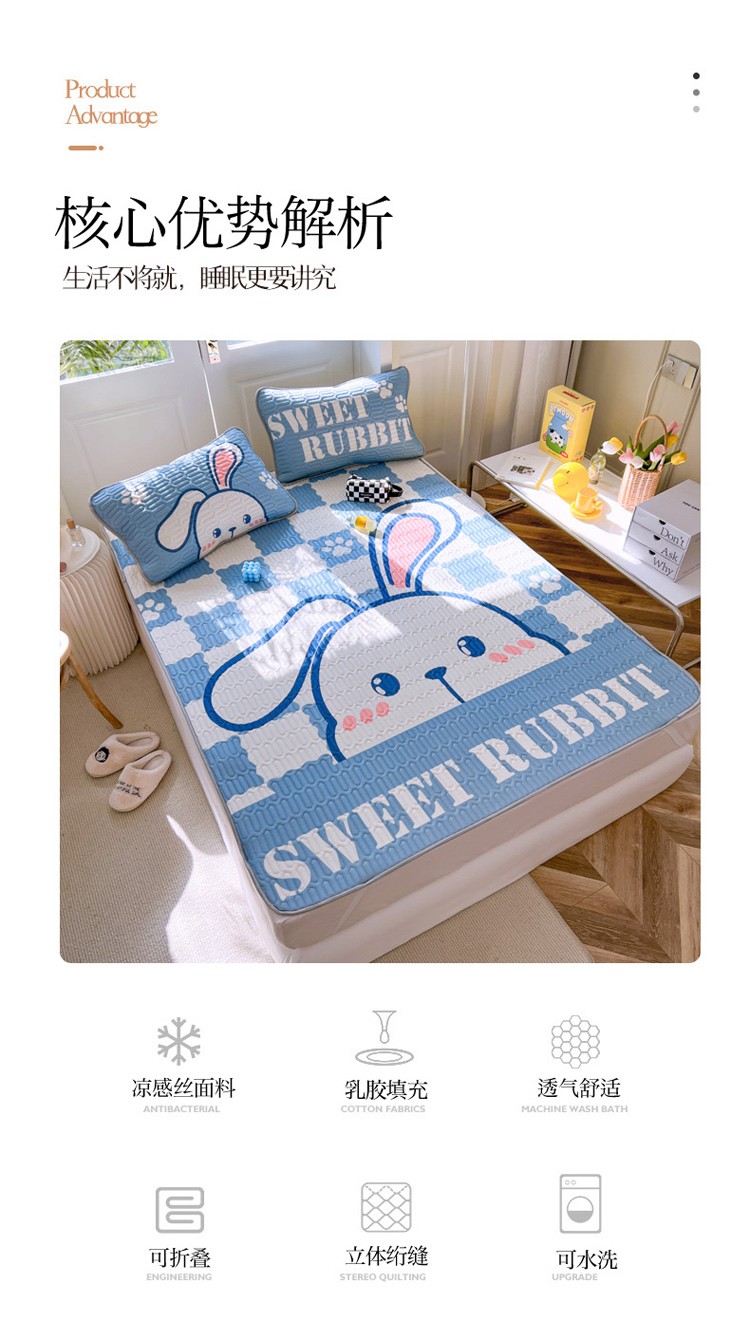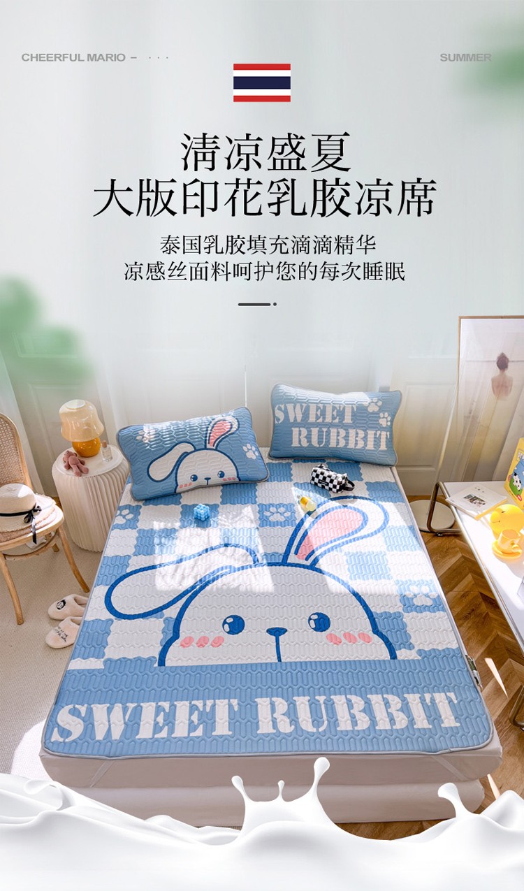 商品名称:寐居 2022新款凉感丝0.5乳胶大版乳胶凉席三件套 大耳兔