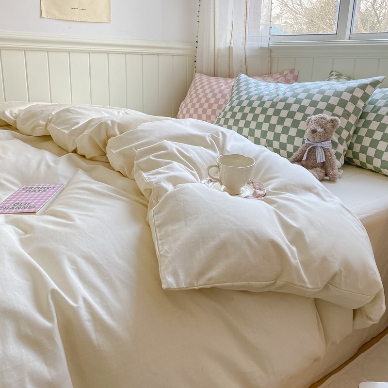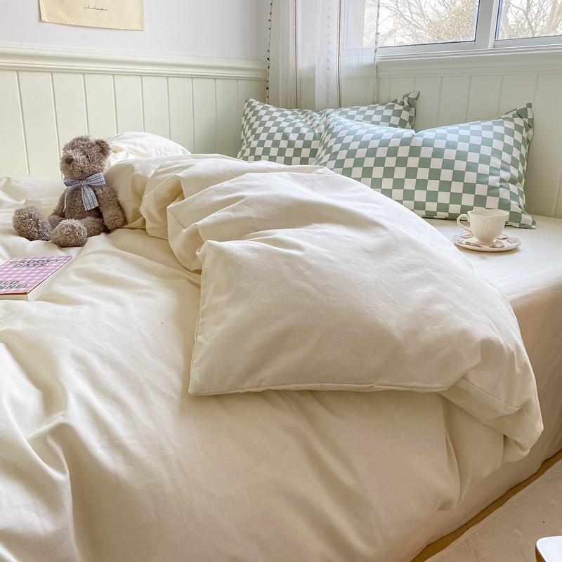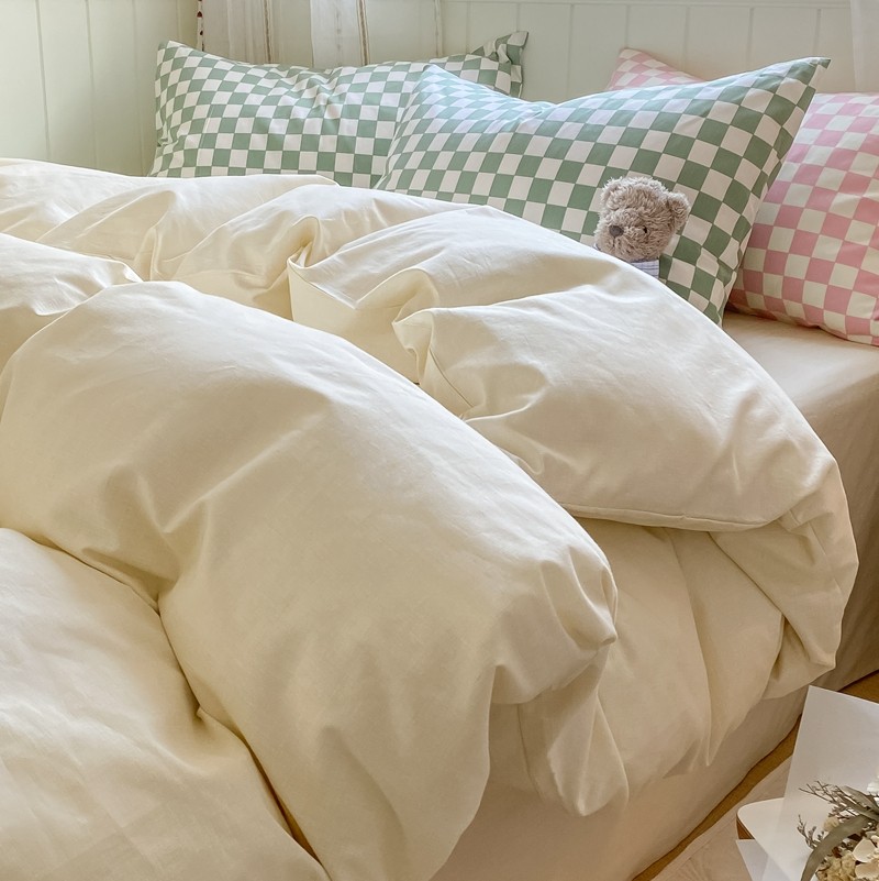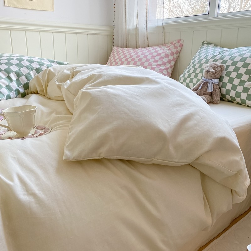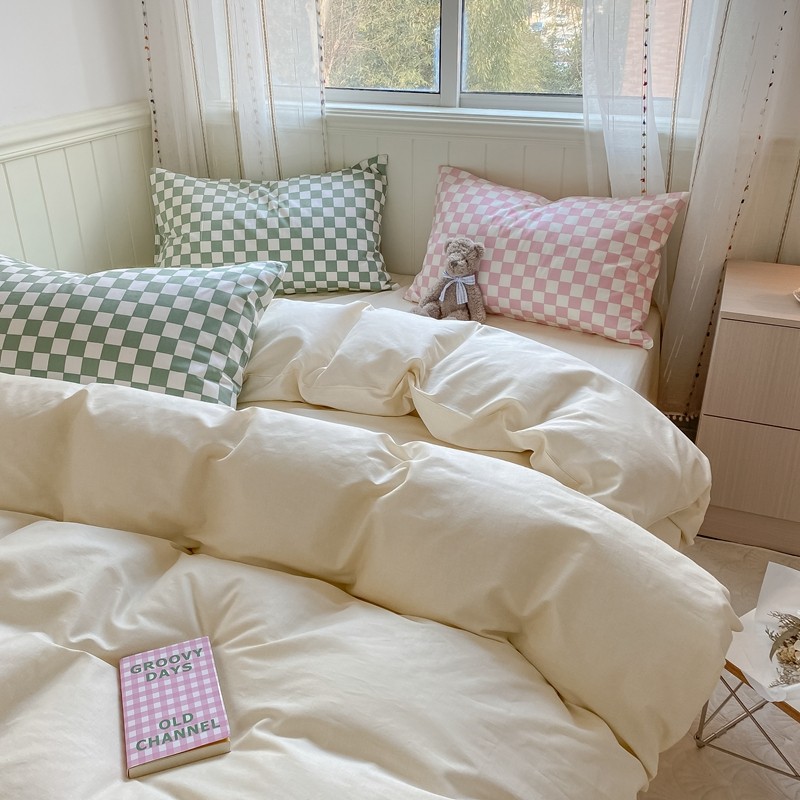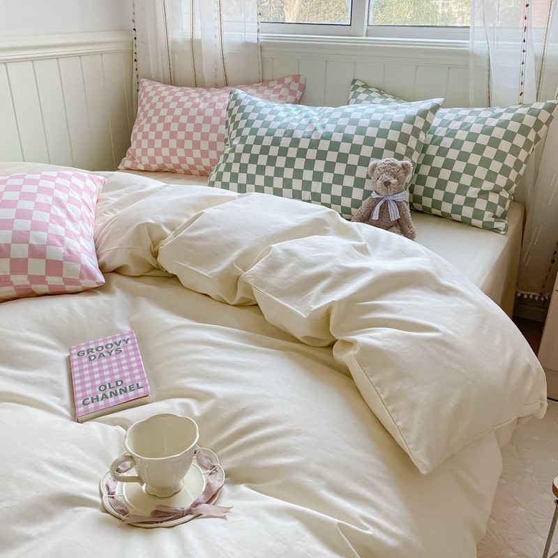 昔可2022新款混搭纯色棋盘格套件四件套 奶白绿棋盘
