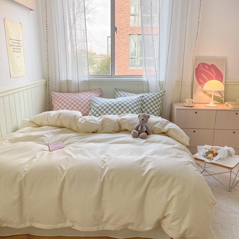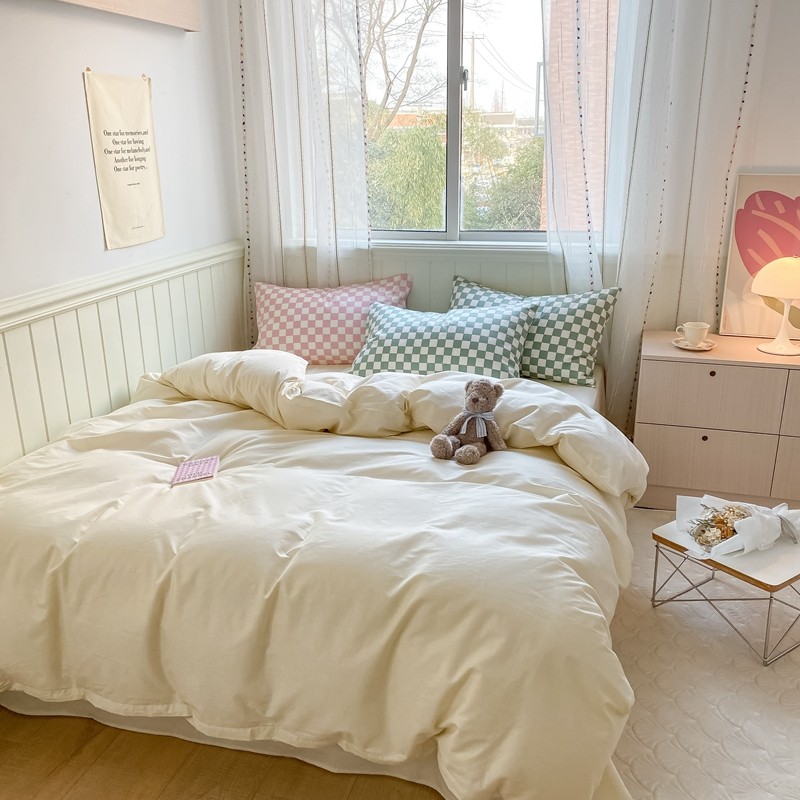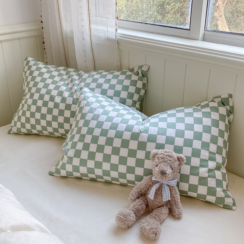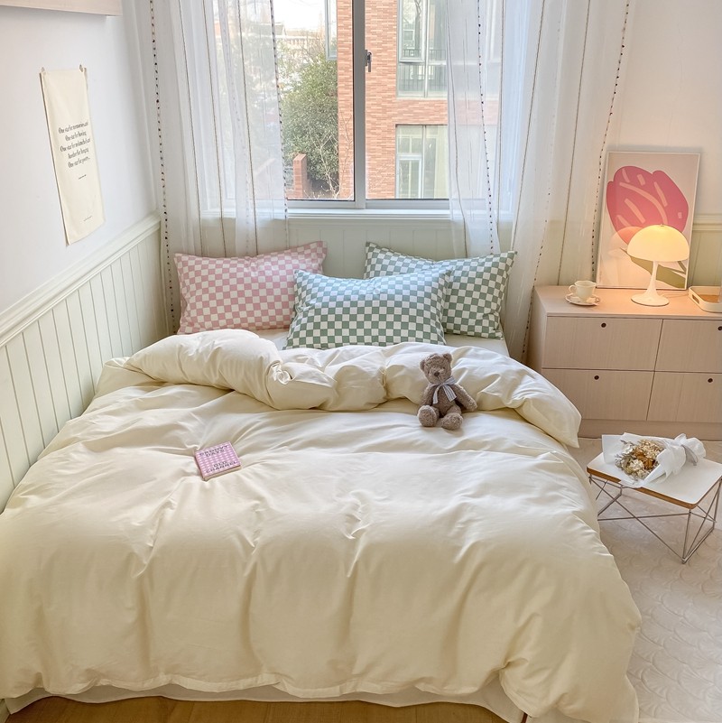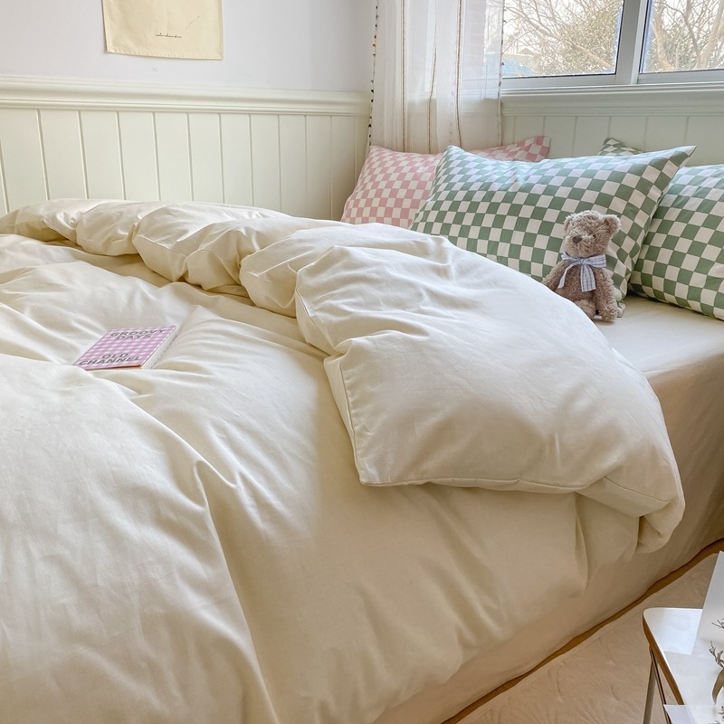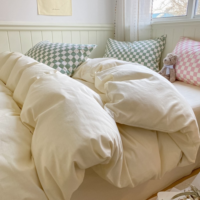 昔可2022新款混搭纯色棋盘格套件四件套 奶白绿棋盘