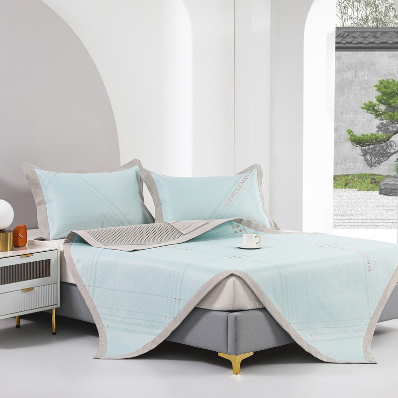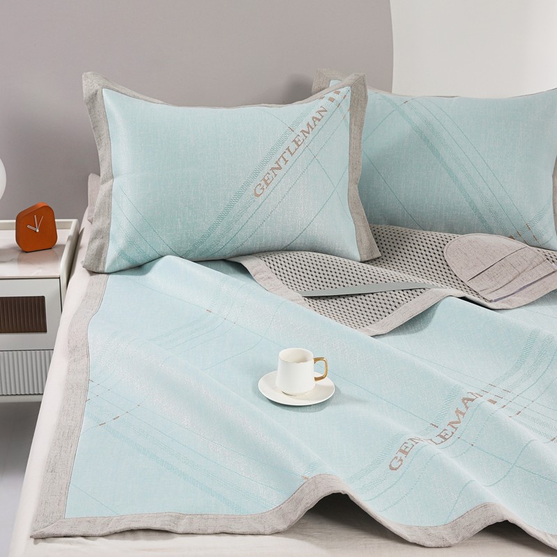 商品名称:馨蕊 2022新款高端可水洗抗菌冰感席四件套 英伦时光-绿