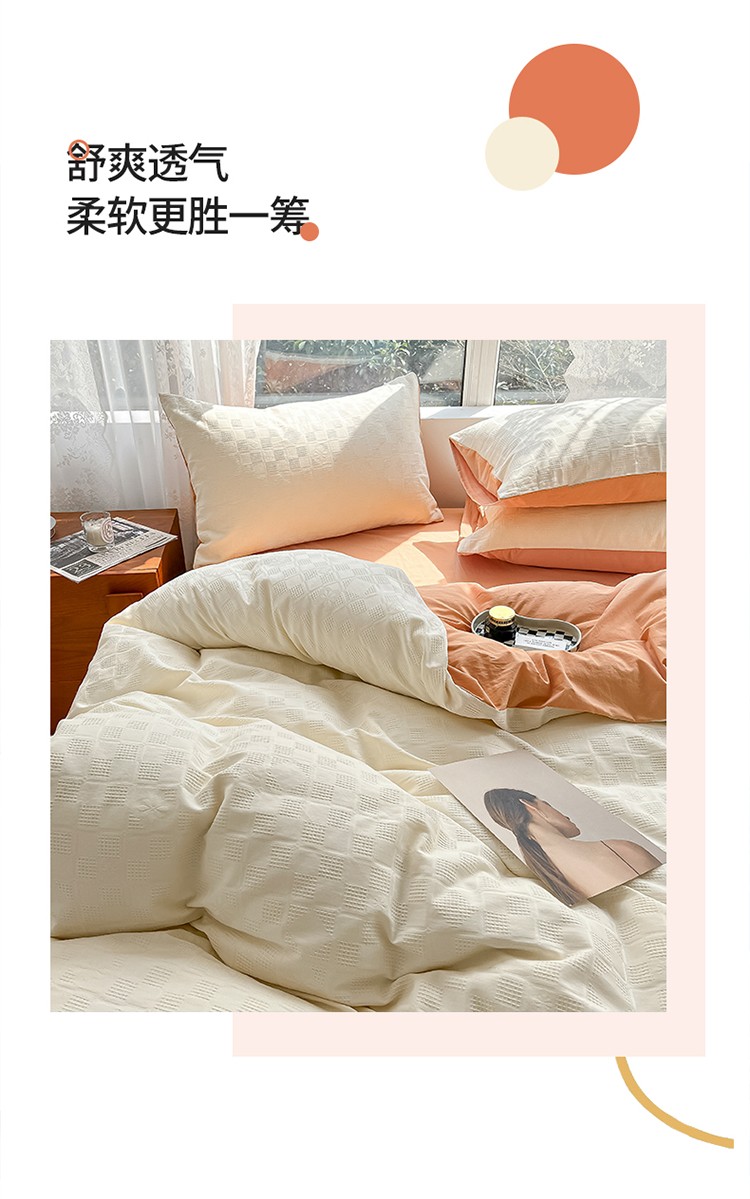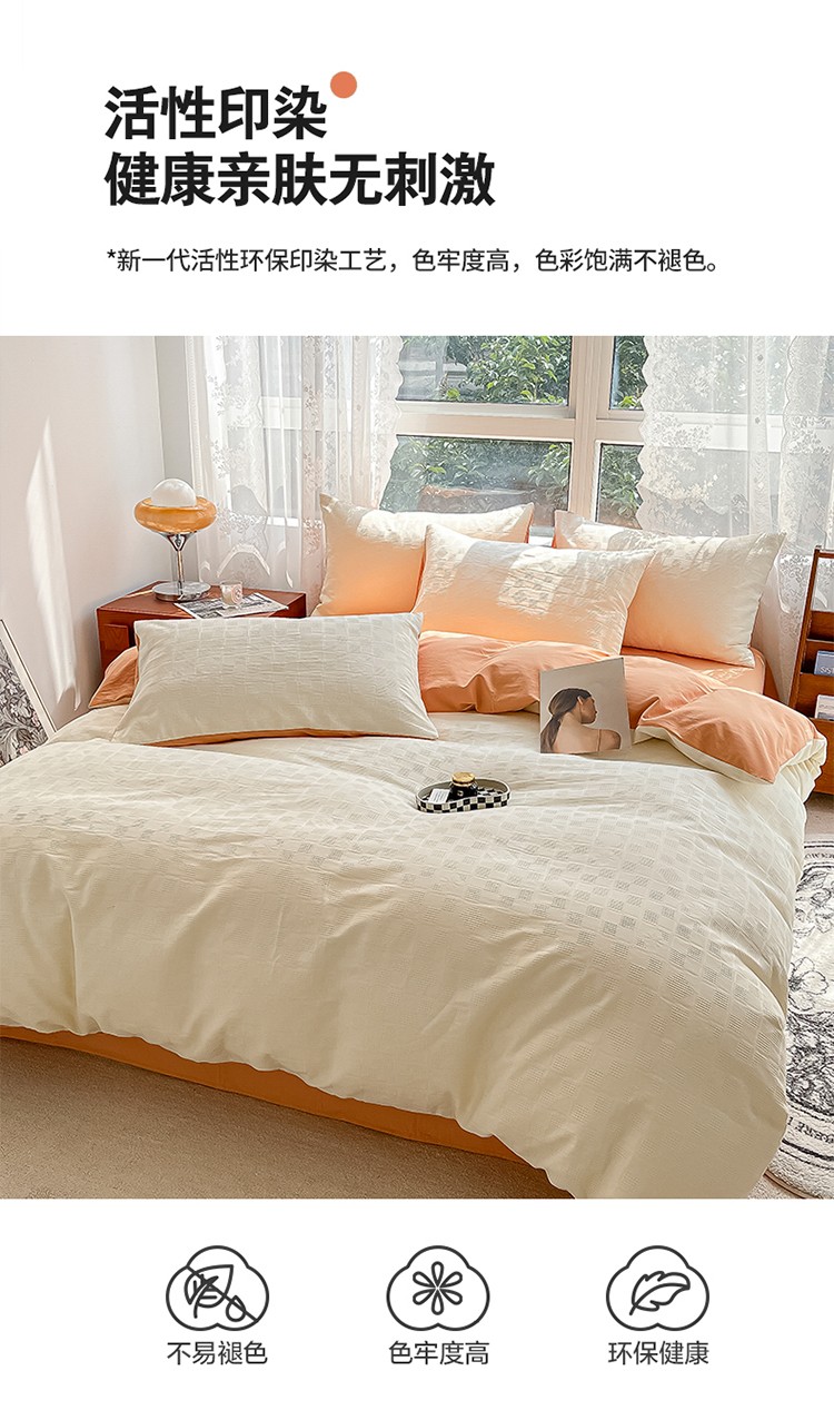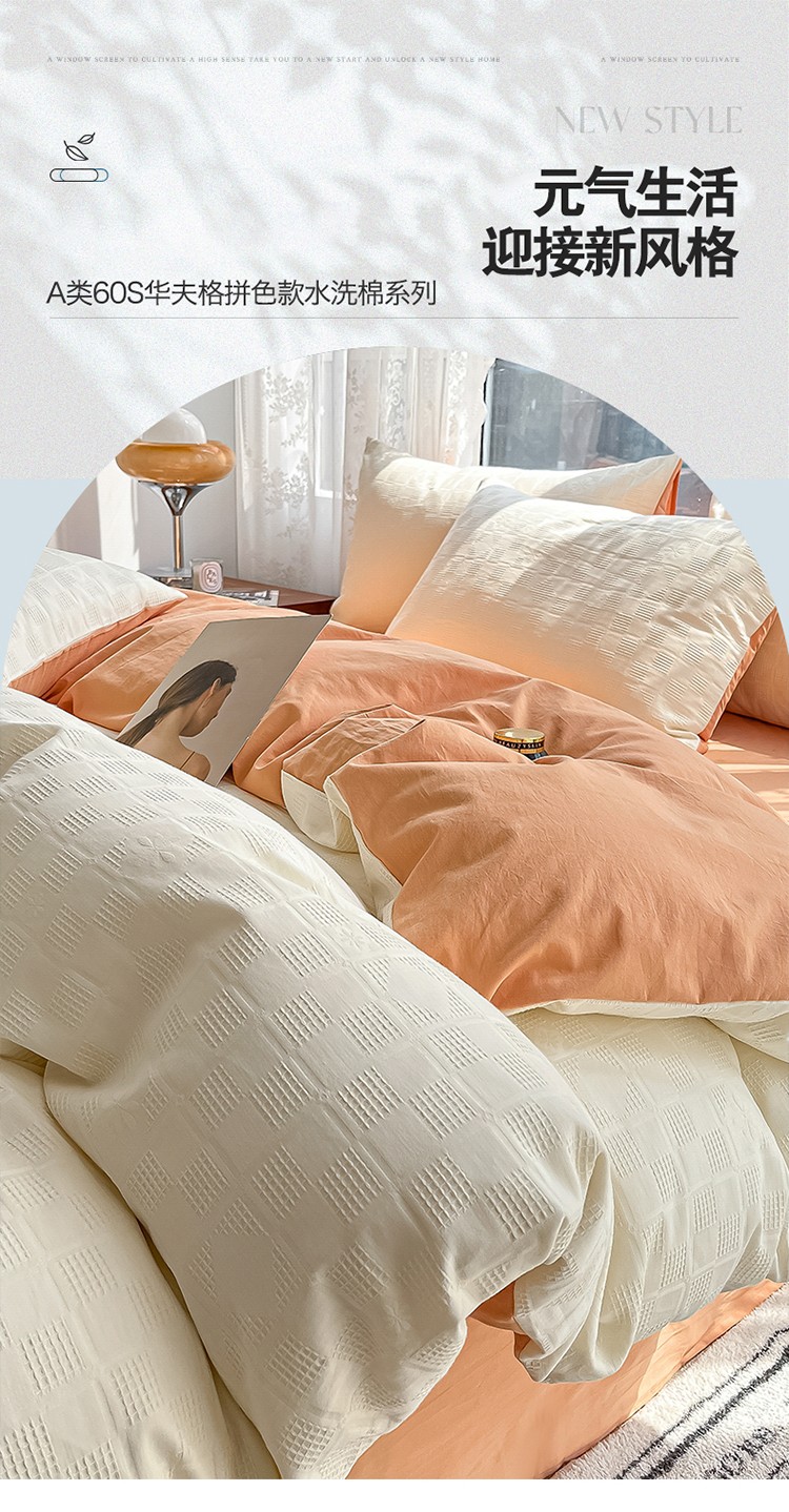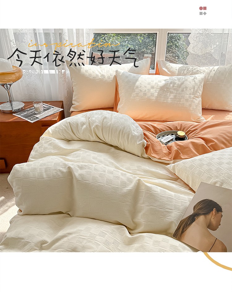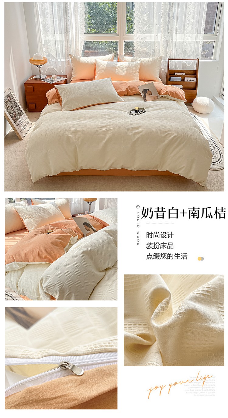 当前位置: 91家纺网 > 商品网购 > 床品套件 > 四件套 > 蓝米卡夫A类60S华夫格拼色款全棉系列四件套 米夫格-奶昔白+南瓜桔