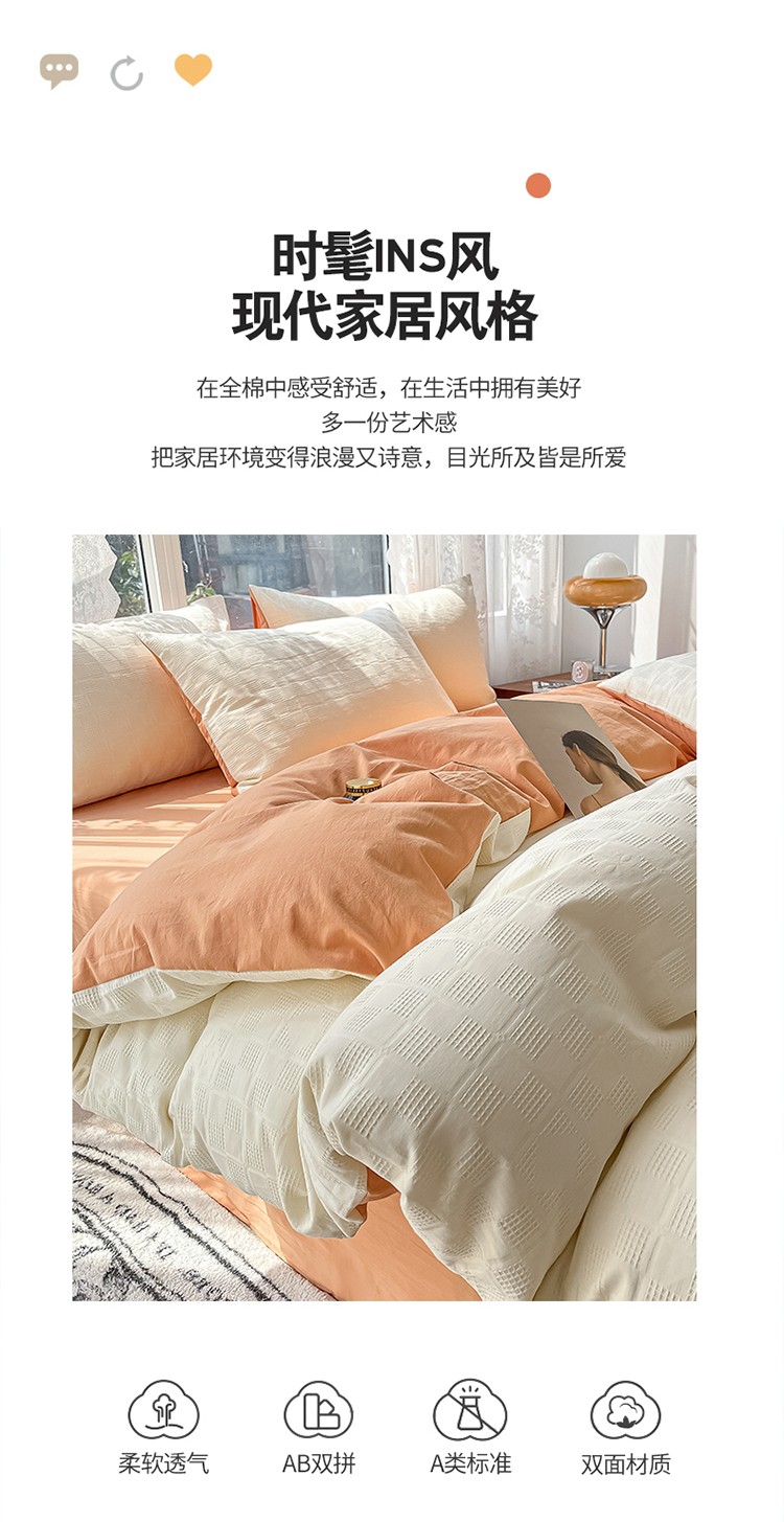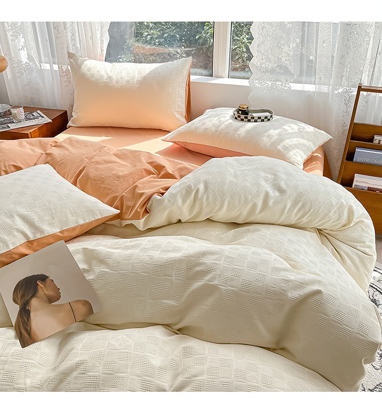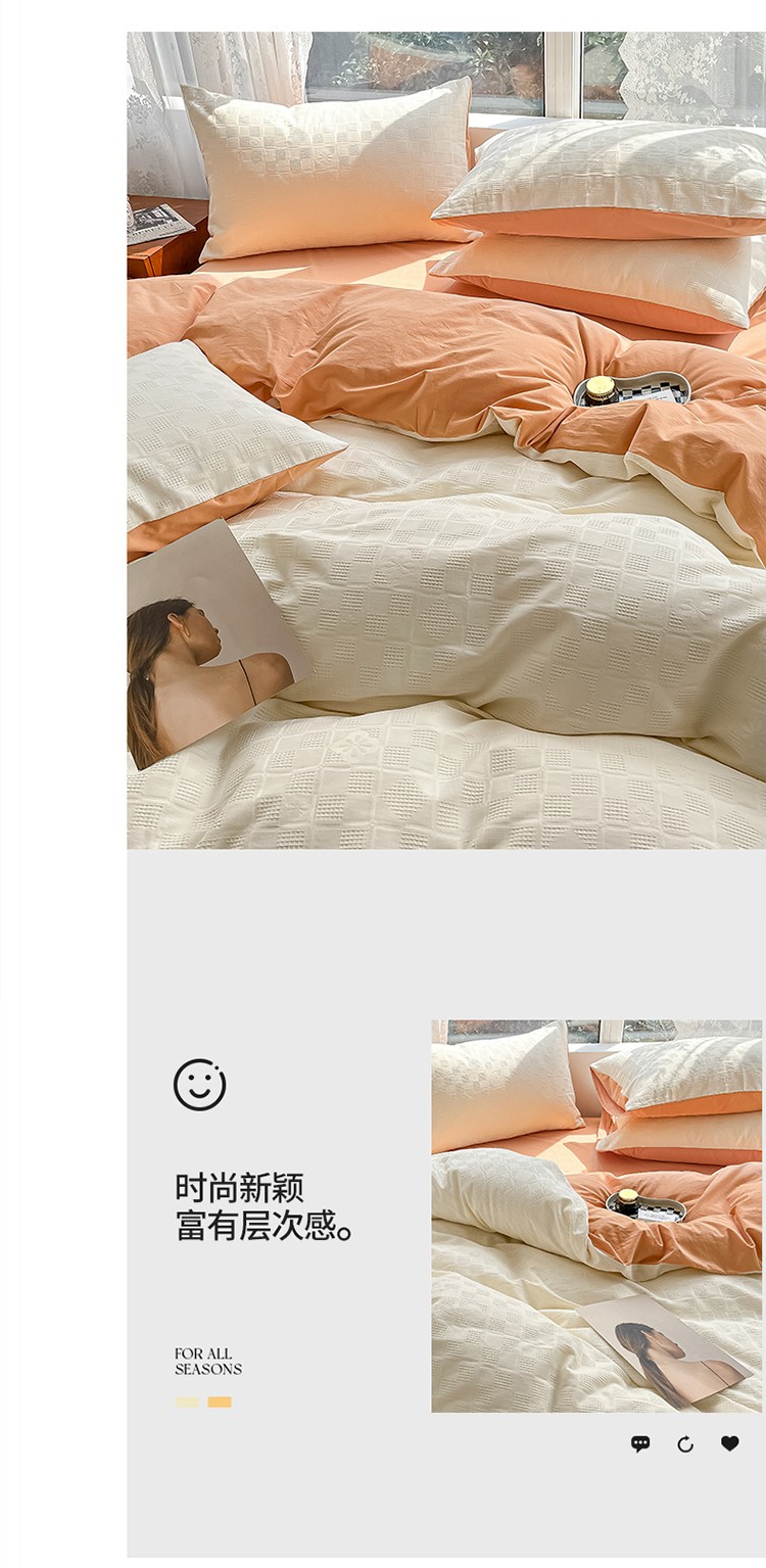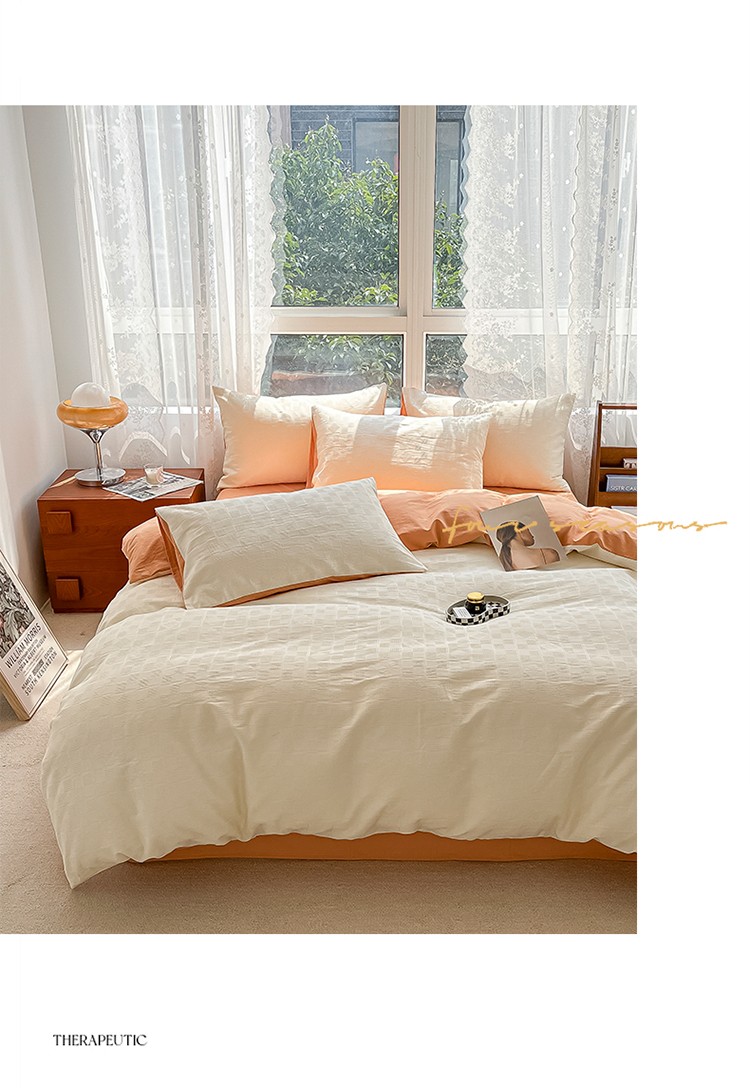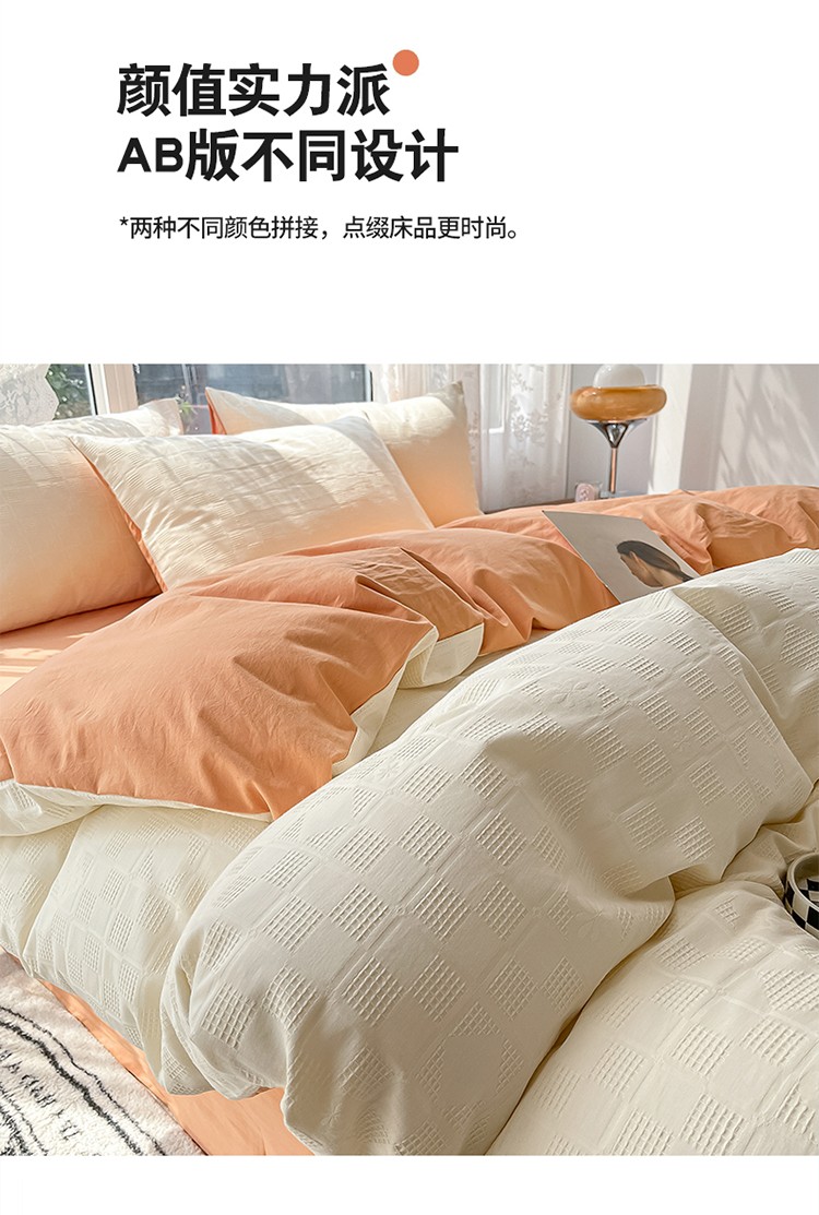 当前位置: 91家纺网 > 商品网购 > 床品套件 > 四件套 > 蓝米卡夫A类60S华夫格拼色款全棉系列四件套 米夫格-奶昔白+南瓜桔