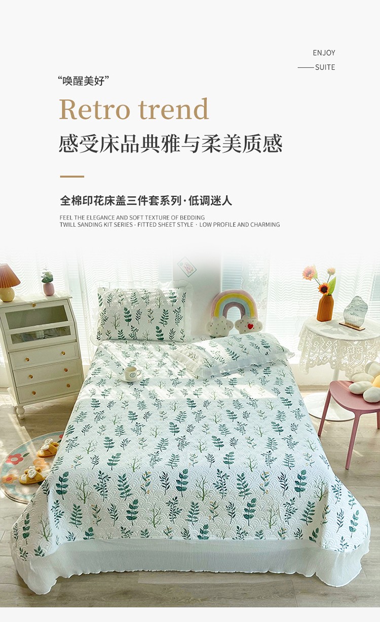 • 91家纺网 家纺一手货源 找家纺 鑫钰 2023全棉印花床盖三件套 琉璃