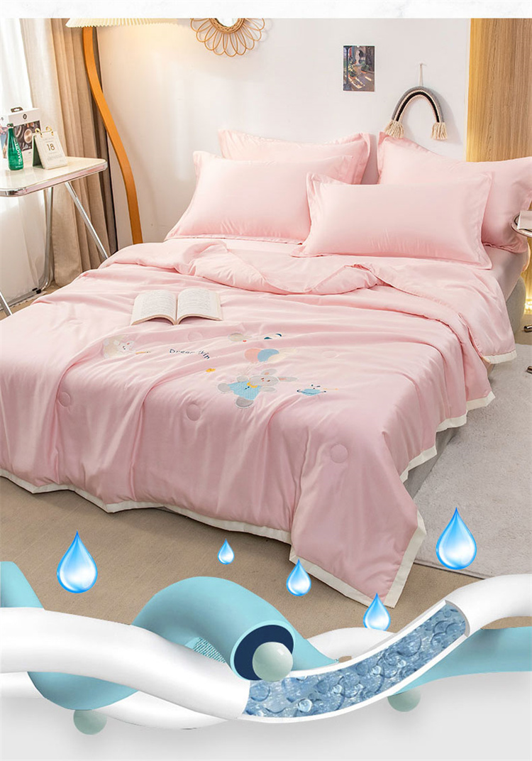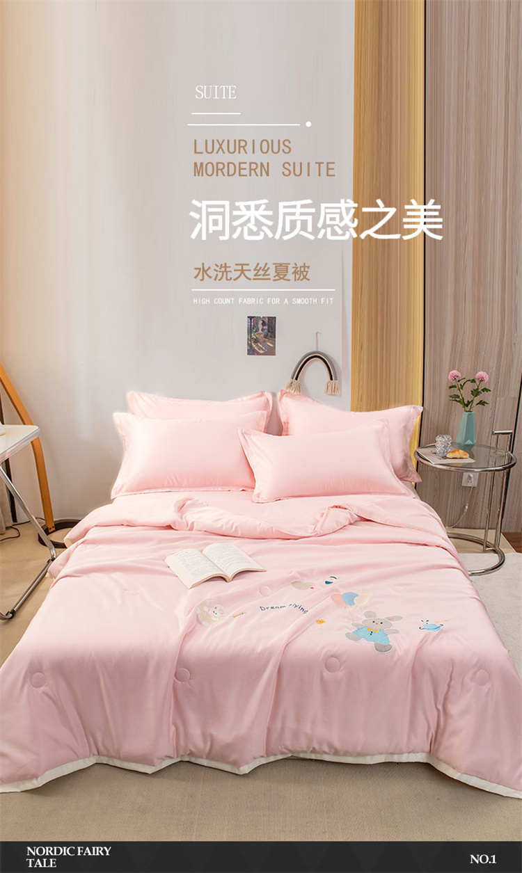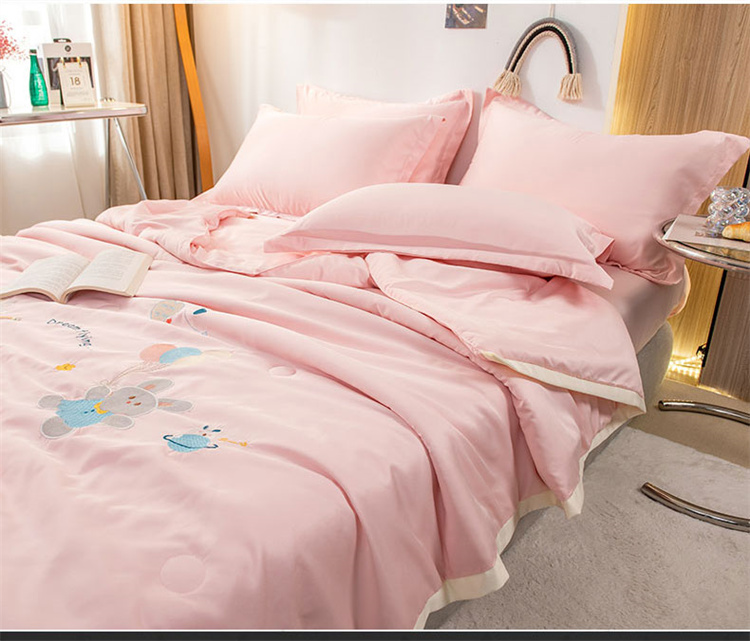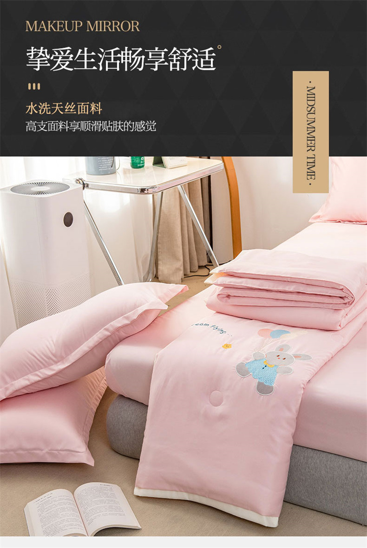芃成家纺 2022新款水洗天丝绣花夏被子被芯 兔子-粉
