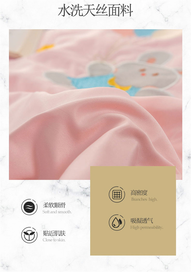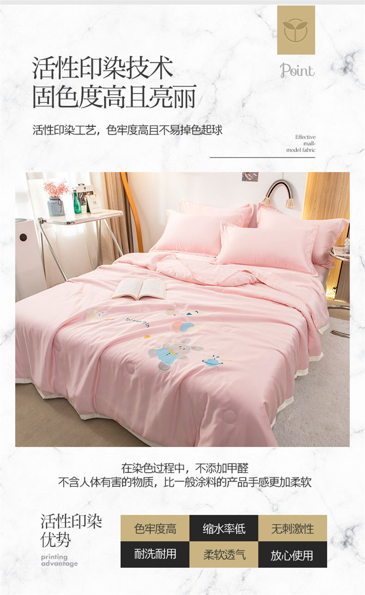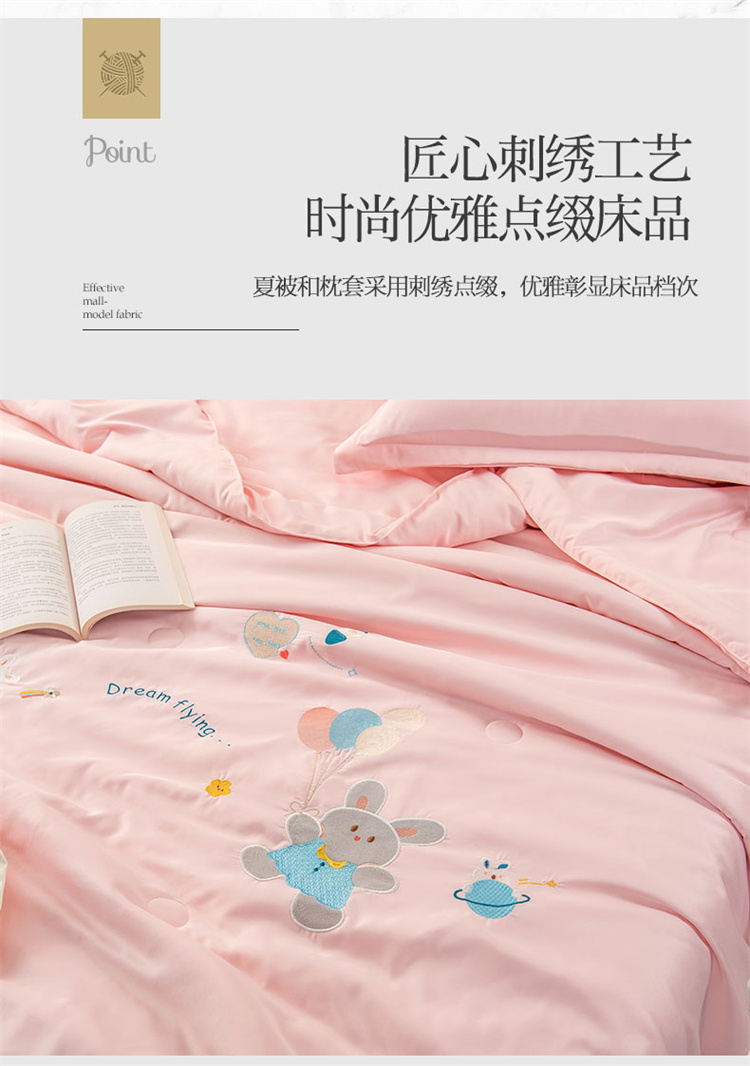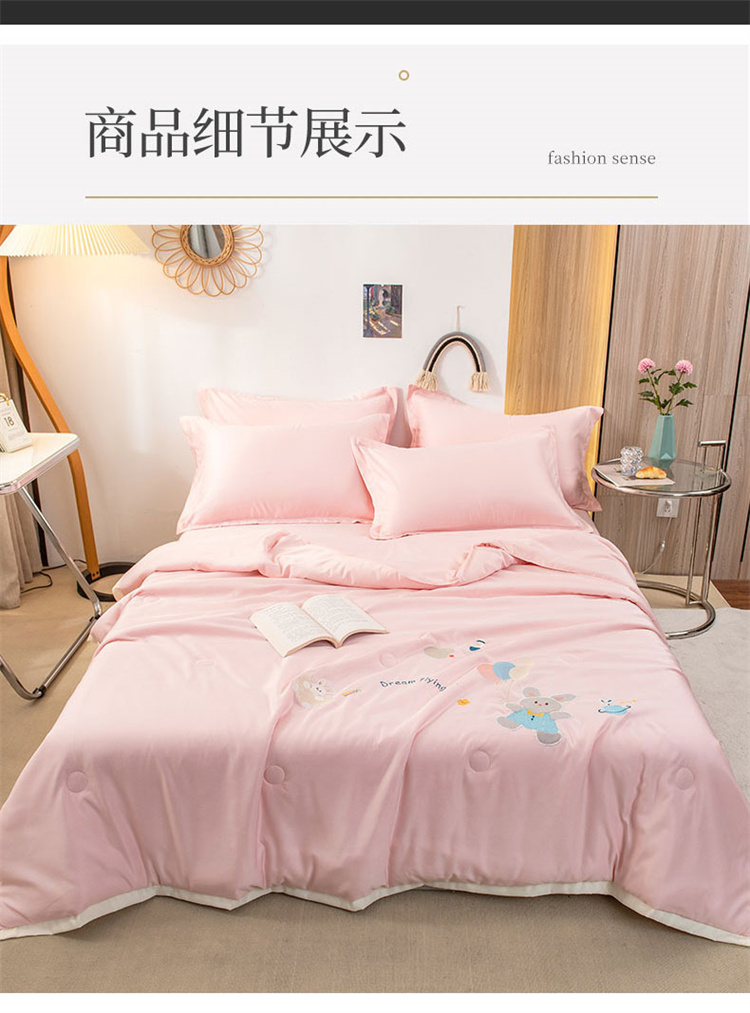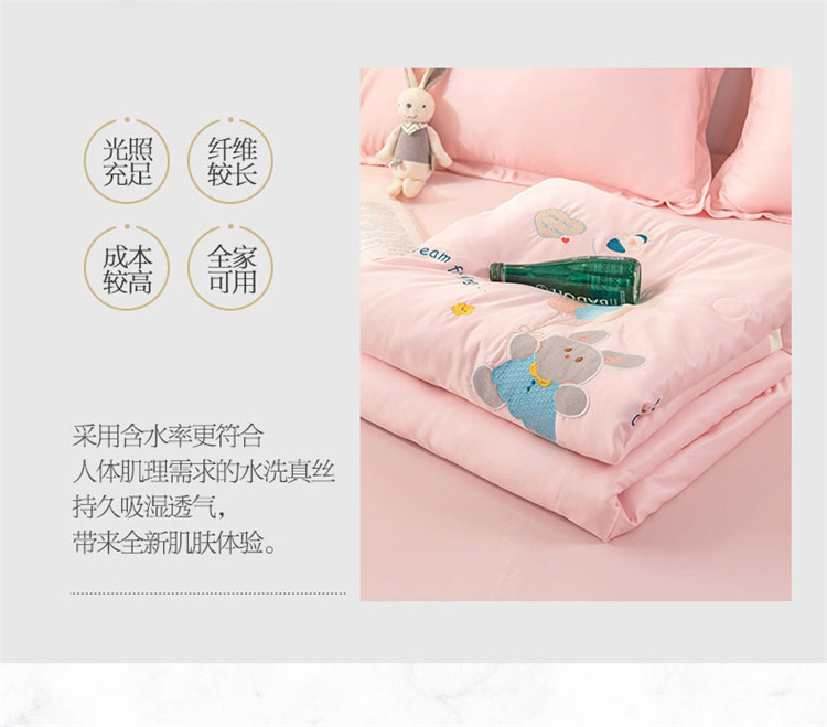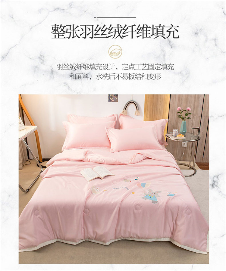 商品名称:芃成家纺 2022新款水洗天丝绣花夏被子被芯 兔子-粉