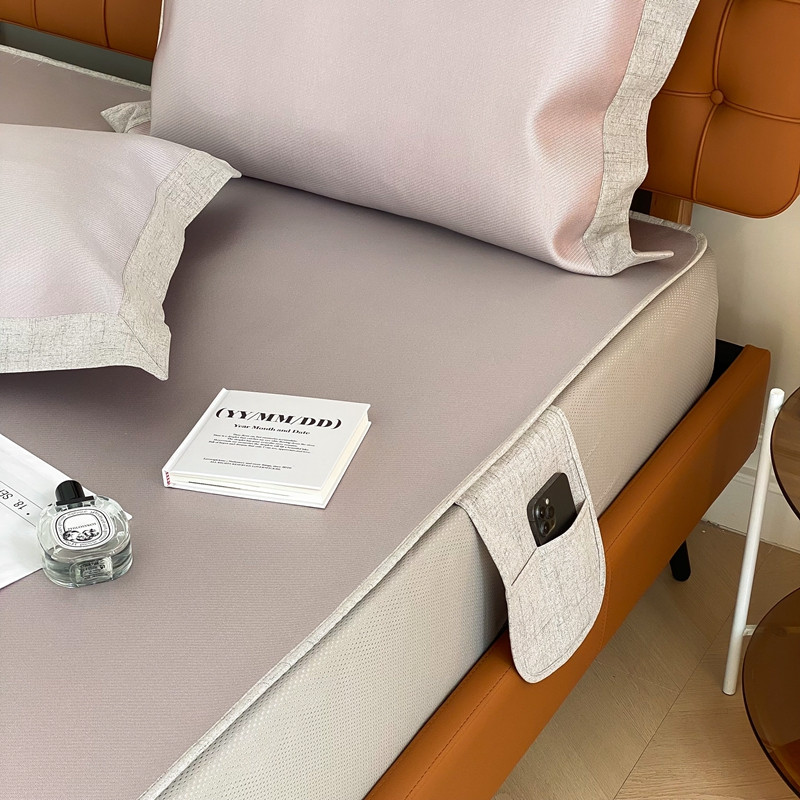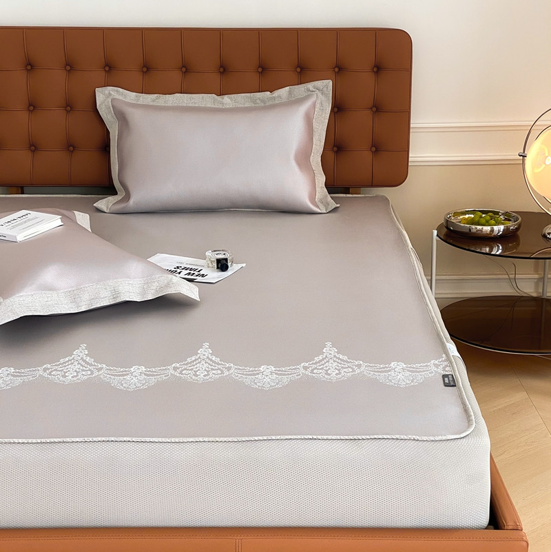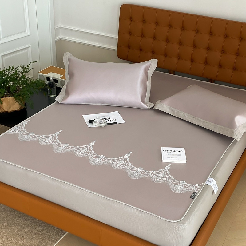 本希 2022新款高端床笠款水洗冰丝席-简约款 蕾丝-粉床笠款