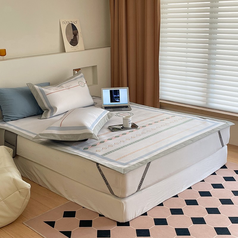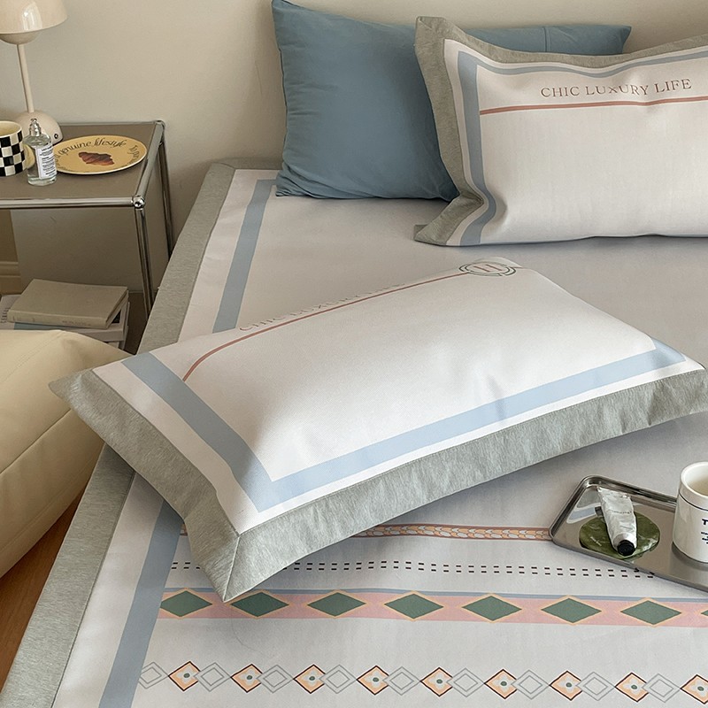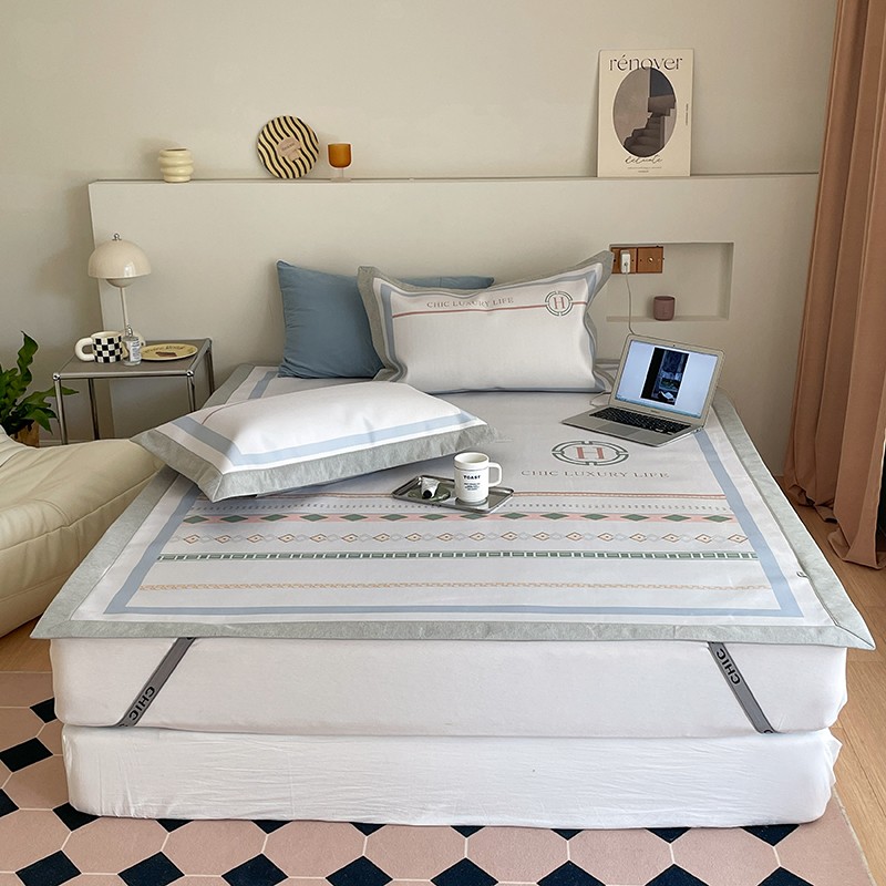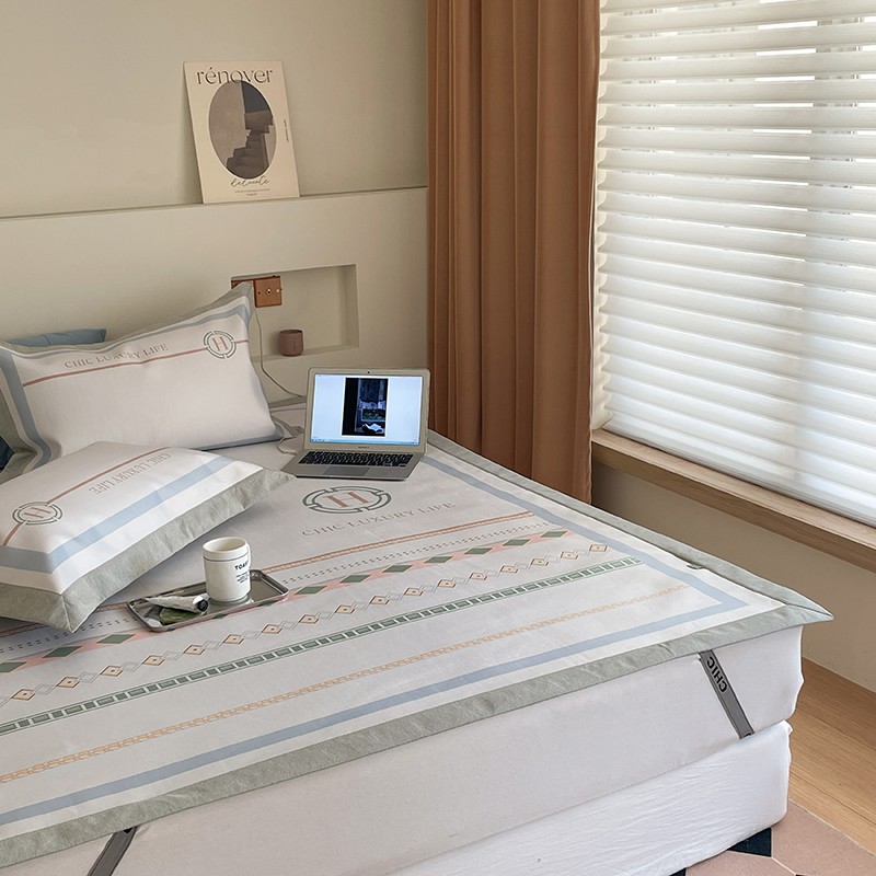(总)昔可 2023新款全棉ins格子混搭系列四件套,ins简约绿格,粉蓝格,开心果格,学院格纹,粉绿格,海盐兰格,黄绿格,夏日蓝条,芝士黄条,紫芋泥芝士格