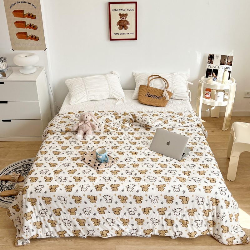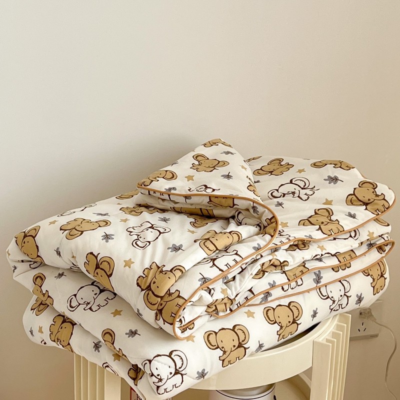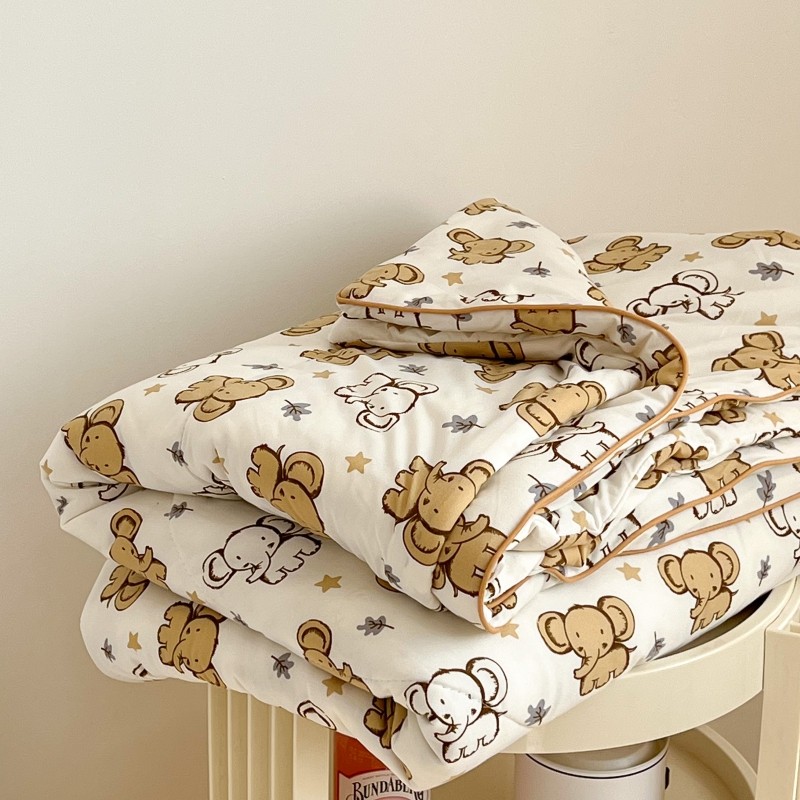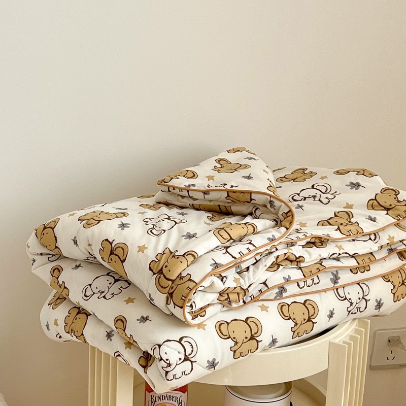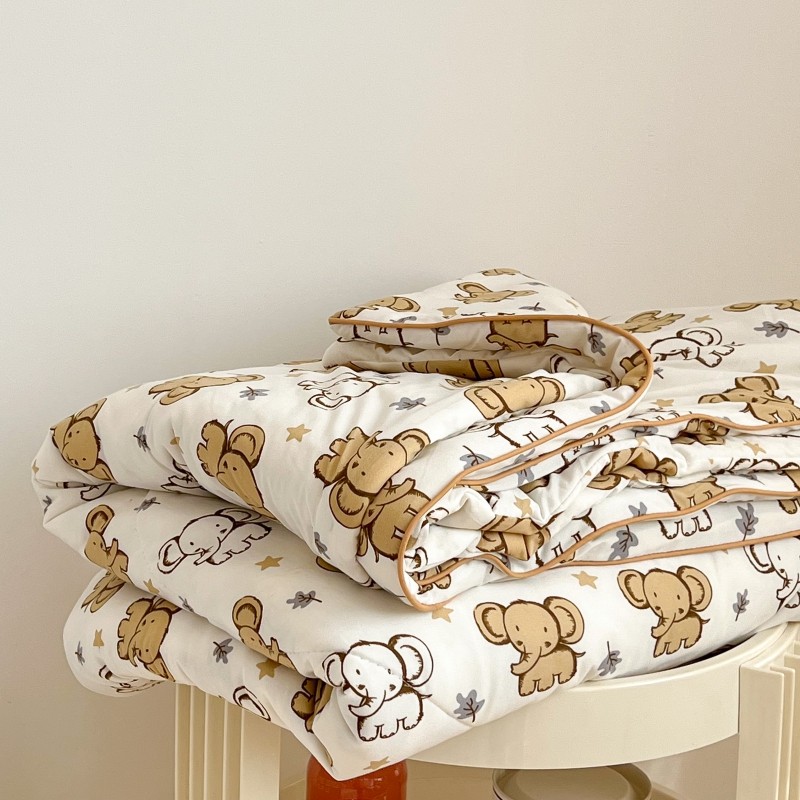 昔可 2022新款卡通印花牛奶丝针织夏被 小象