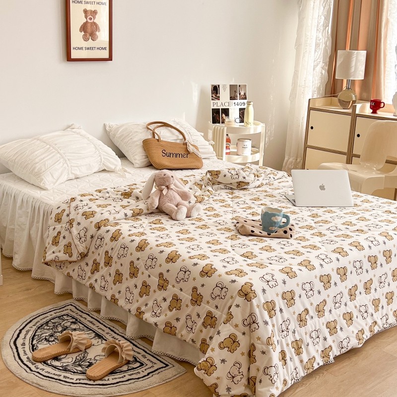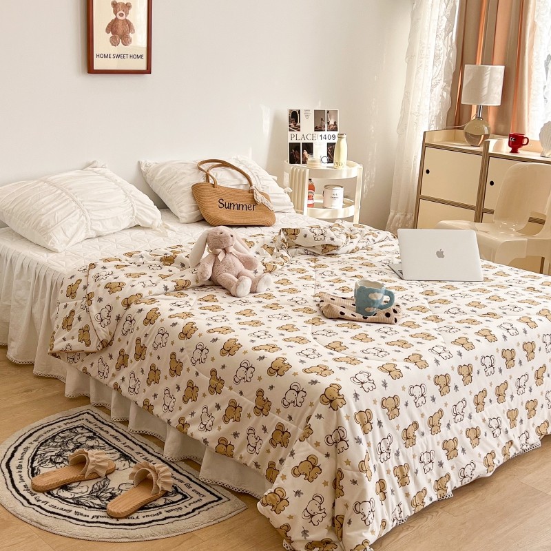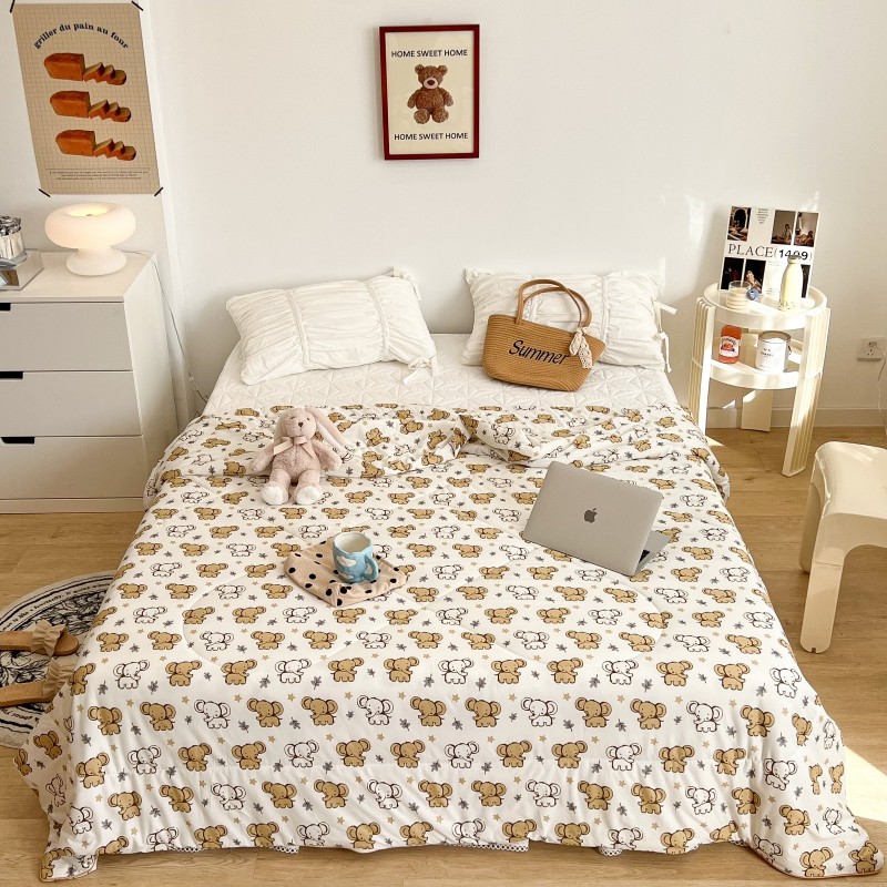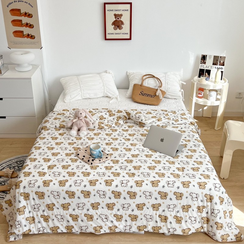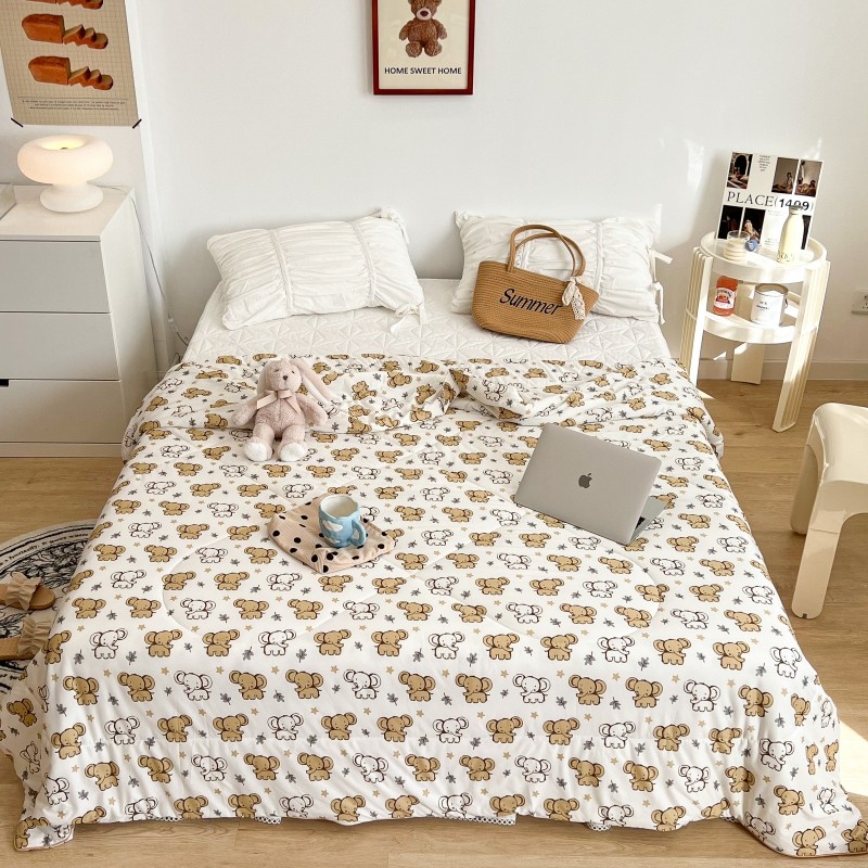 昔可 2022新款卡通印花牛奶丝针织夏被 小象