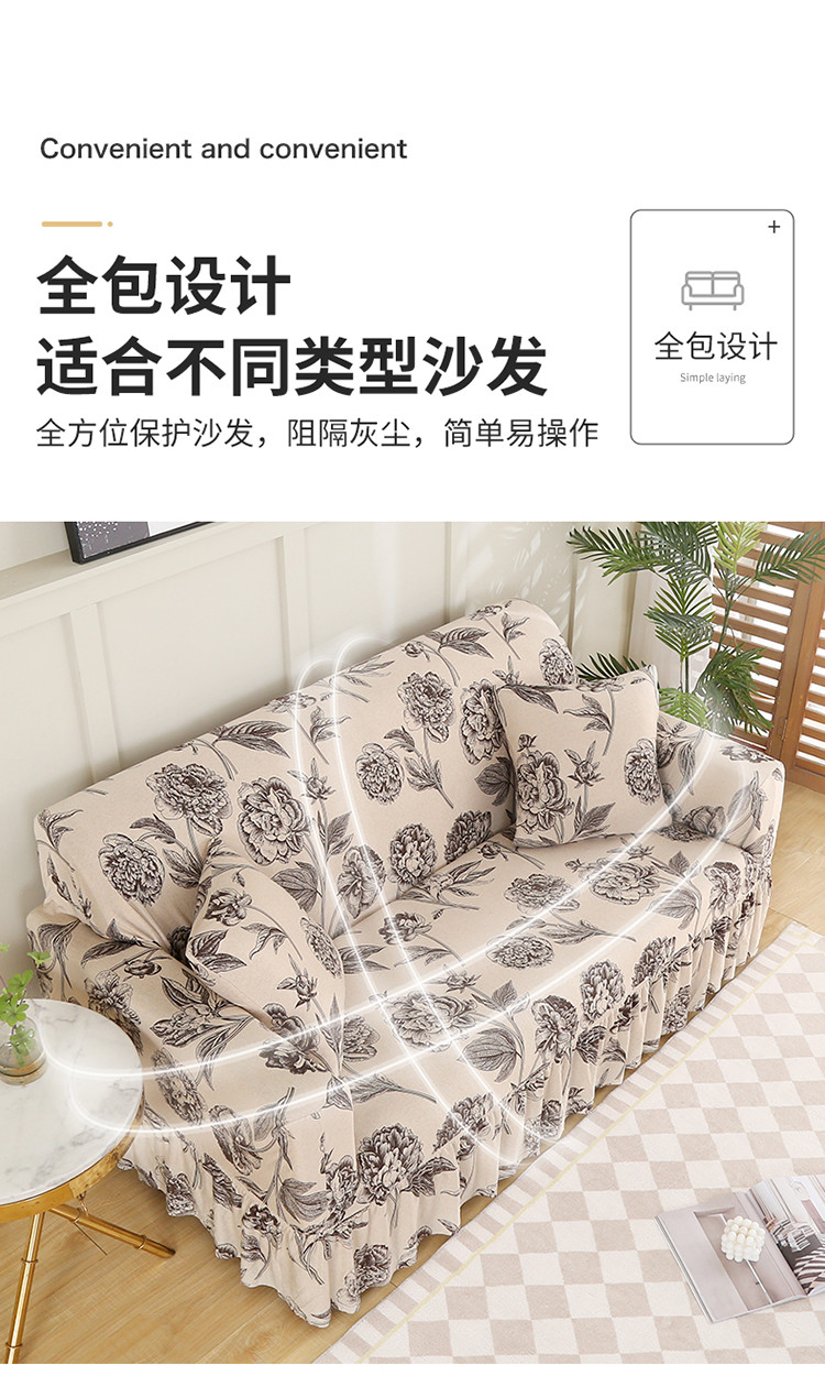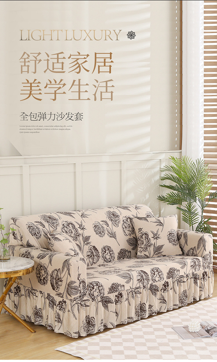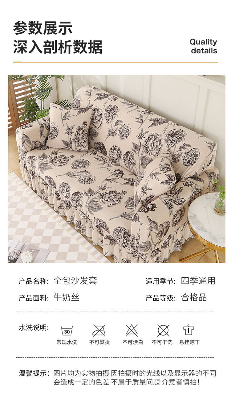 雅竹家纺 牛奶丝全包沙发套裙边款 赫本风