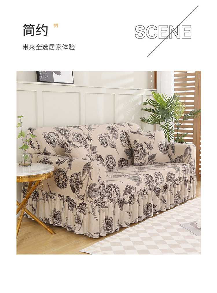商品名称:雅竹家纺 牛奶丝全包沙发套裙边款 赫本风
