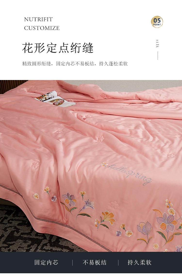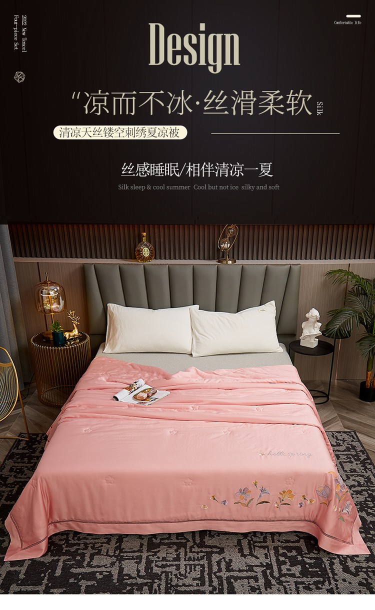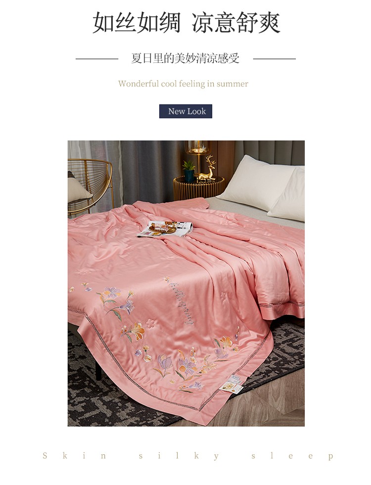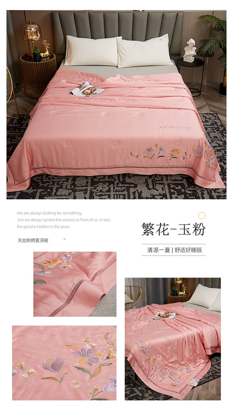 商品名称:暖阳 2023新款天丝镂空刺绣夏凉被 繁花-玉粉
