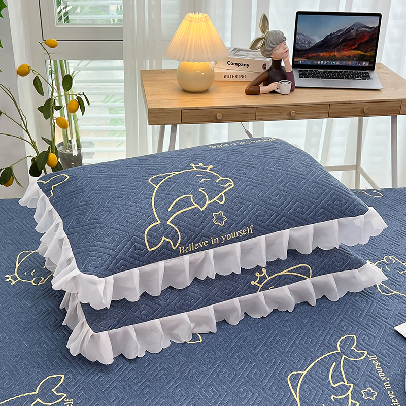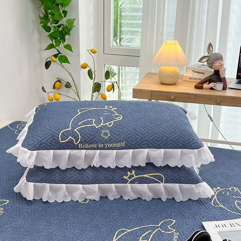 新款四季通用夹棉枕套一对 海豚湾