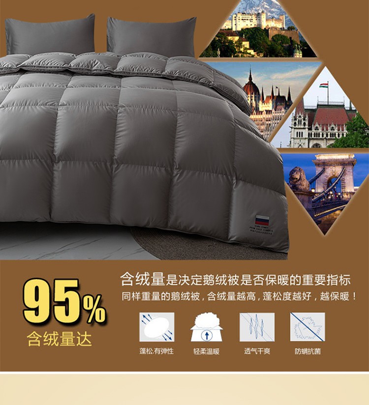 新款95%优质白鹅绒全棉羽绒被子母被,灰色,本白,浅灰,浅驼,香芋