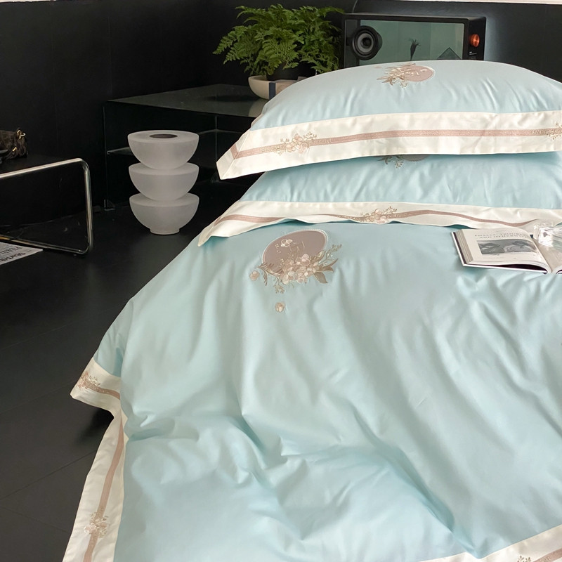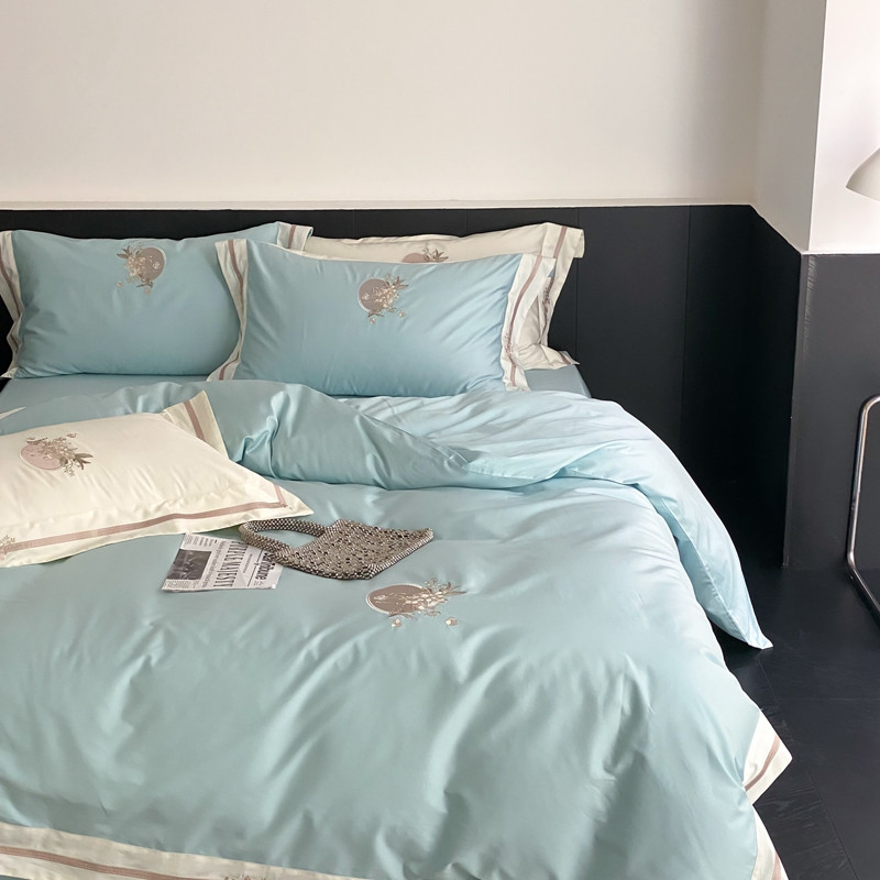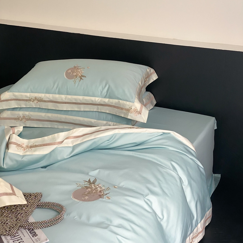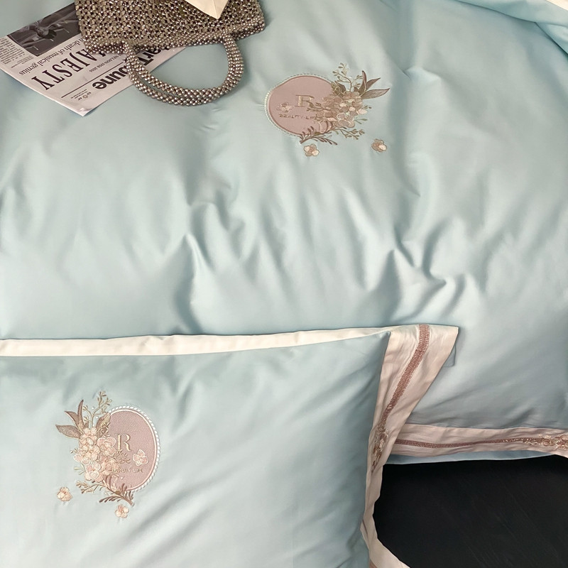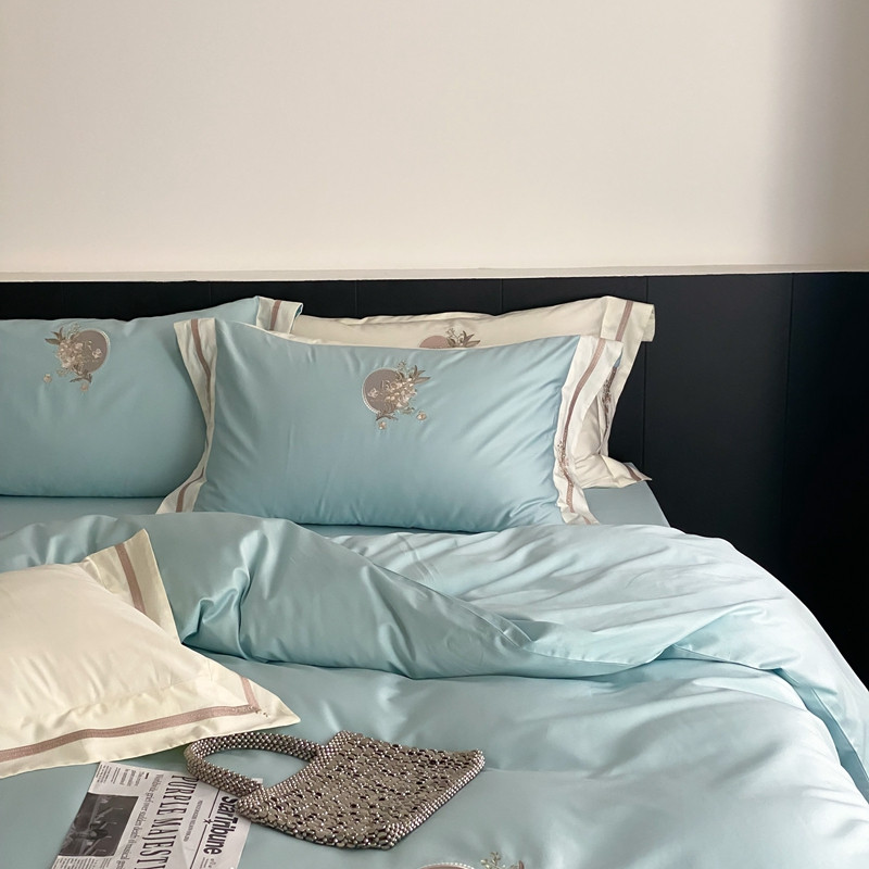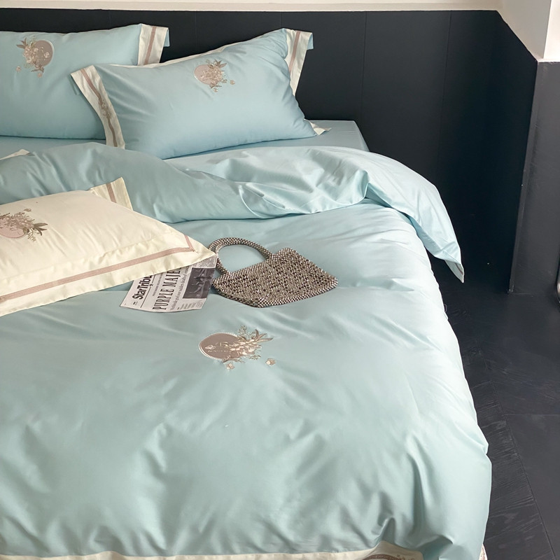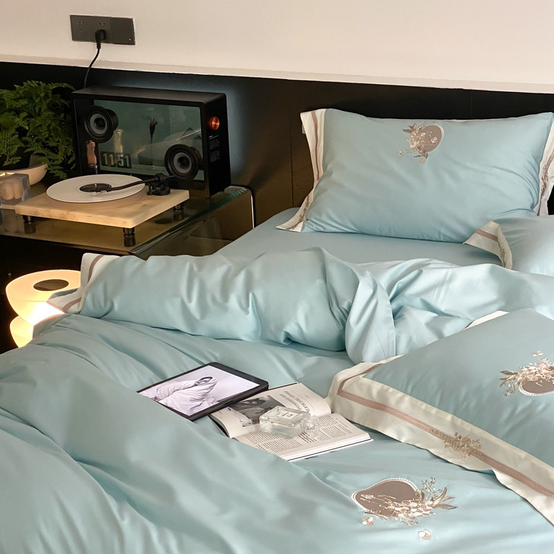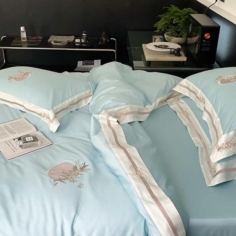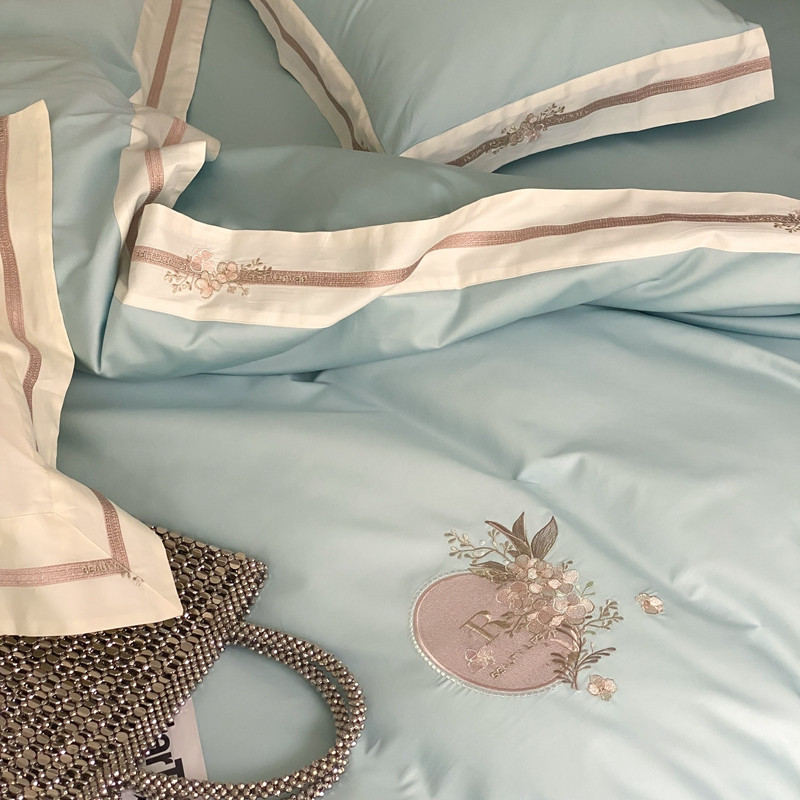 馨蕊 2022秋冬新品100支高定全棉刺绣四件套-蜜恋 蜜恋-湖水蓝