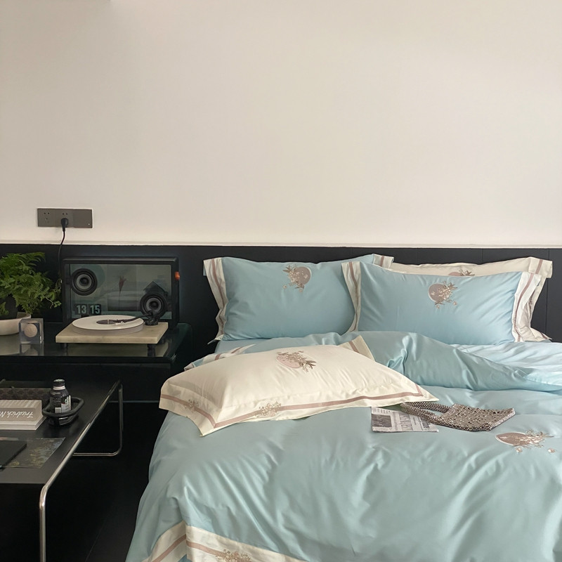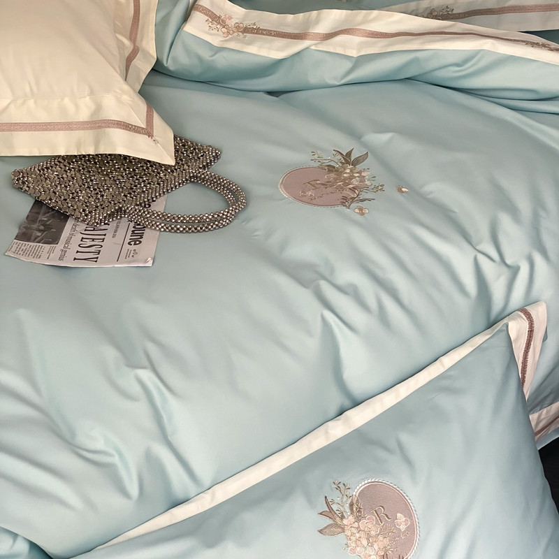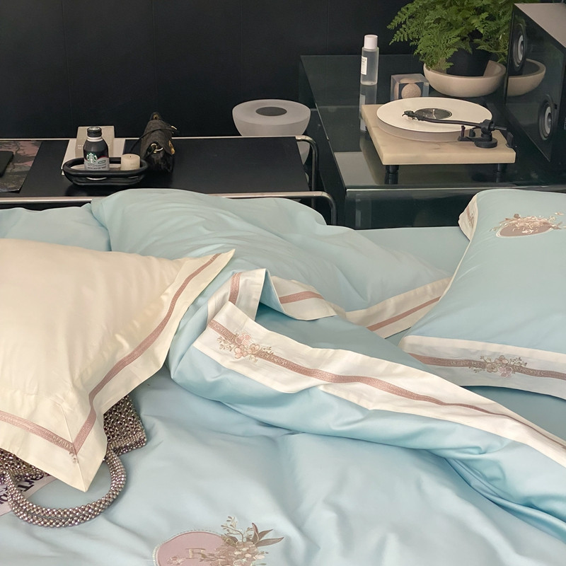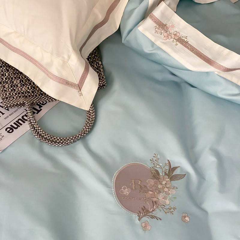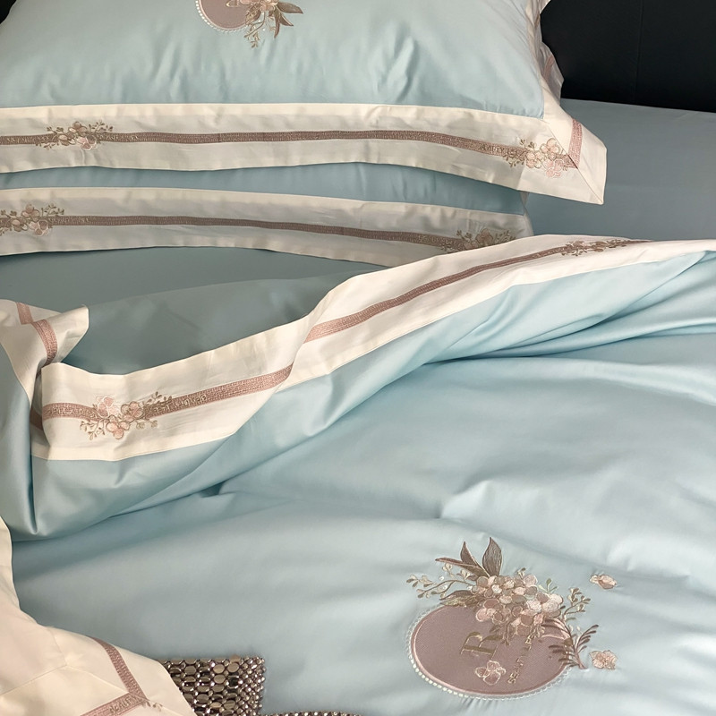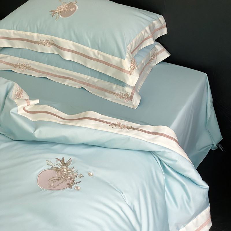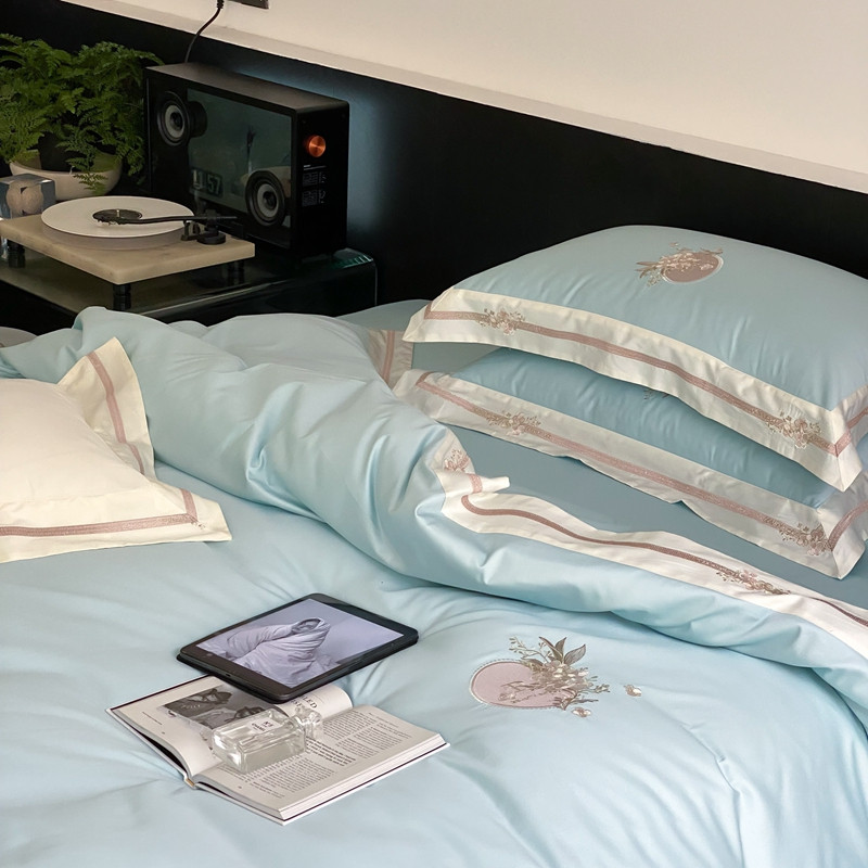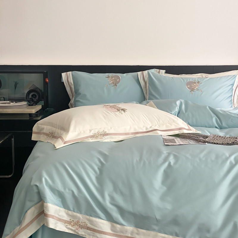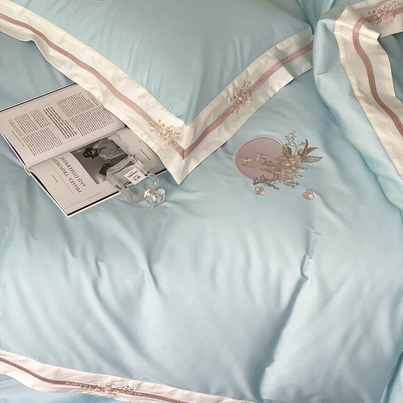 馨蕊 2022秋冬新品100支高定全棉刺绣四件套-蜜恋 蜜恋-湖水蓝
