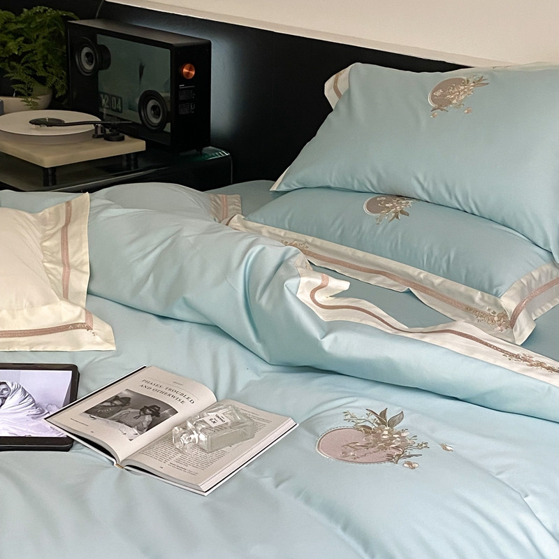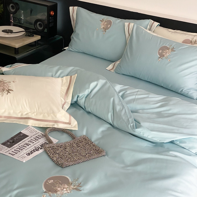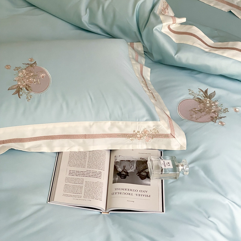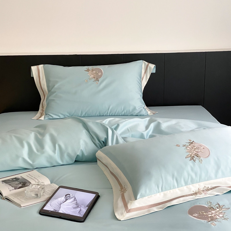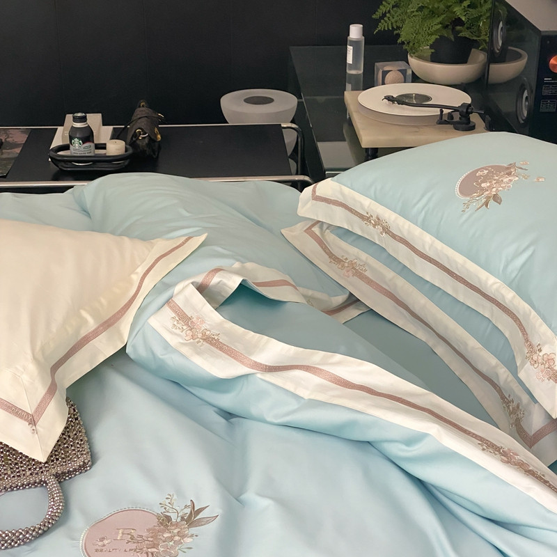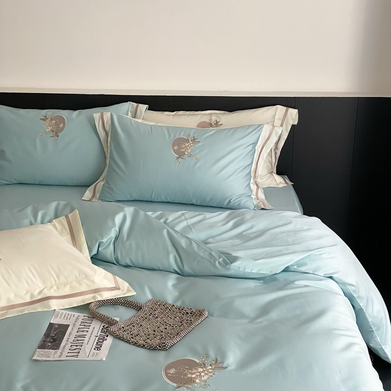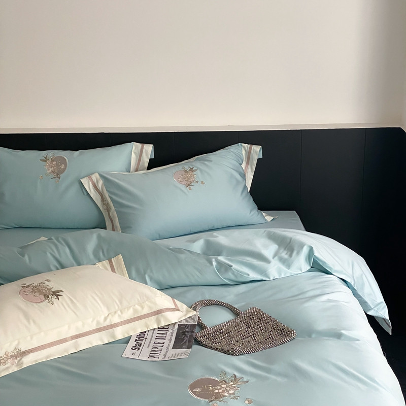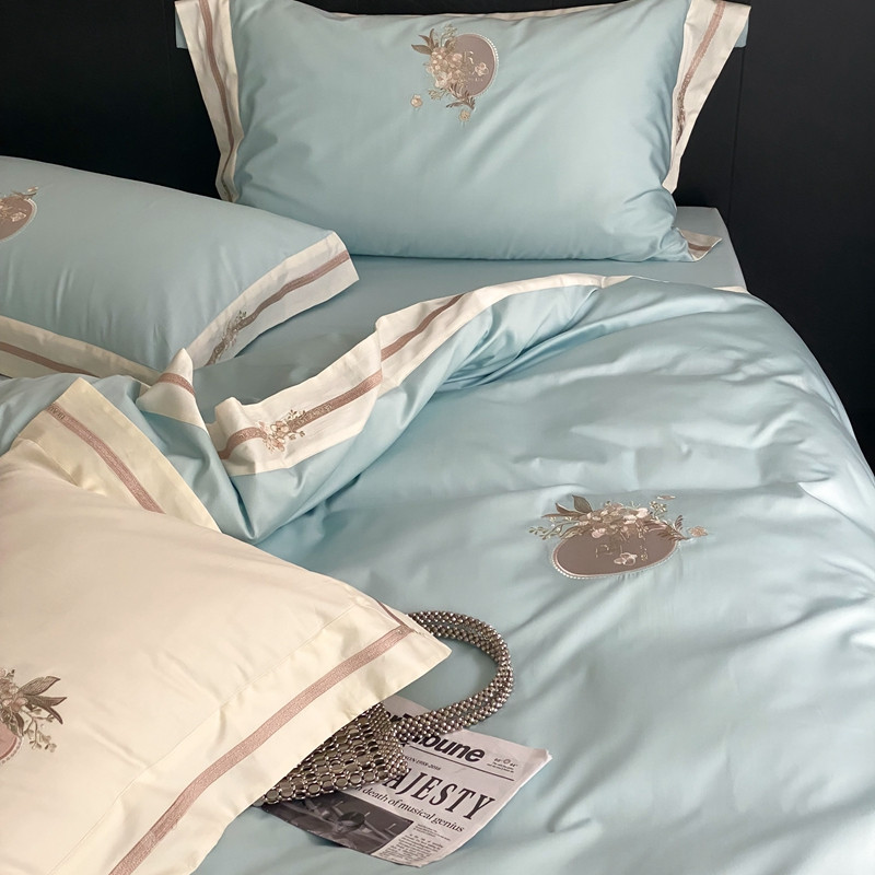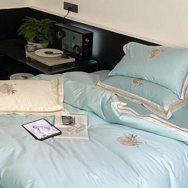 馨蕊 2022秋冬新品100支高定全棉刺绣四件套-蜜恋 蜜恋-湖水蓝