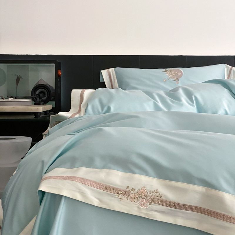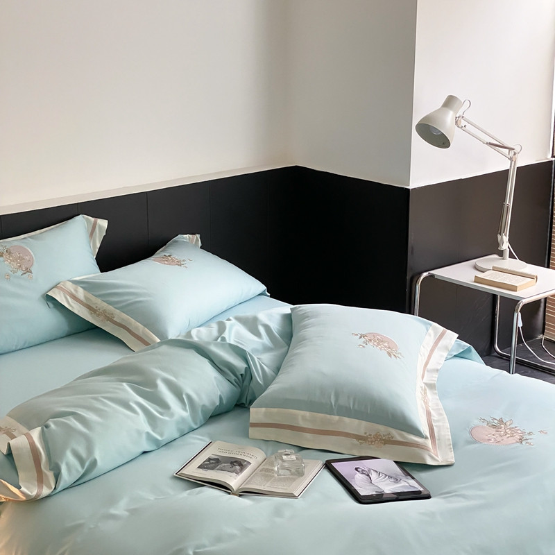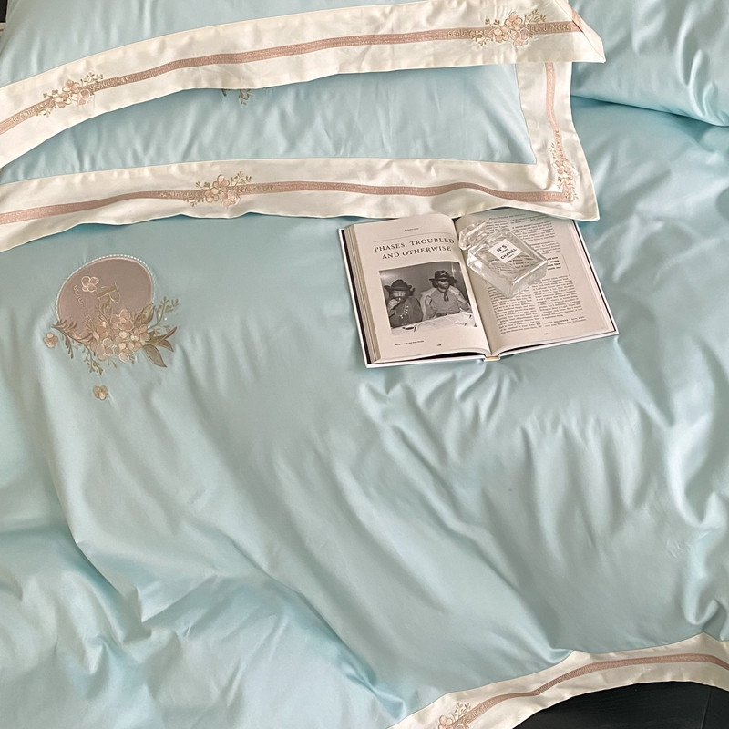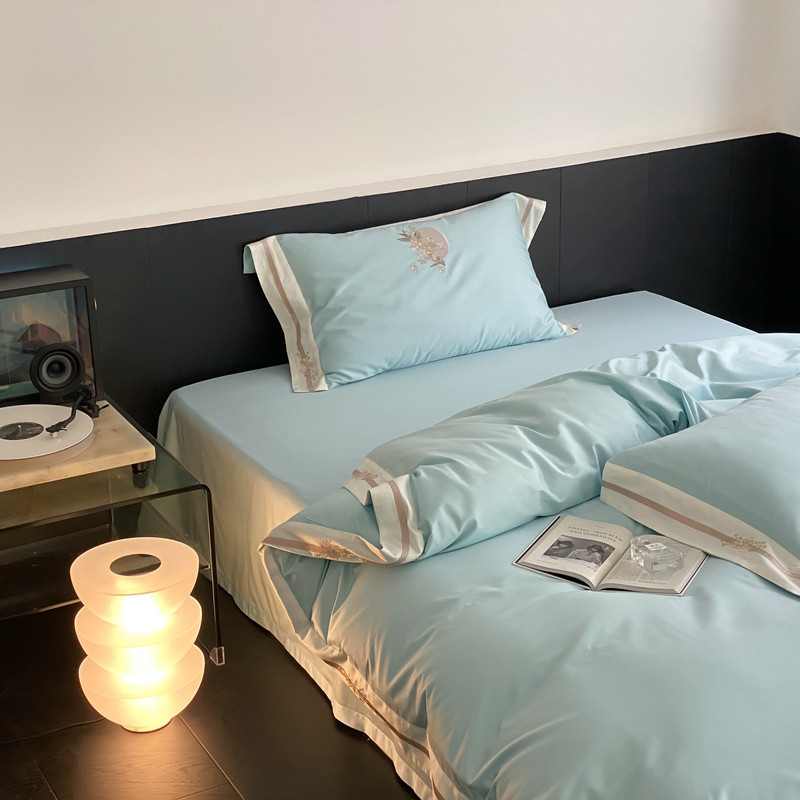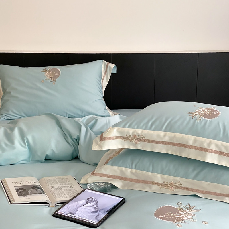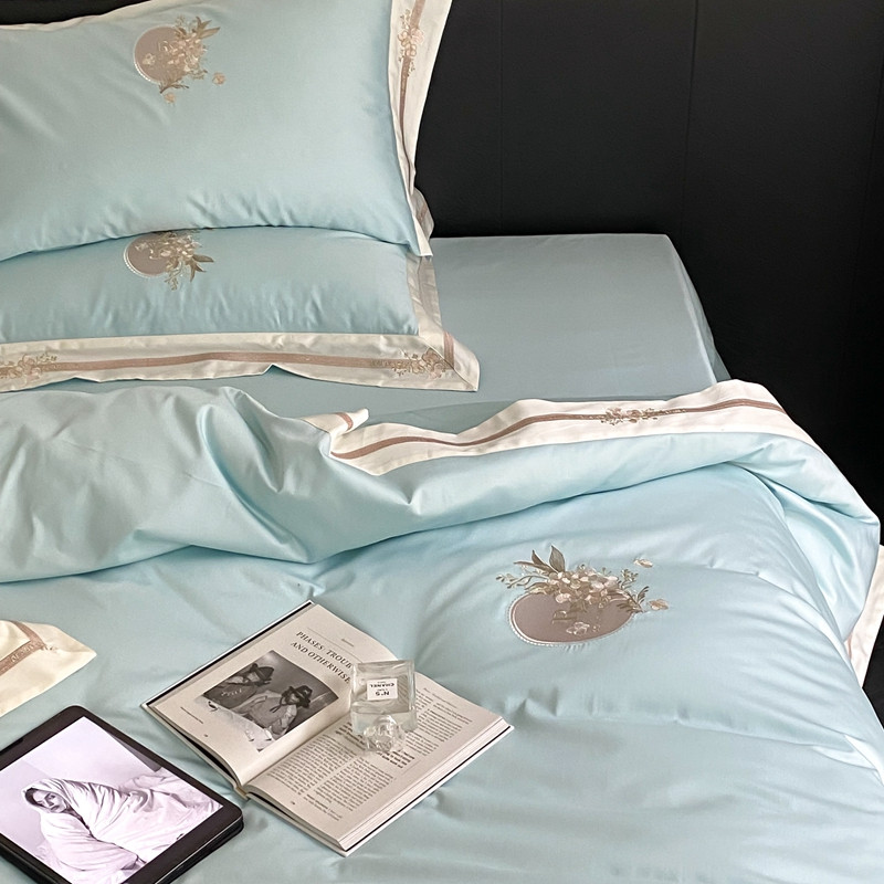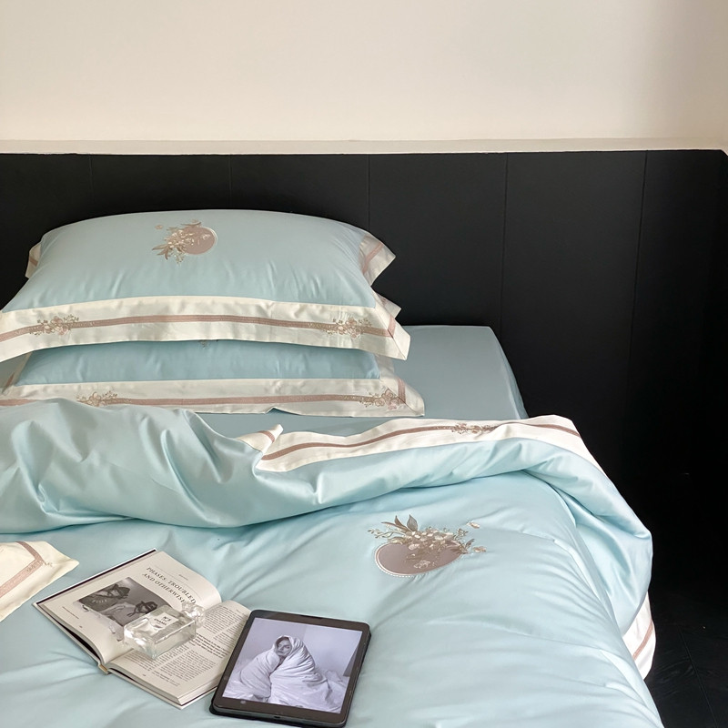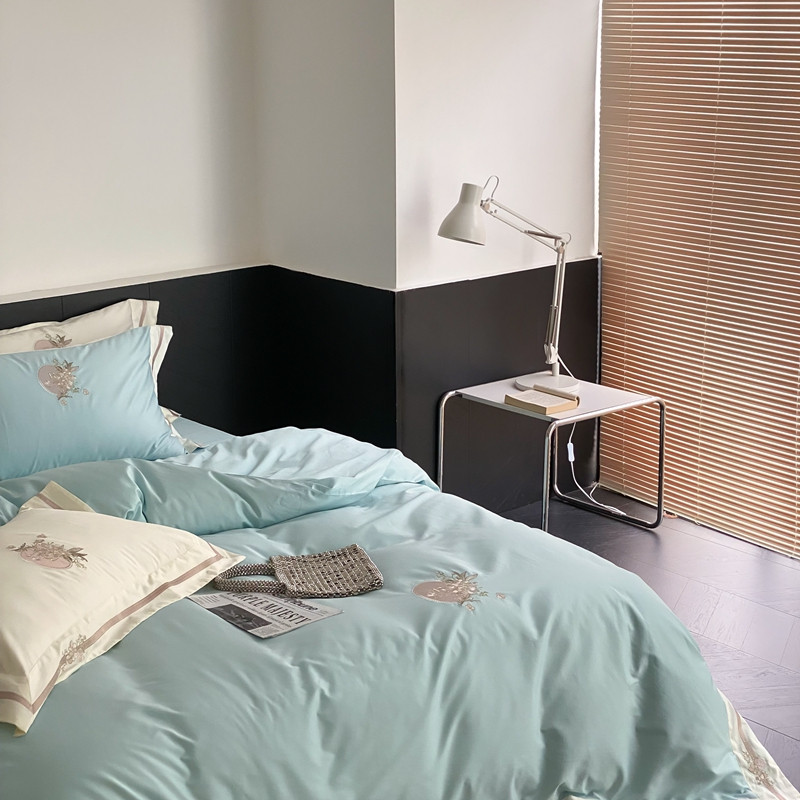 馨蕊 2022秋冬新品100支高定全棉刺绣四件套-蜜恋 蜜恋-湖水蓝