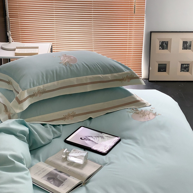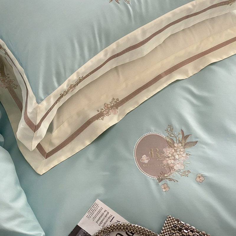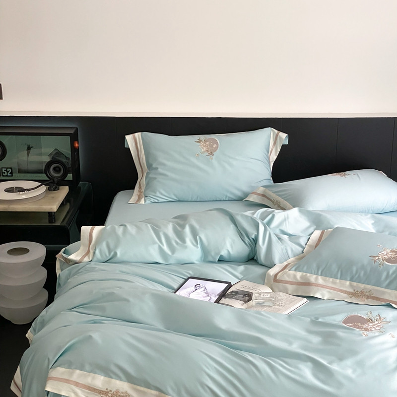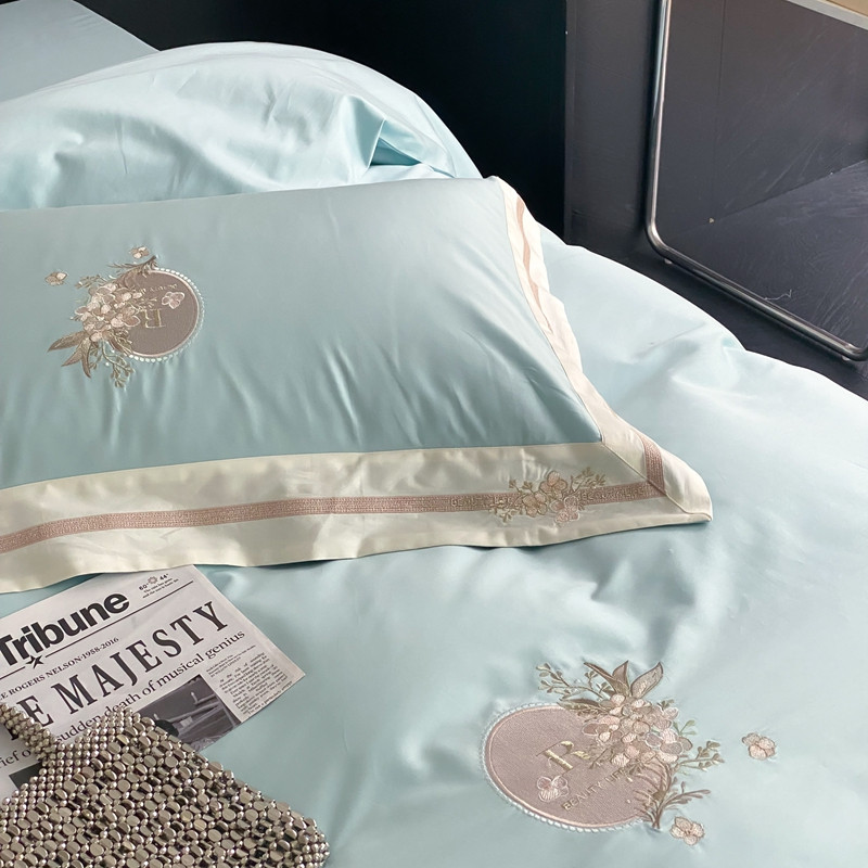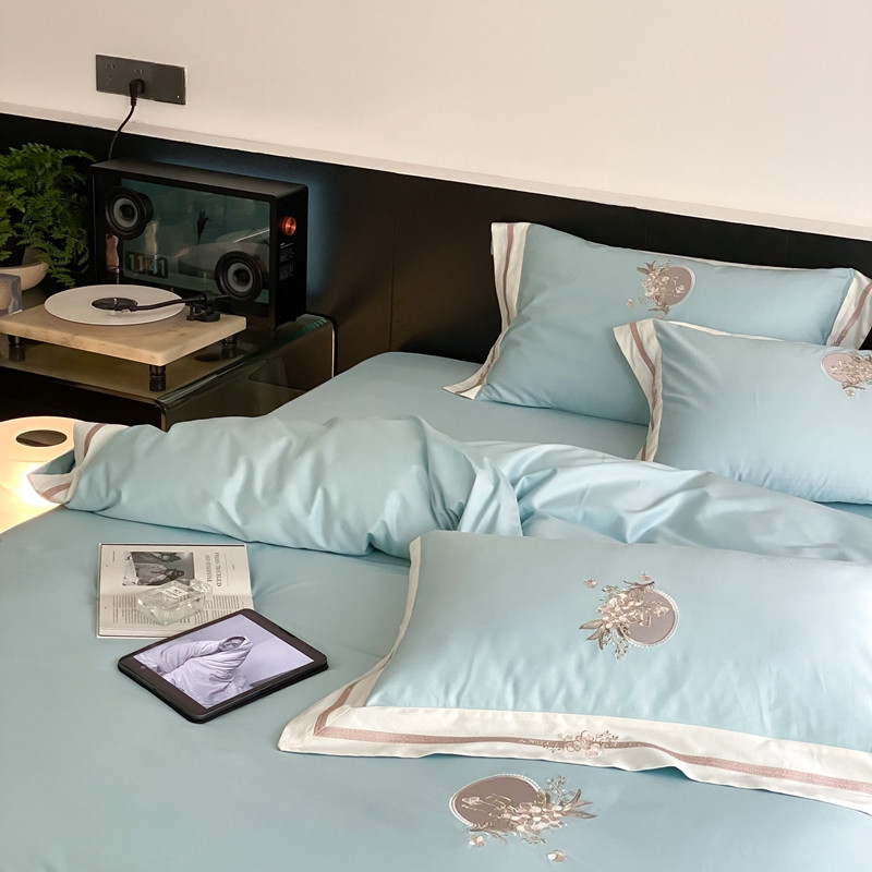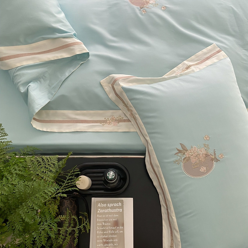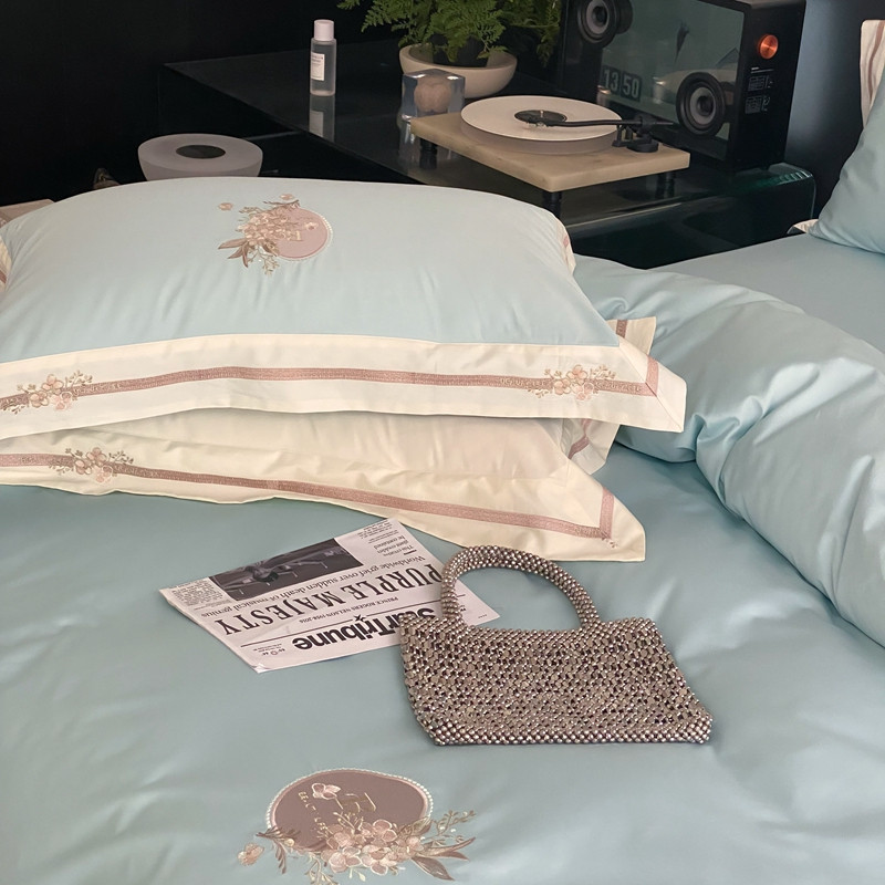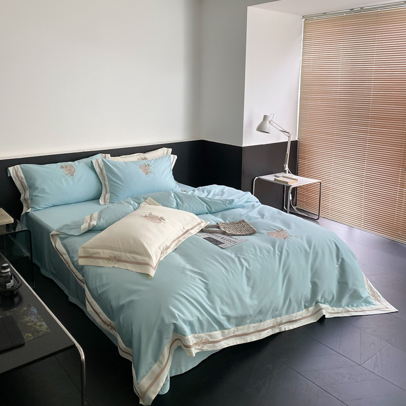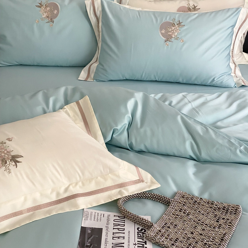 馨蕊 2022秋冬新品100支高定全棉刺绣四件套-蜜恋 蜜恋-湖水蓝