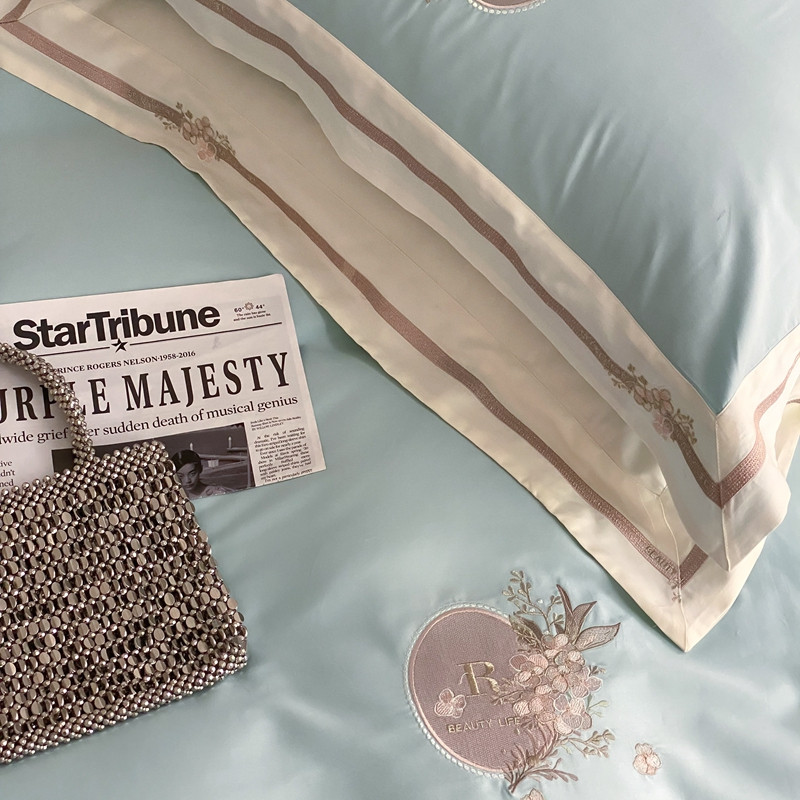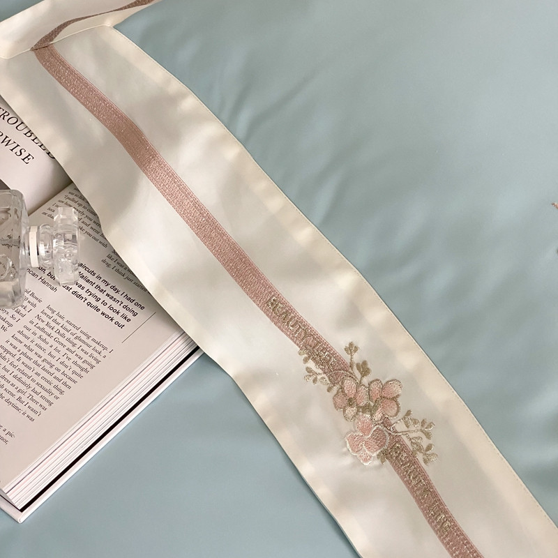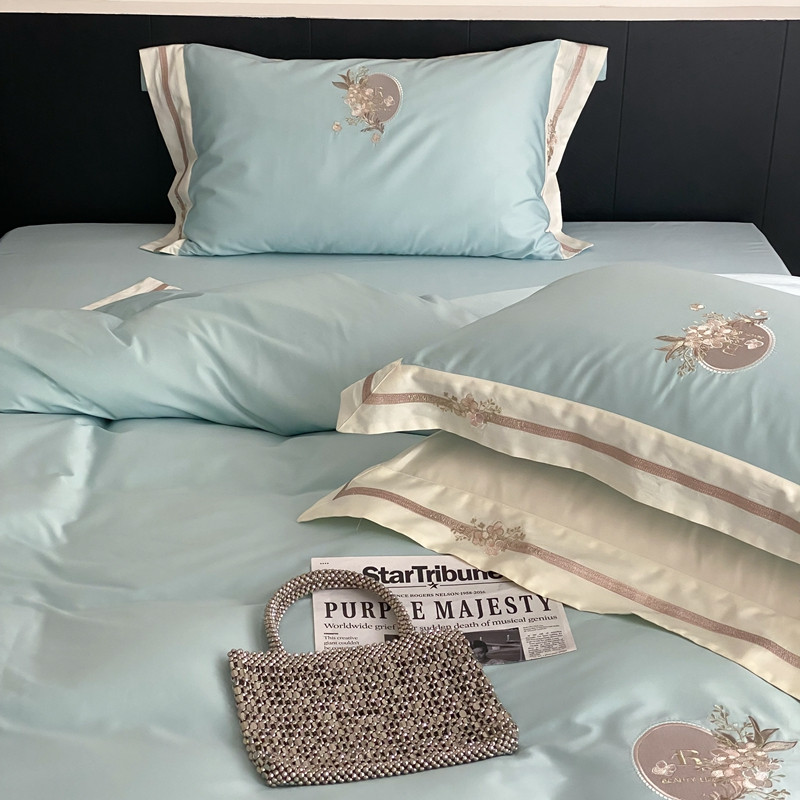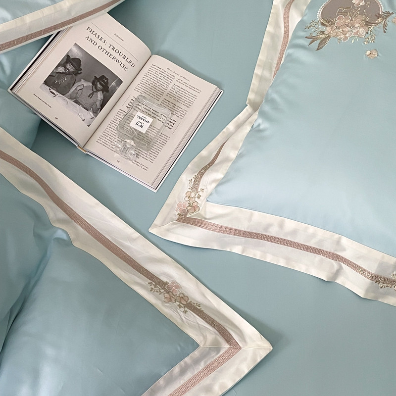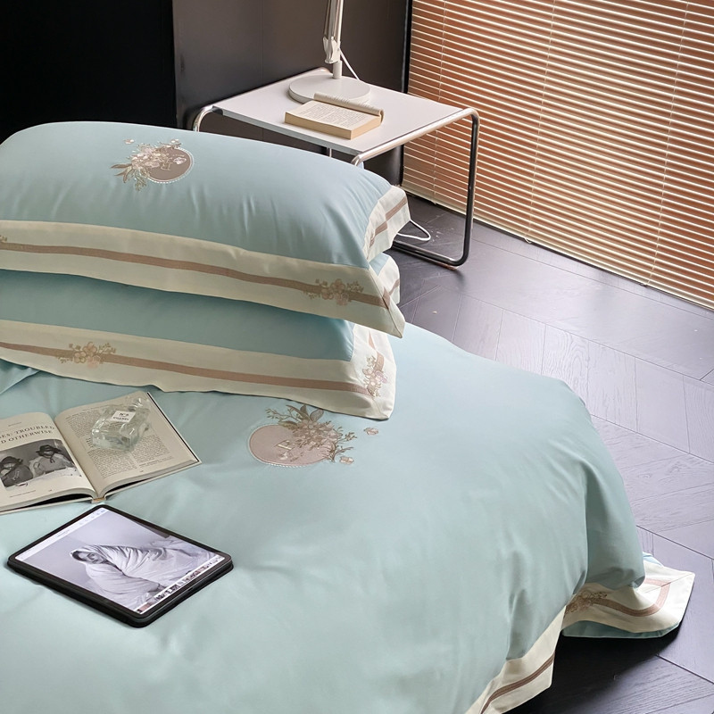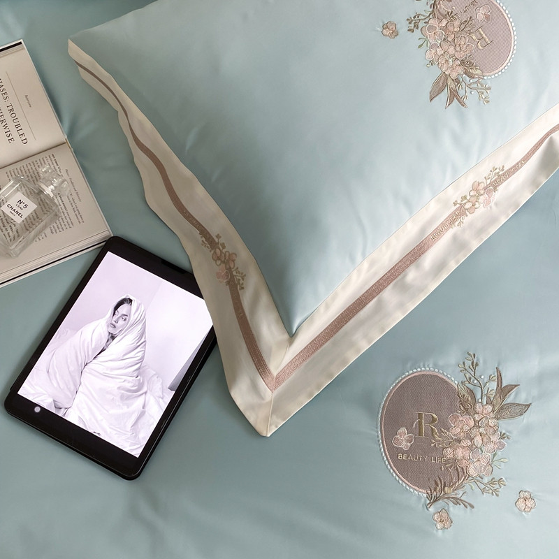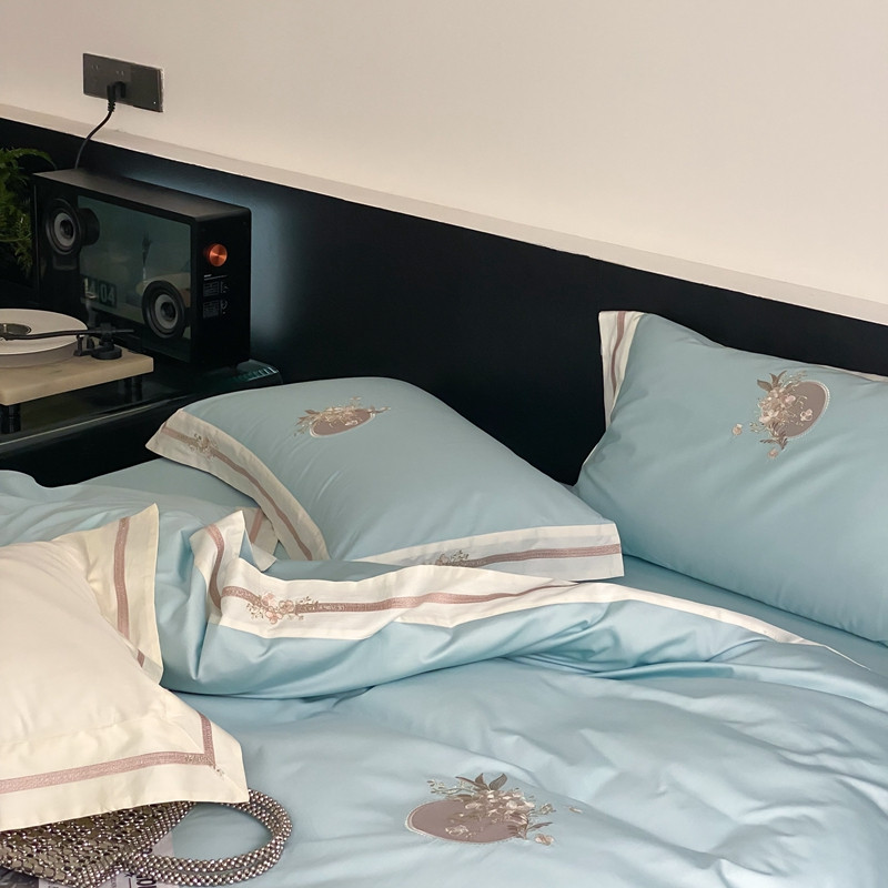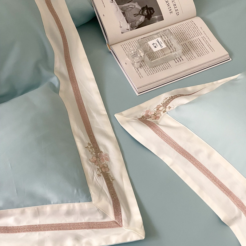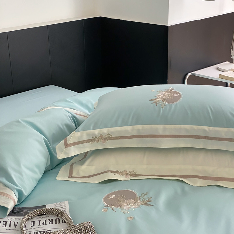 馨蕊 2022秋冬新品100支高定全棉刺绣四件套-蜜恋 蜜恋-湖水蓝