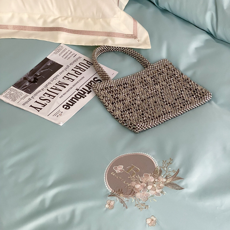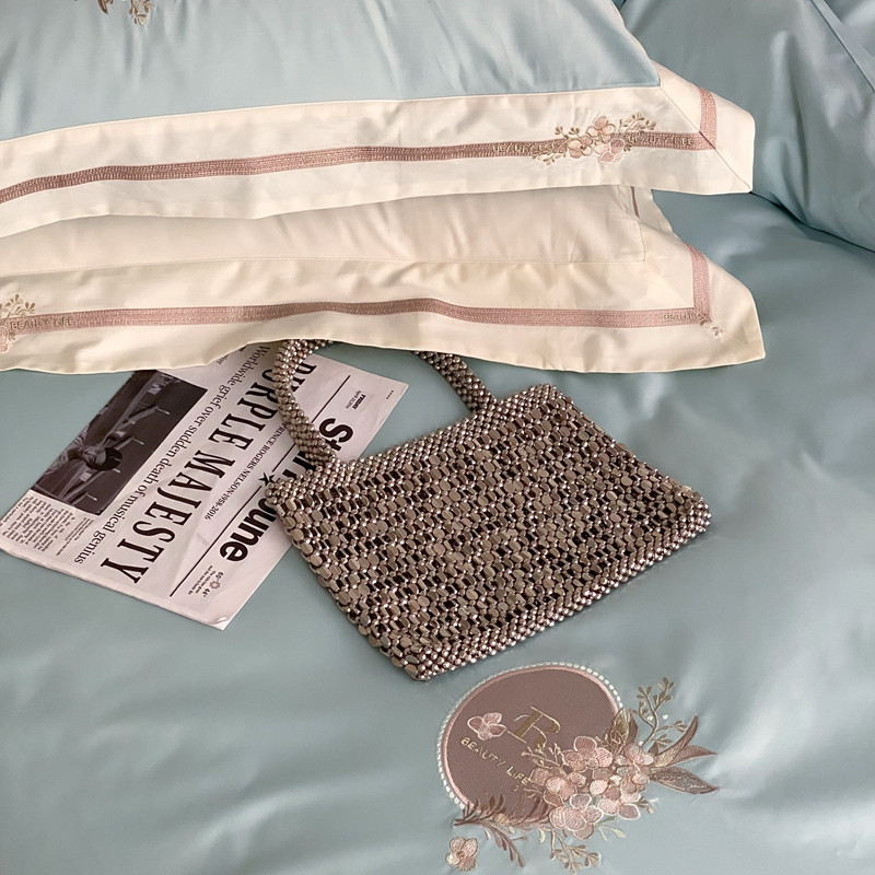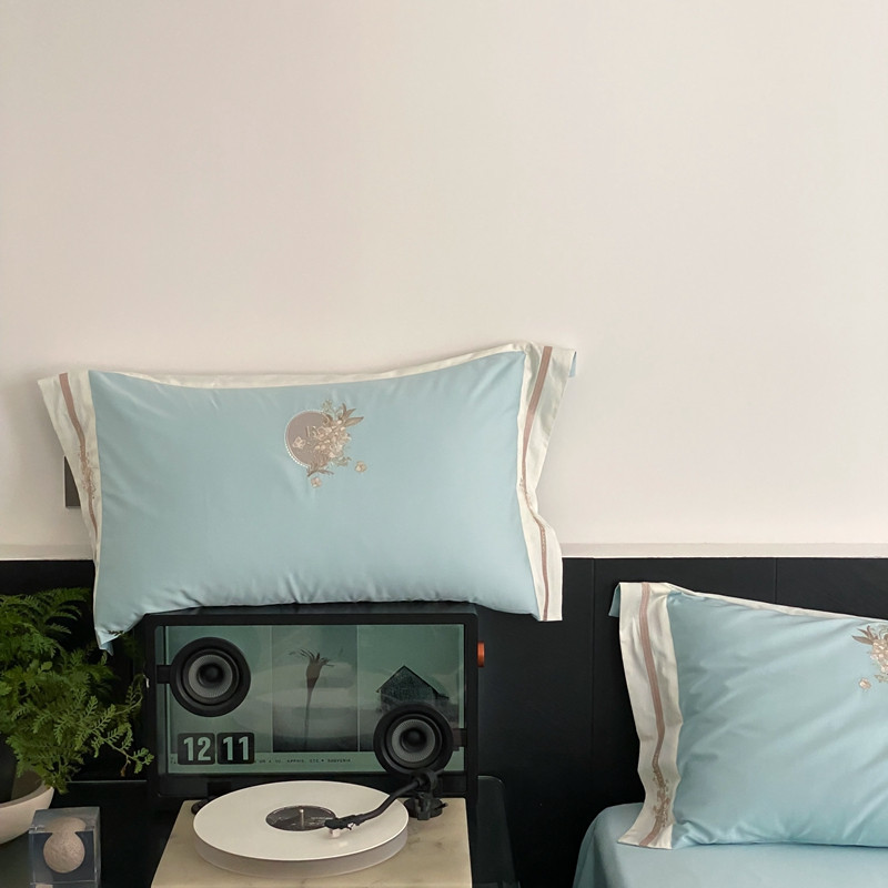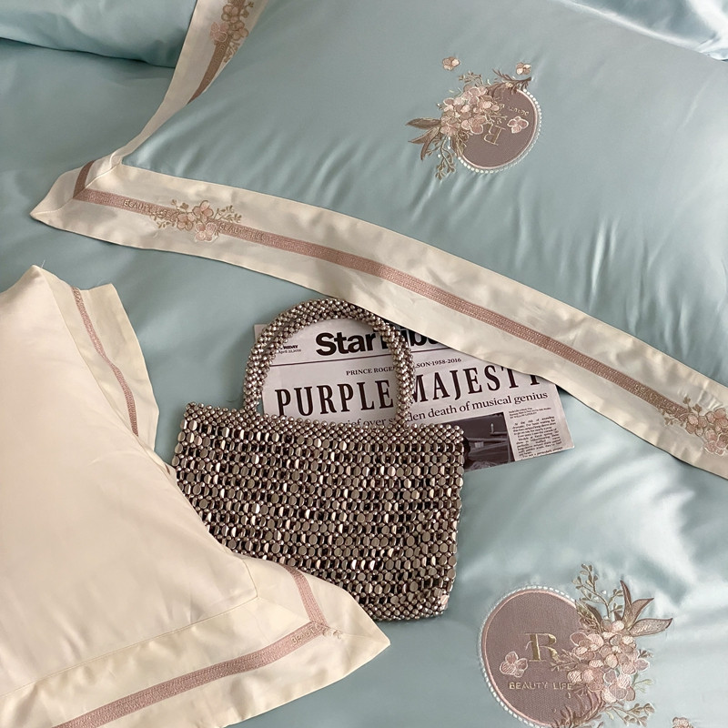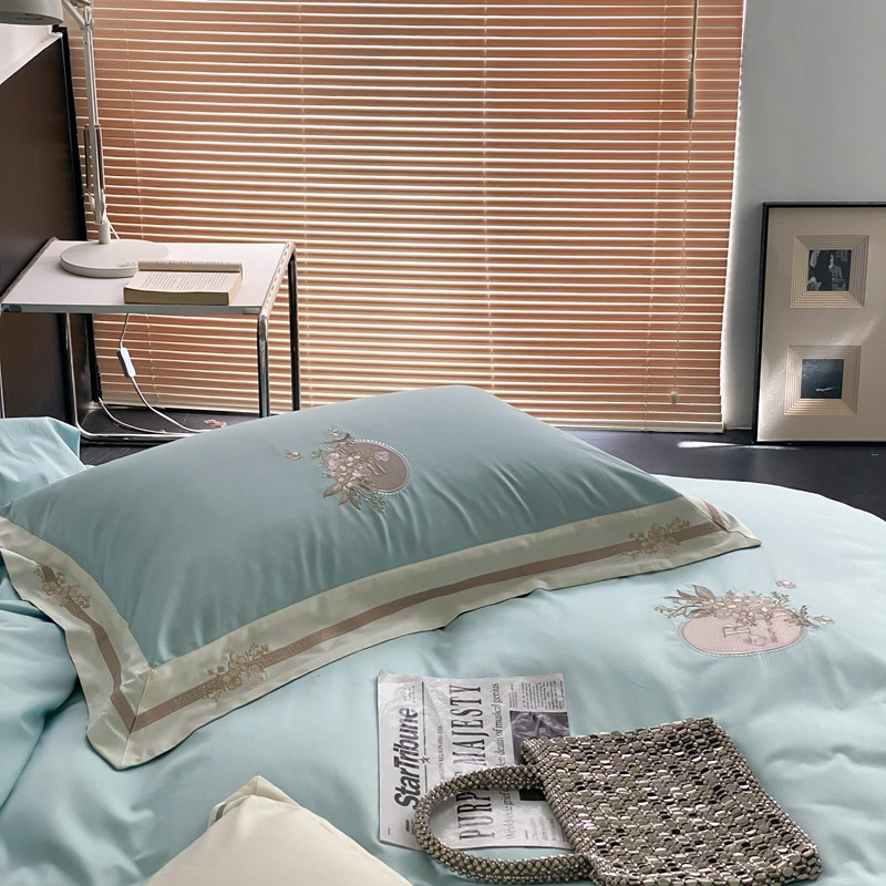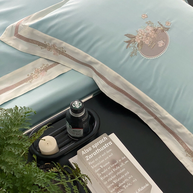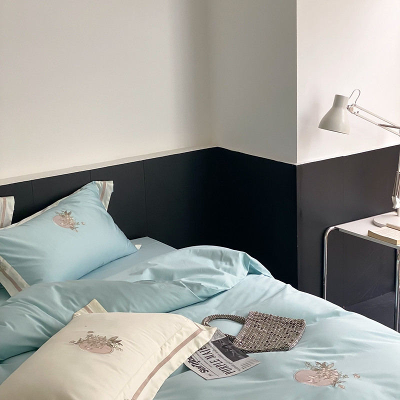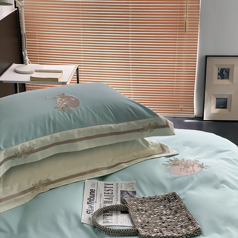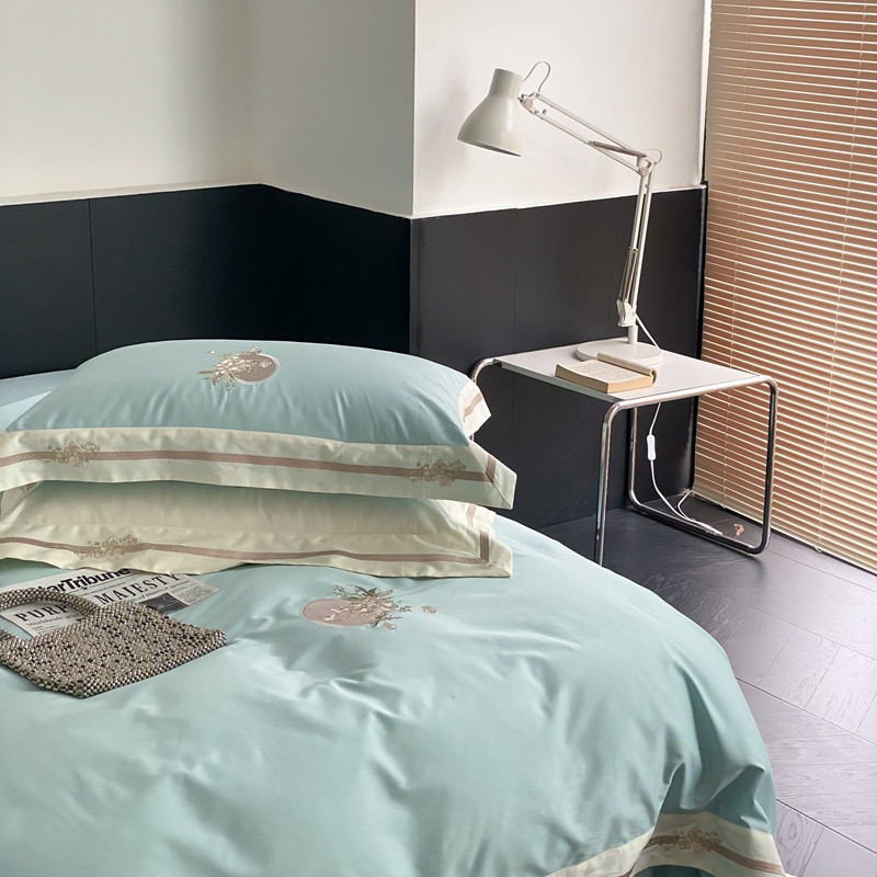 馨蕊 2022秋冬新品100支高定全棉刺绣四件套-蜜恋 蜜恋-湖水蓝