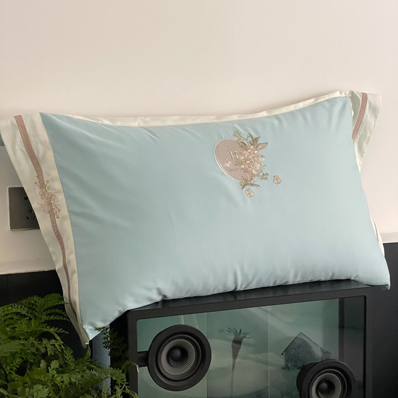 商品名称:馨蕊 2022秋冬新品100支高定全棉刺绣四件套-蜜恋 蜜恋-湖水蓝