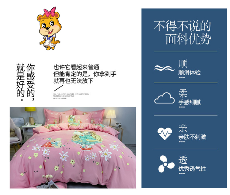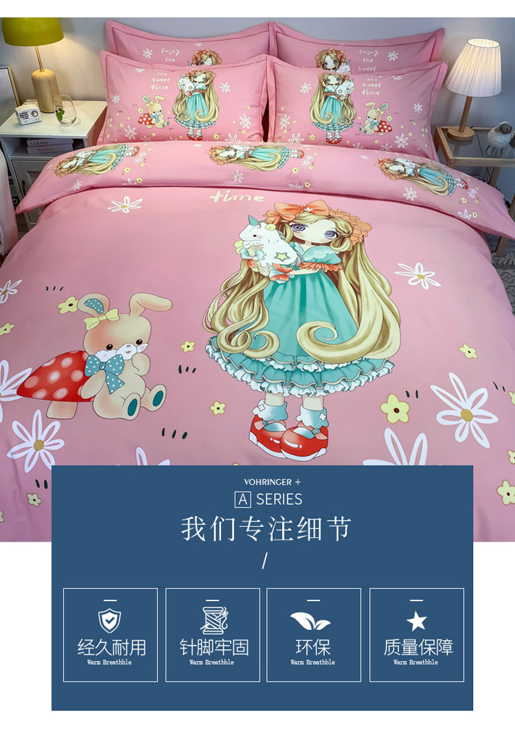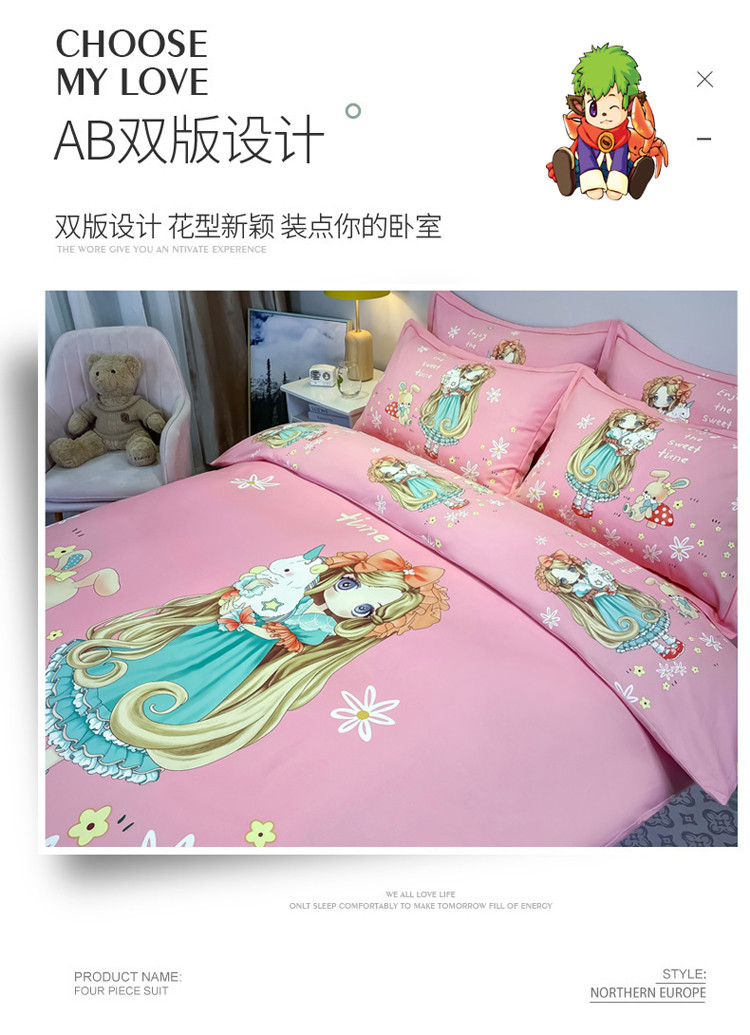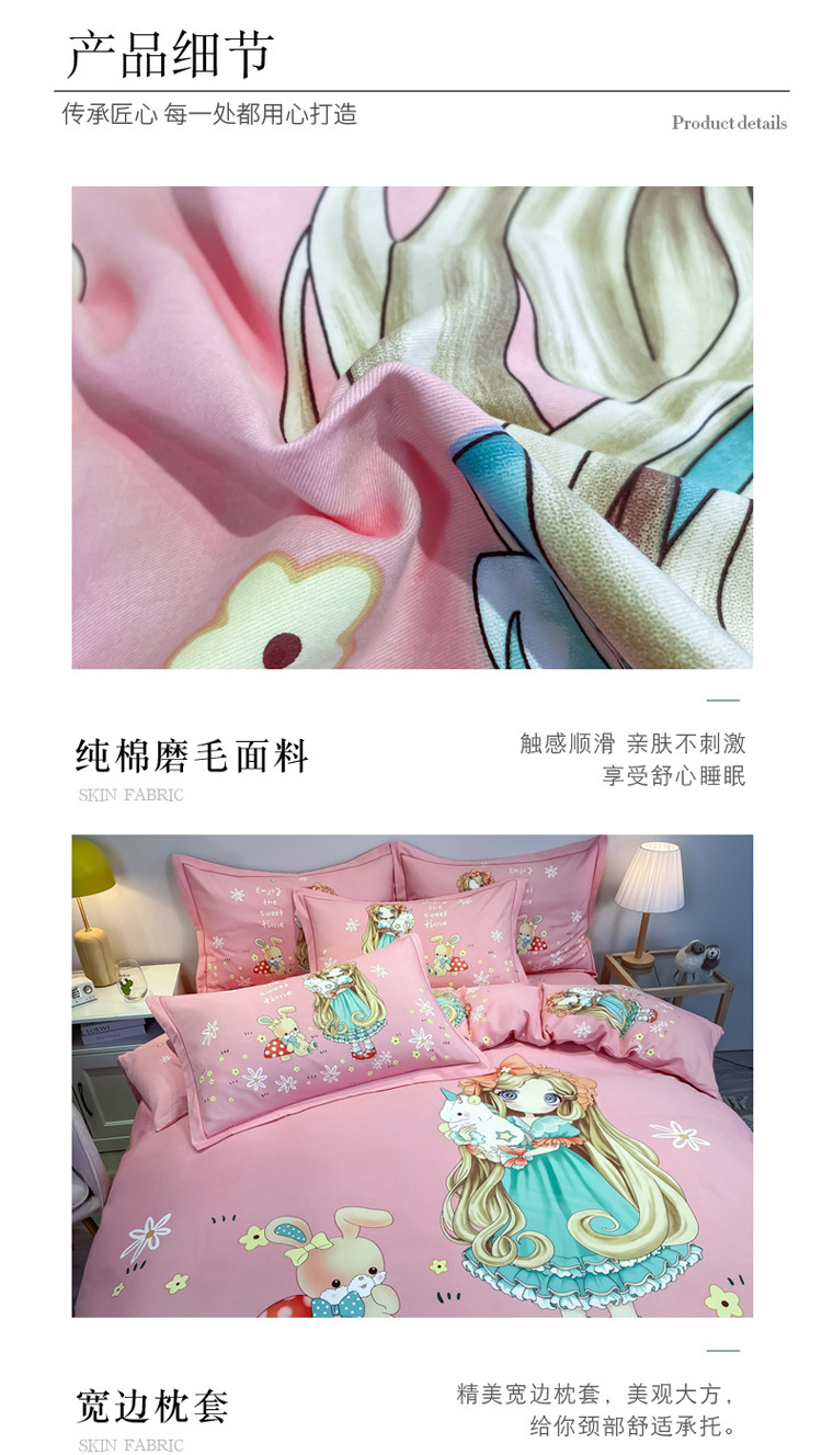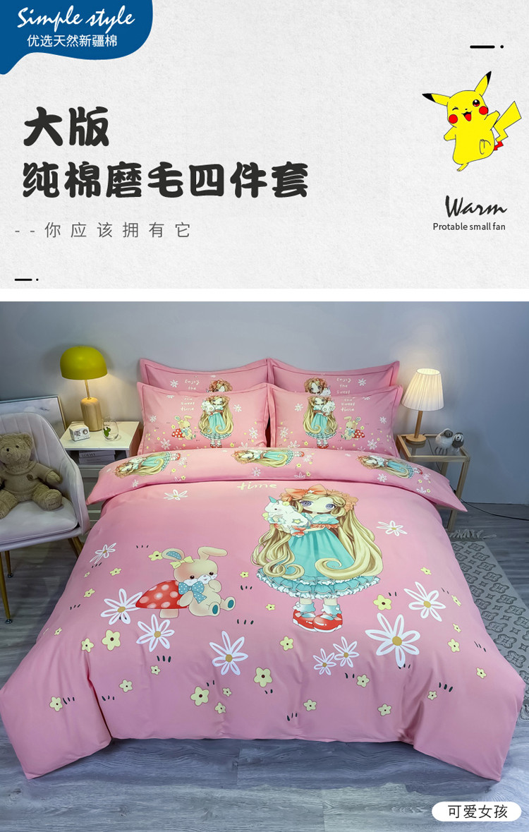 当前位置: 91家纺网 > 商品网购 > 床品套件 > 四件套 > 普通磨毛四件套 > 金爱家 2023新款大版卡通磨毛四件套 可爱女孩