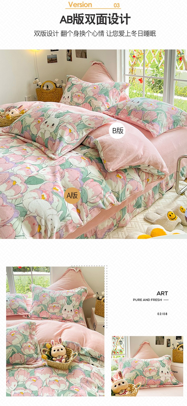 (总)呗旺鹿 2025新款A版全棉B版牛奶绒四件套,冰岛小马,萌星,糖果小马,小狗笔记,费尔岛小熊