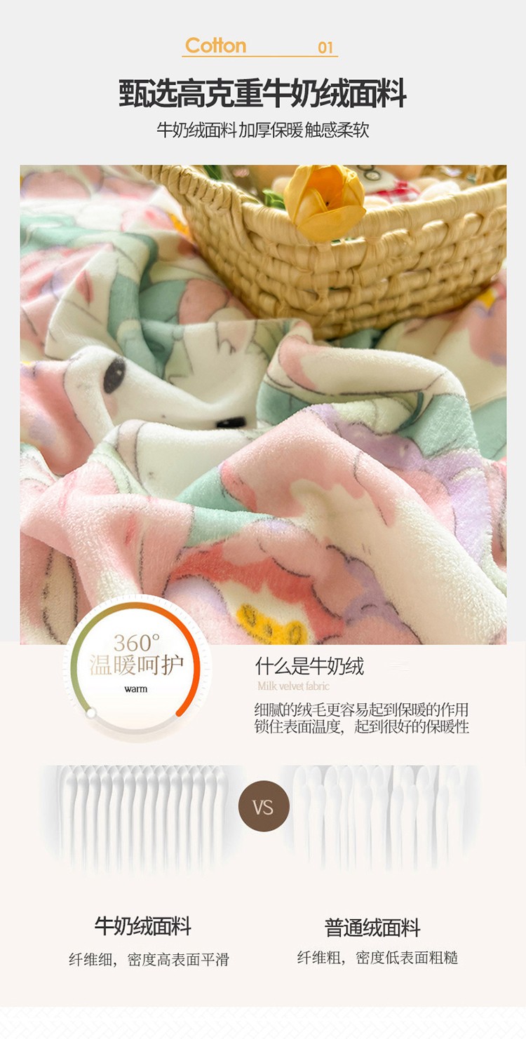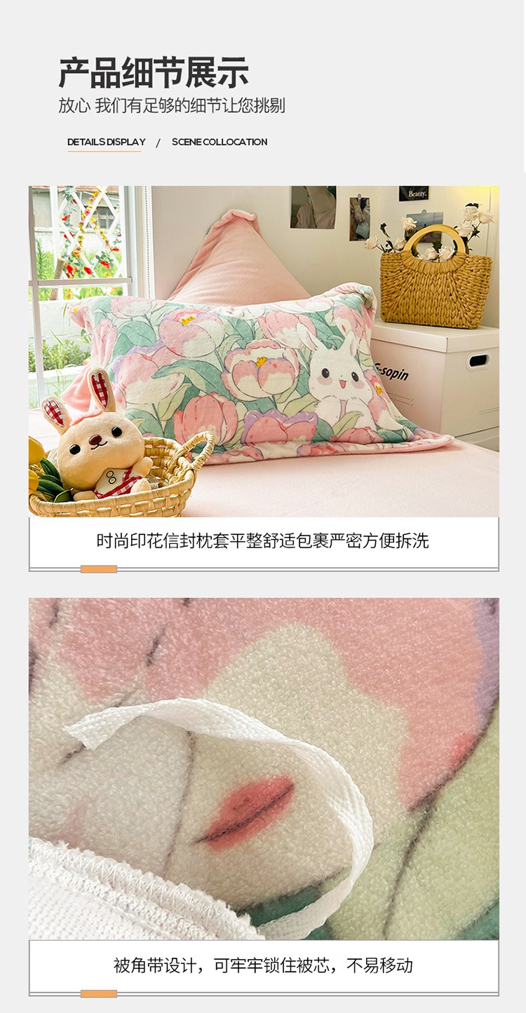 (总)呗旺鹿 2025新款卡通棉+绒牛奶绒棉绒四件套,心意满满,快乐魔法,闹钟麦田