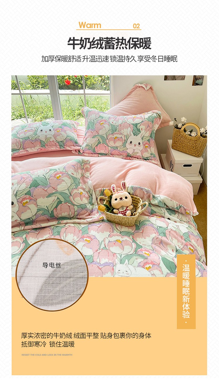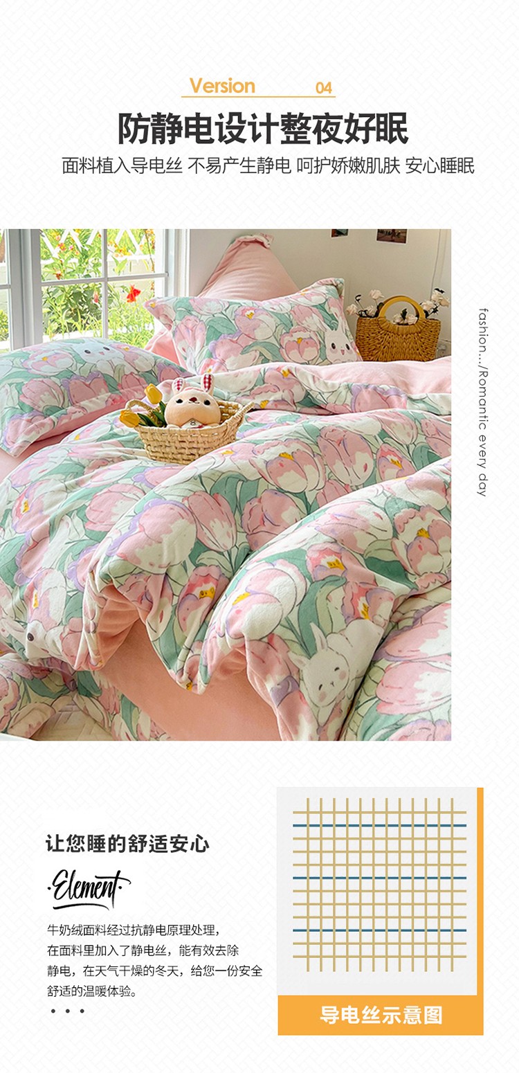 商品名称:呗旺鹿 2022年印花小清新加厚保暖牛奶绒四件套直播心悦花海