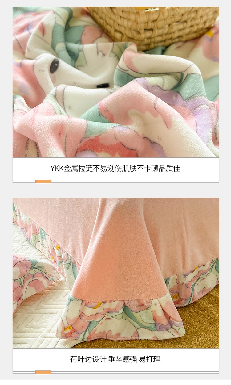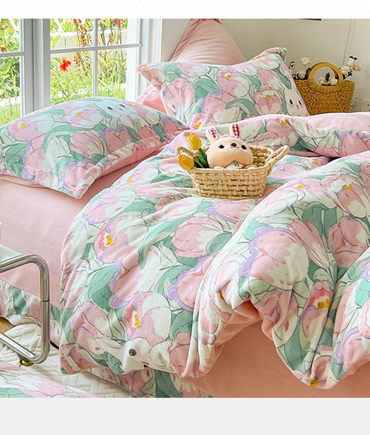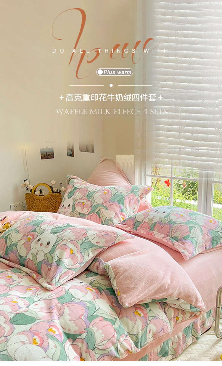 呗旺鹿 2022年印花小清新加厚保暖牛奶绒四件套直播心悦花海