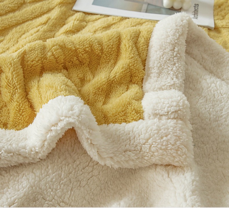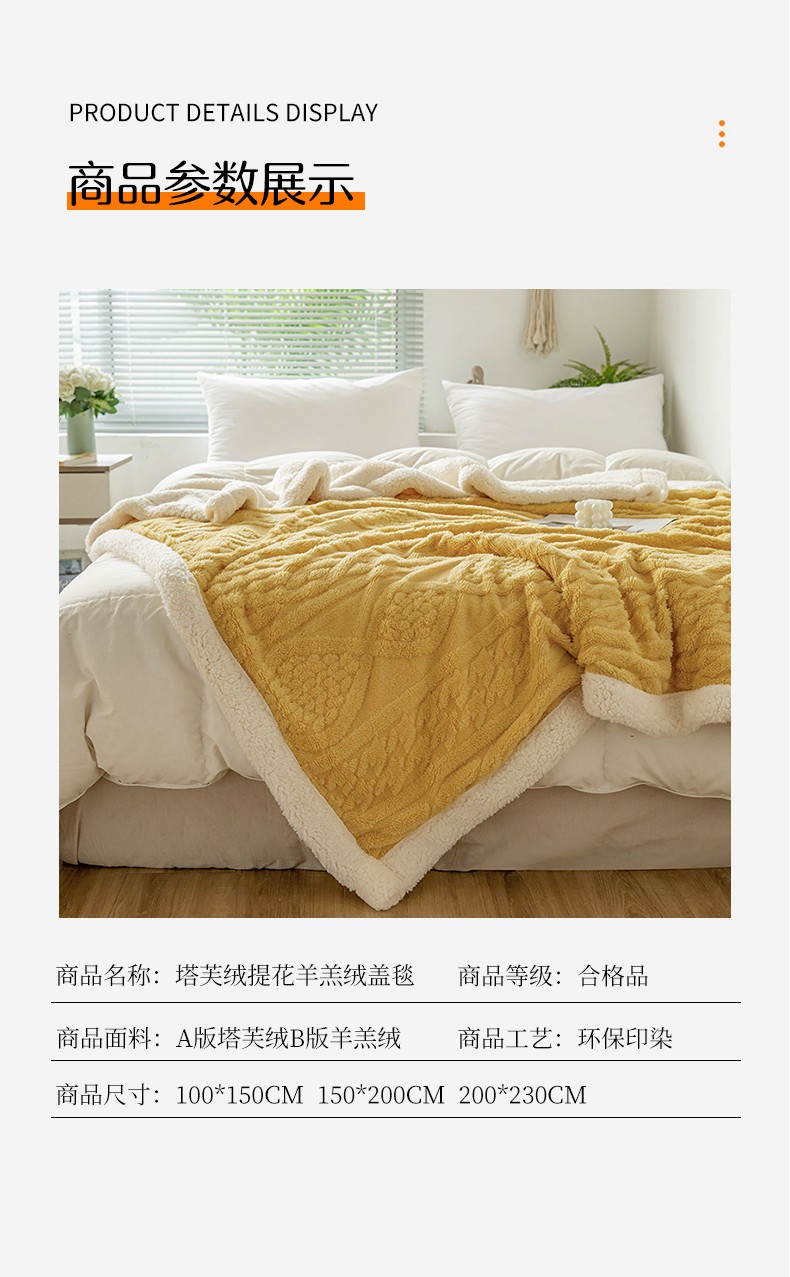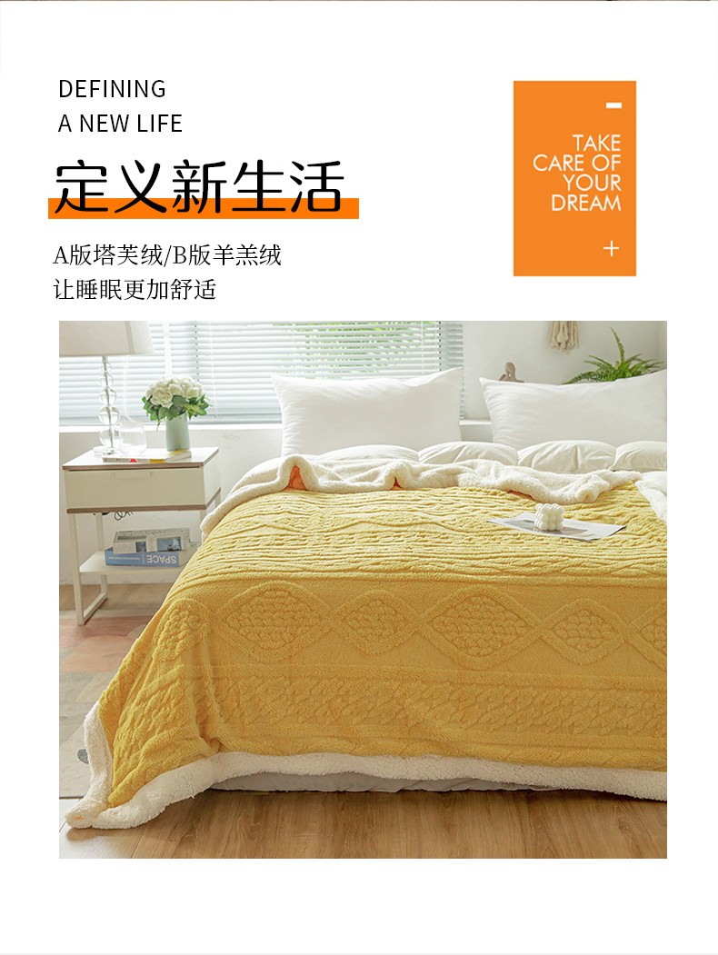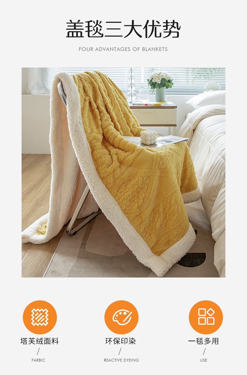商品名称:网客家纺 2024新款塔芙绒提花羊羔绒盖毯 柠檬黄
